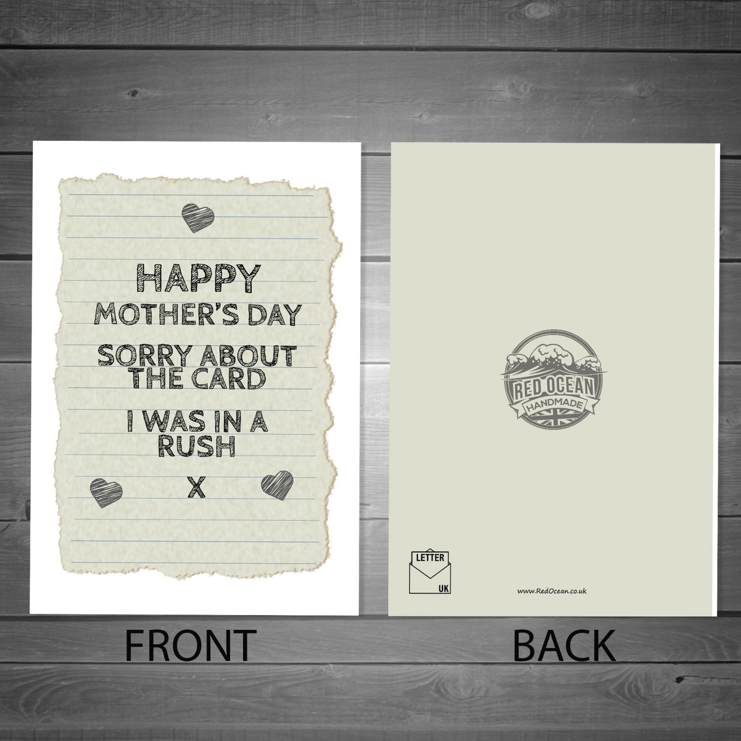 Every card and gift from Red Ocean is handmade with care and attention in the UK, we take pride in our work and we try our best to make each gift perfect. Our design team is regularly adding new ranges and we cater for every occasion, so our cards can be paired with other items from our range, Wooden Hearts, Plastic Wall Signs, Wall Mounted Frames, Wallet Cards, the options are endless. Be sure to browse for more Red Ocean Gifts.