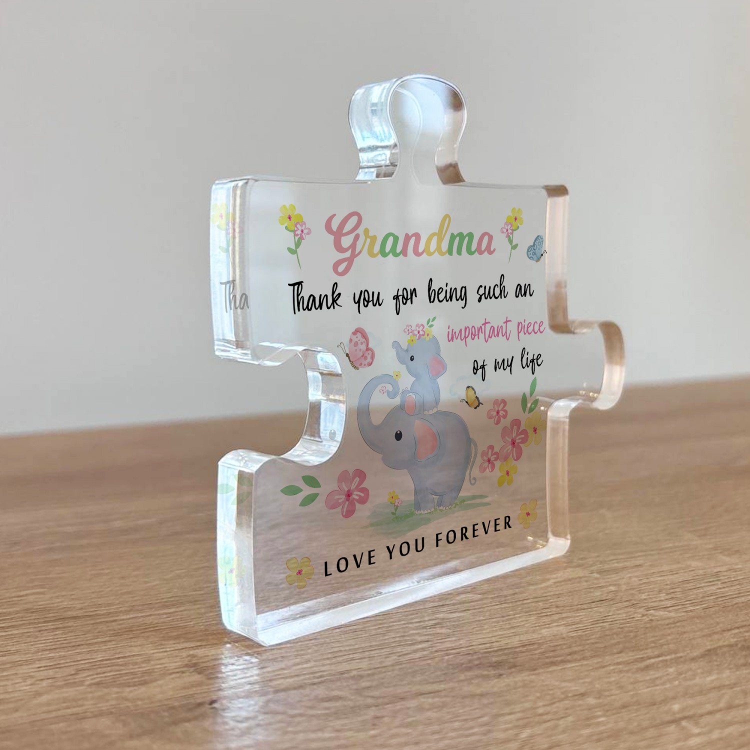 Unlock the perfect gift for Grandma with our meticulously handmade 10 cm by 10 cm acrylic puzzle piece, thoughtfully designed to celebrate the deep and irreplaceable bond between a mother and her child.