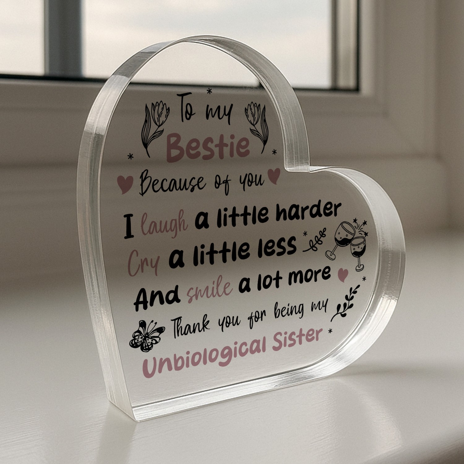 This sign effortlessly adapts to the way you want to display it as it freestanding and the clear material will make it shine where ever it is placed in the room. The plaque is handmade so it means you will receive the best quality gift and is something unique you won't find anywhere else.