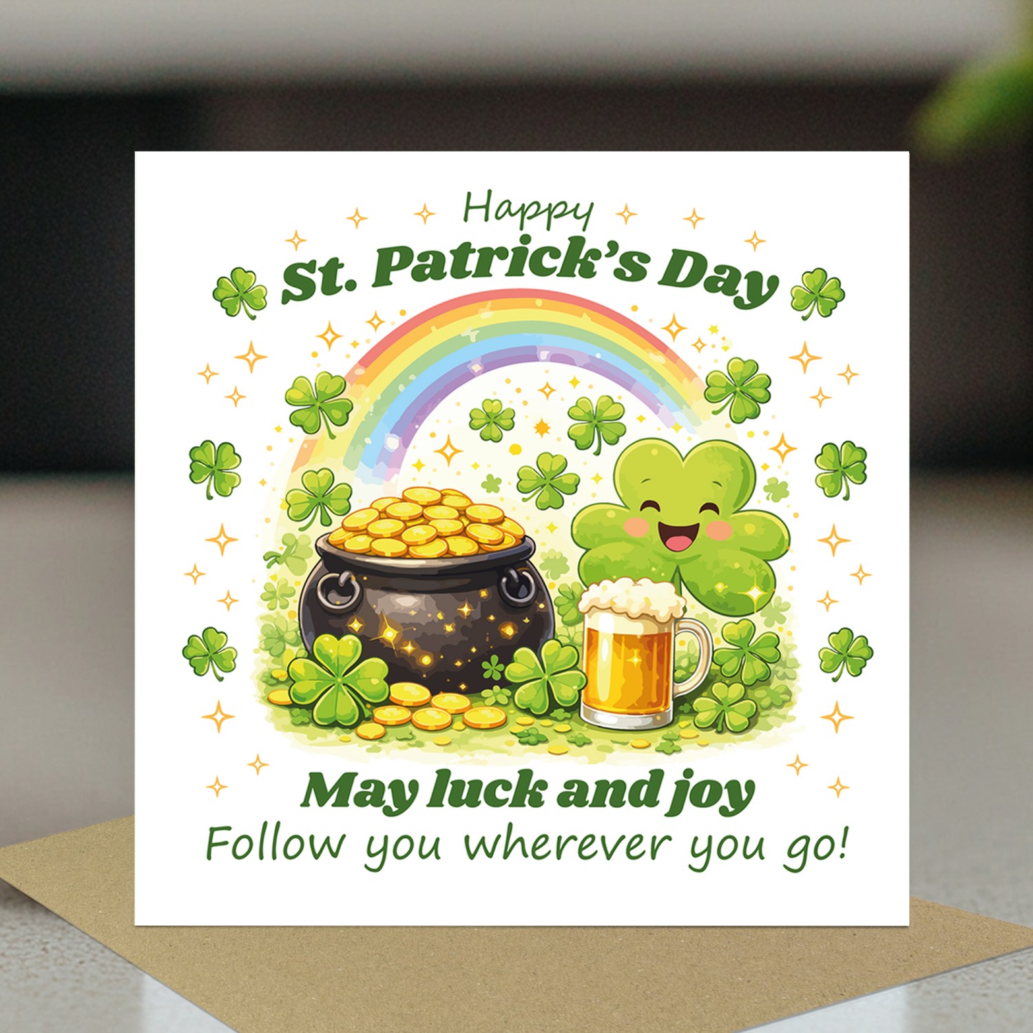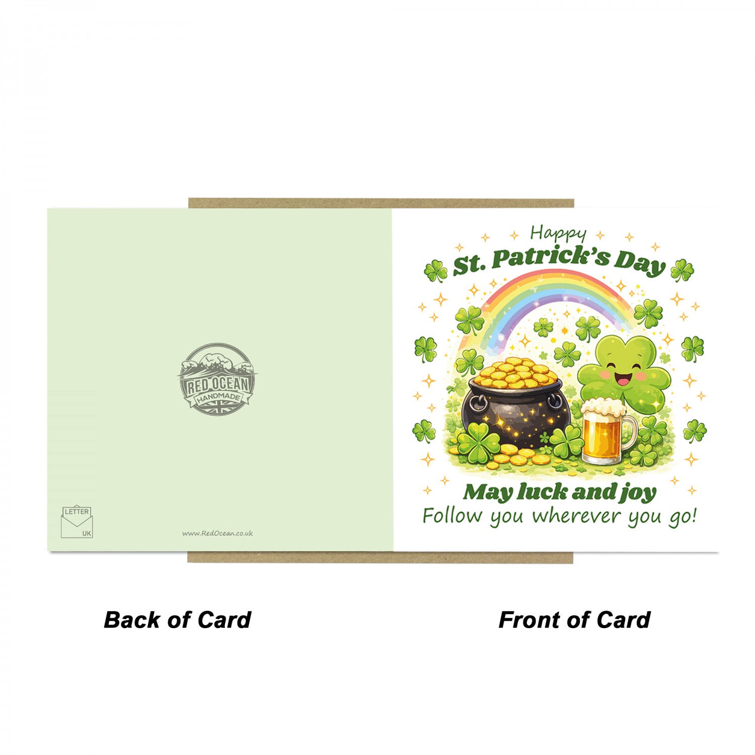 Each card comes complete with a stylish brown kraft envelope, giving it a charming and natural look that pairs perfectly with the playful St Patricks Day design. It is ready to send or hand deliver to someone special.