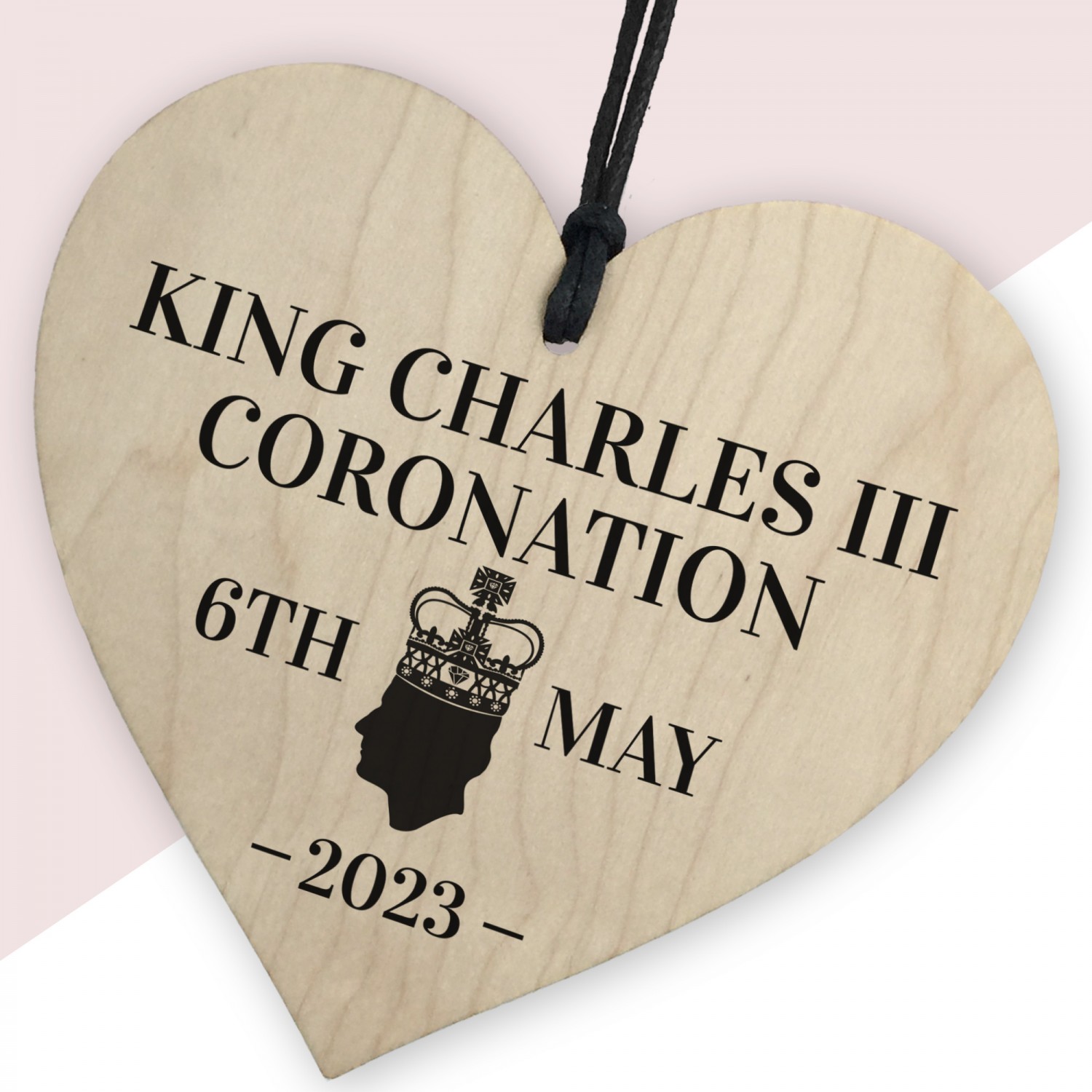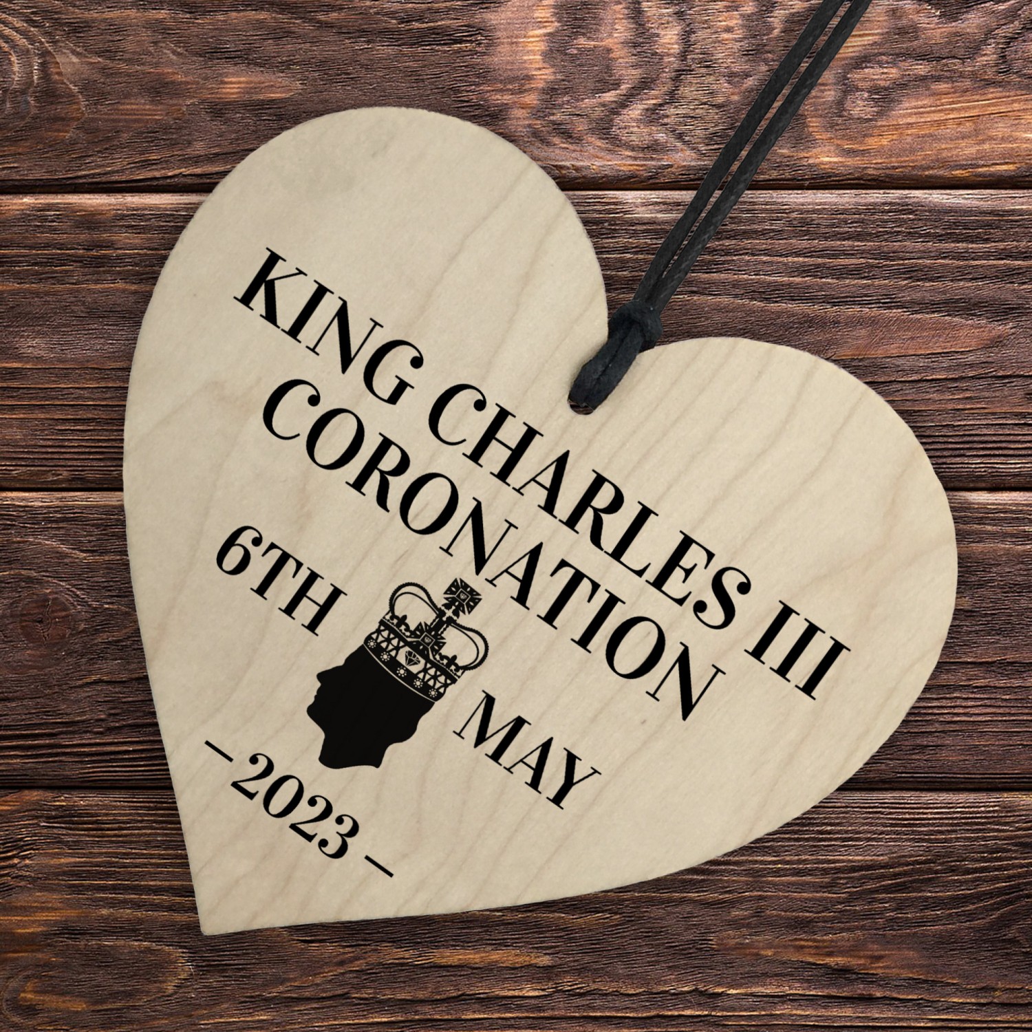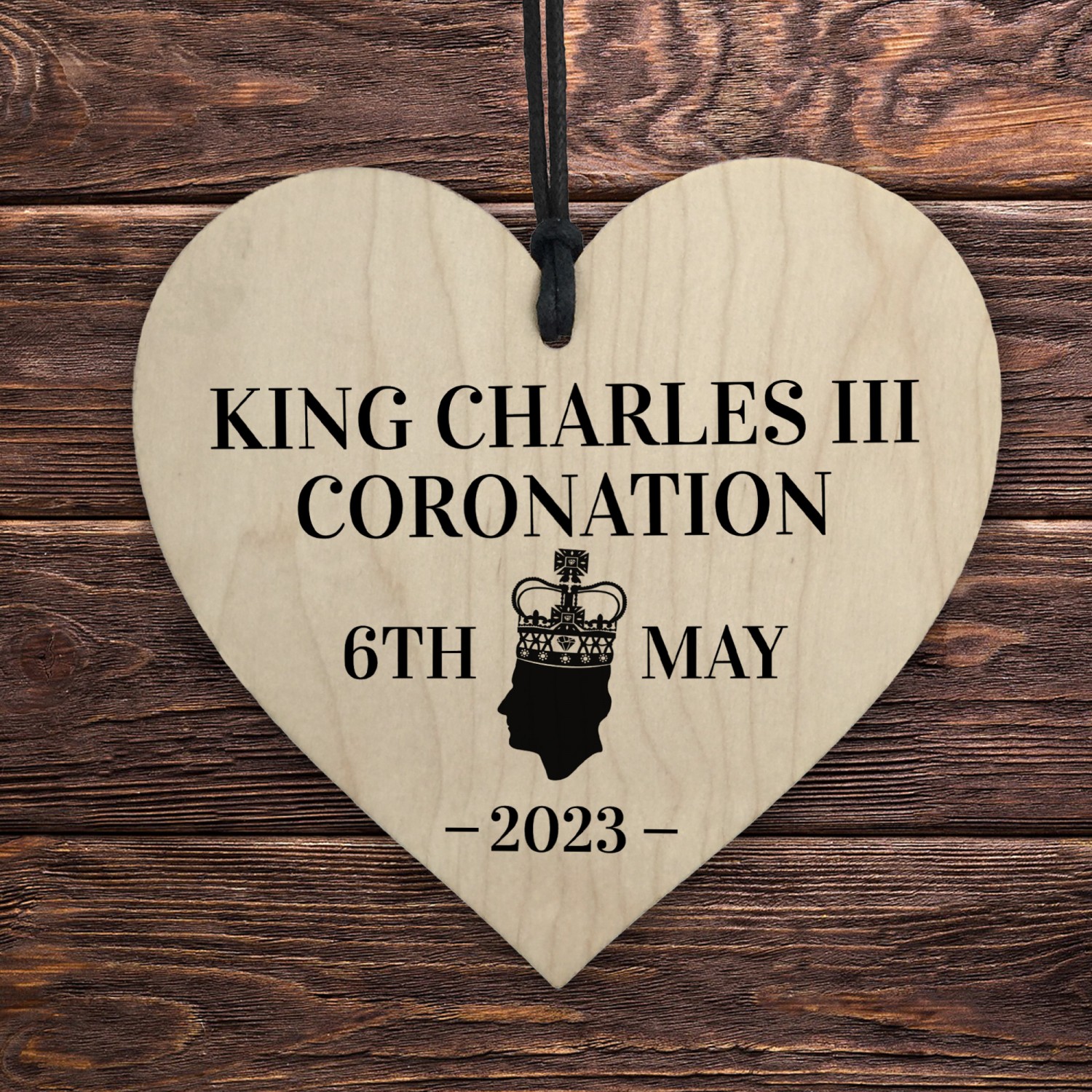 King Charles III Coronation Hanging Wooden Heart Comemmoration