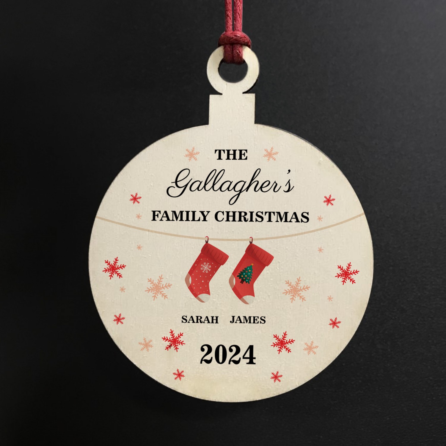 The bauble is made from real wood, and the design is permanently printed into the wood. The wooden bauble is supplied with waxed cotton rope in both black and red colours to allow easy hanging and looks great in any room of the house.