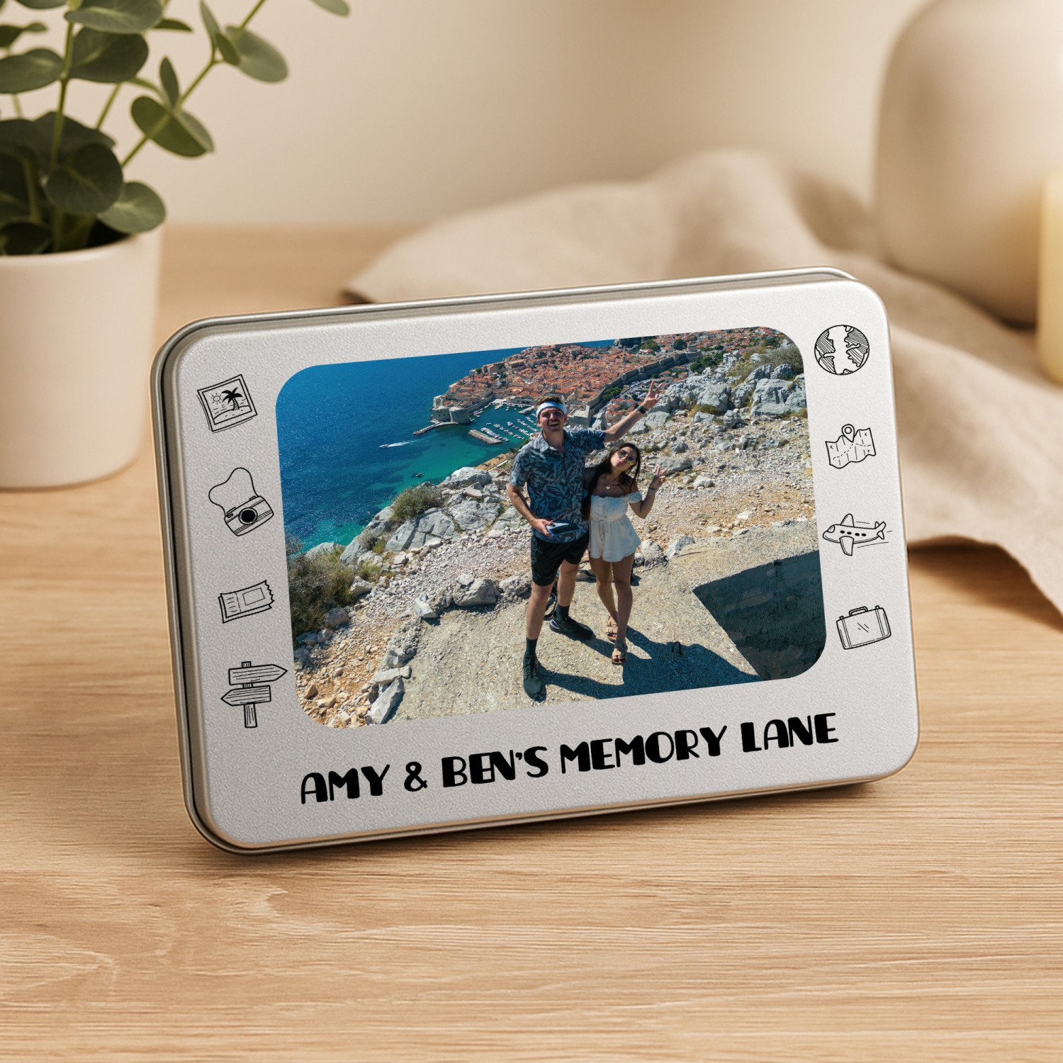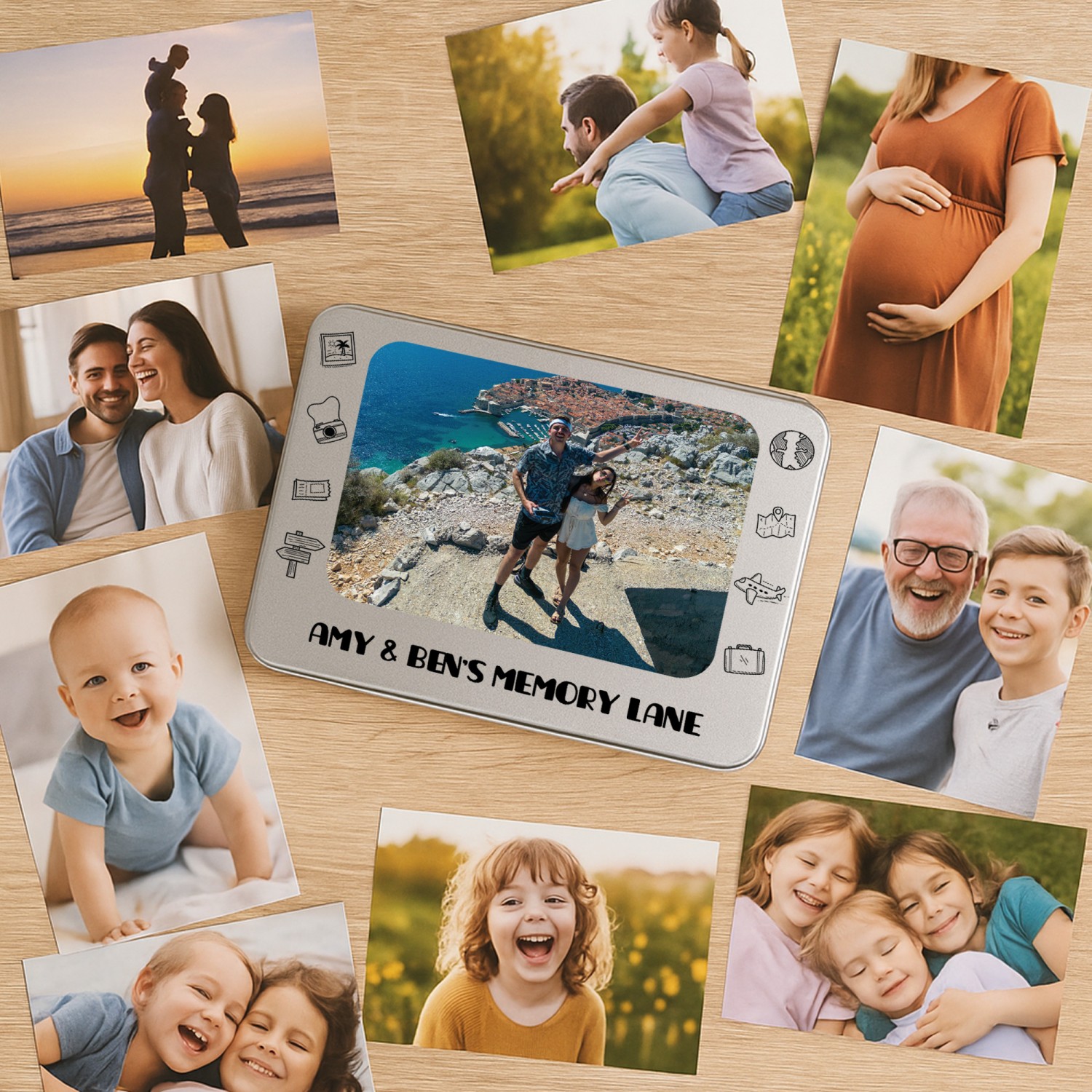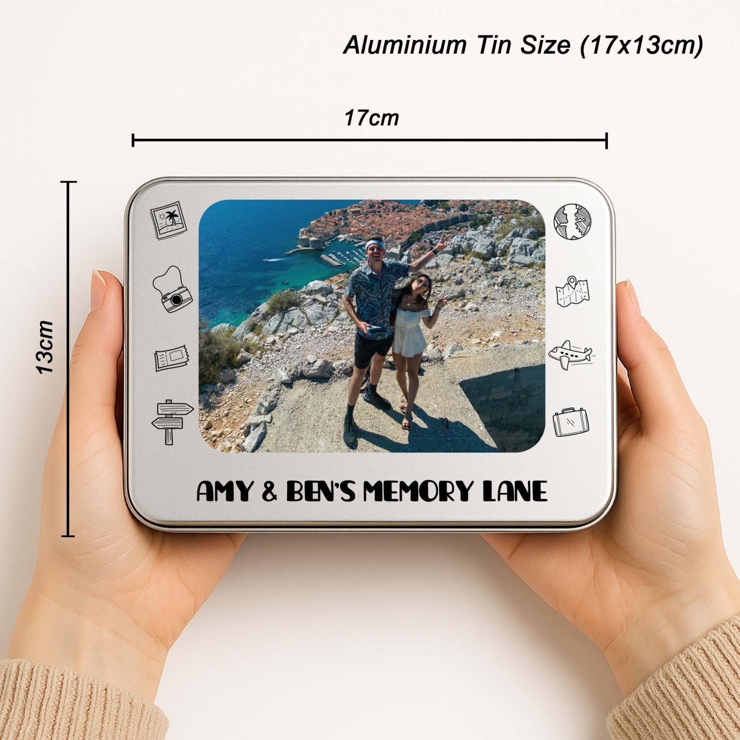 Personalisation is key with our product, allowing you to imprint your chosen photos, names, or dates onto the surface of the tin. Whether it's a cherished family portrait or a significant anniversary, our printing process ensures that your memories are beautifully showcased.