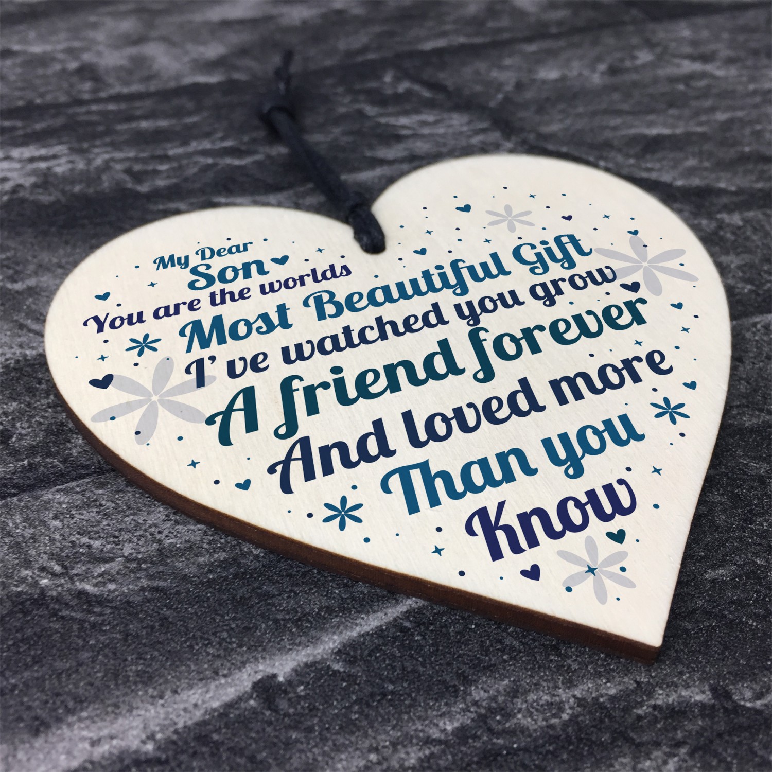 This gorgeous wooden heart plaque printed with this beautiful message would be a lovely and thoughtful gift to give to your Son on his birthday or for christmas to let him know how much you love him! Give this gift with love and put a smile on your Son's face every time he reads it.