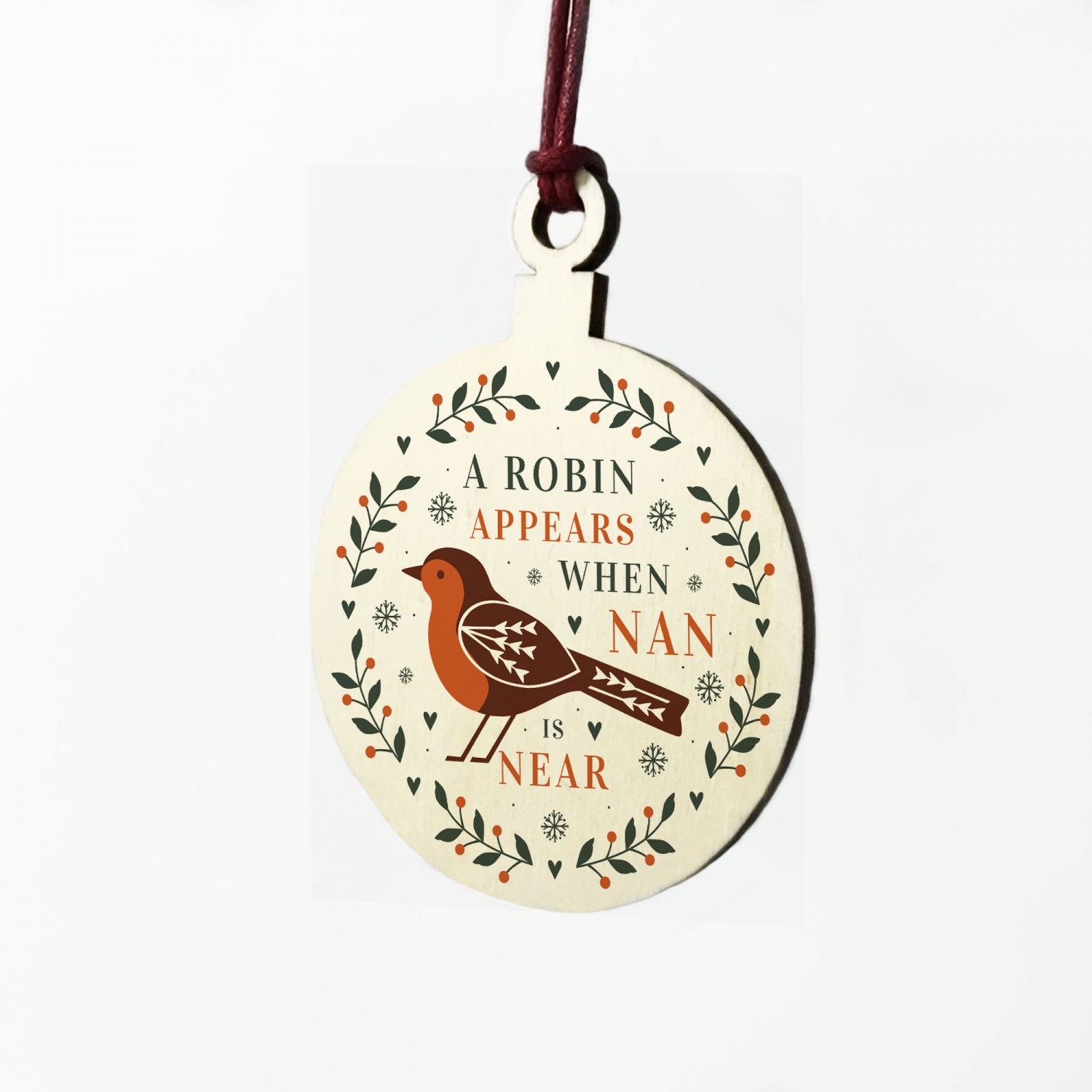 A Robin Appears Nan Memorial Bauble Wooden Tree Decoration
