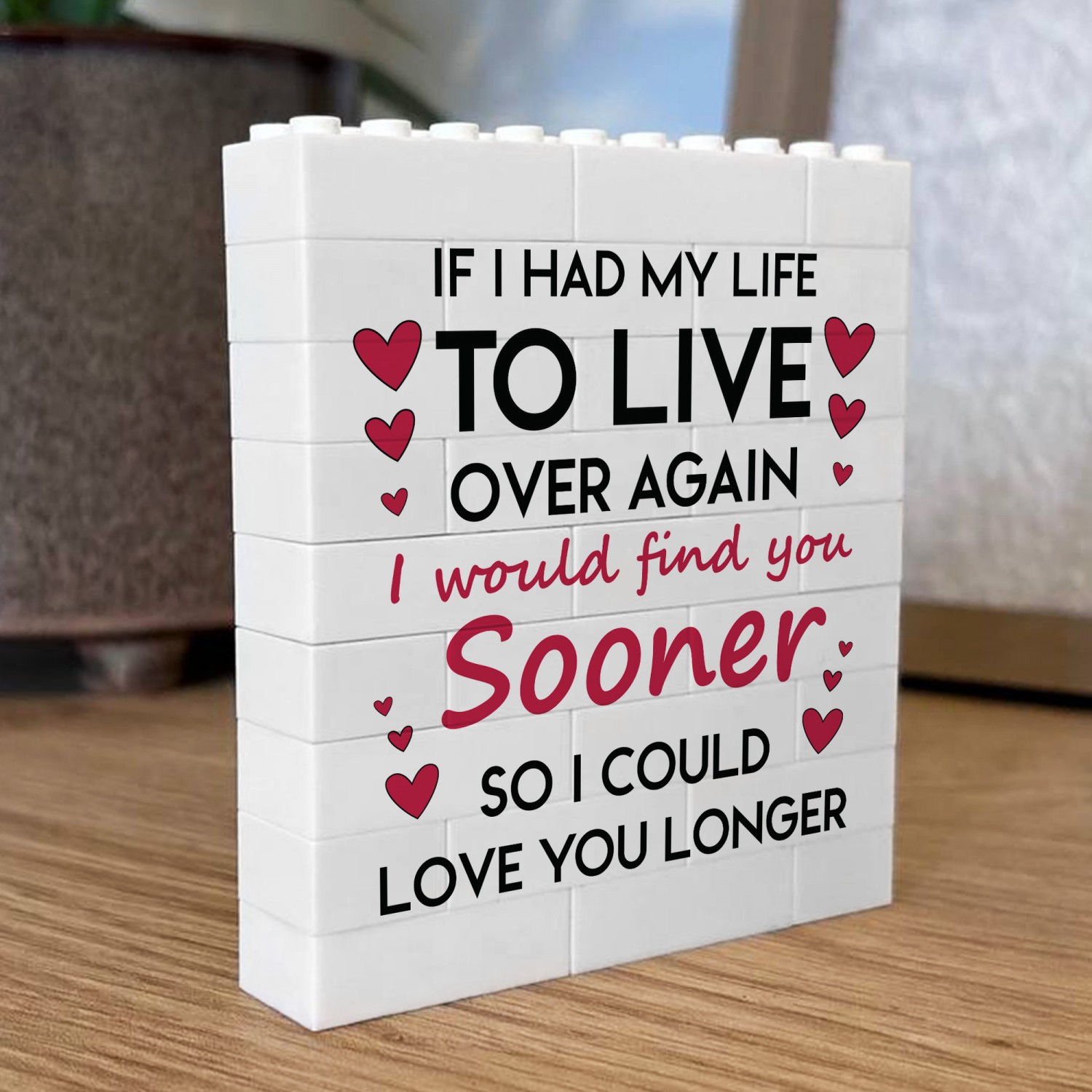 Whether you are looking for a romantic home decor piece, a novelty couples gift, or a unique Valentines keepsake, this white building block display offers a memorable alternative to traditional cards or framed prints.