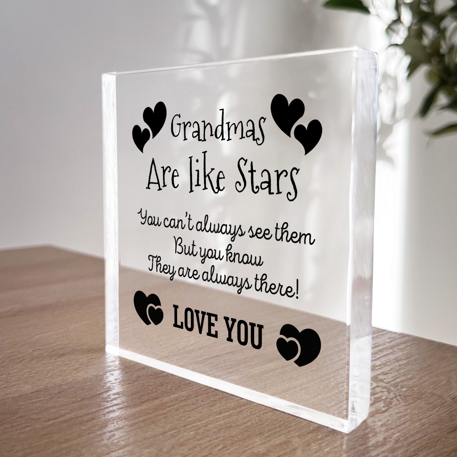 This sign effortlessly adapts to the way you want to display it as it freestanding and the clear material will make it shine where ever it is placed in the room. The plaque is handmade so it means you will receive the best quality gift and is something unique you won't find anywhere else.