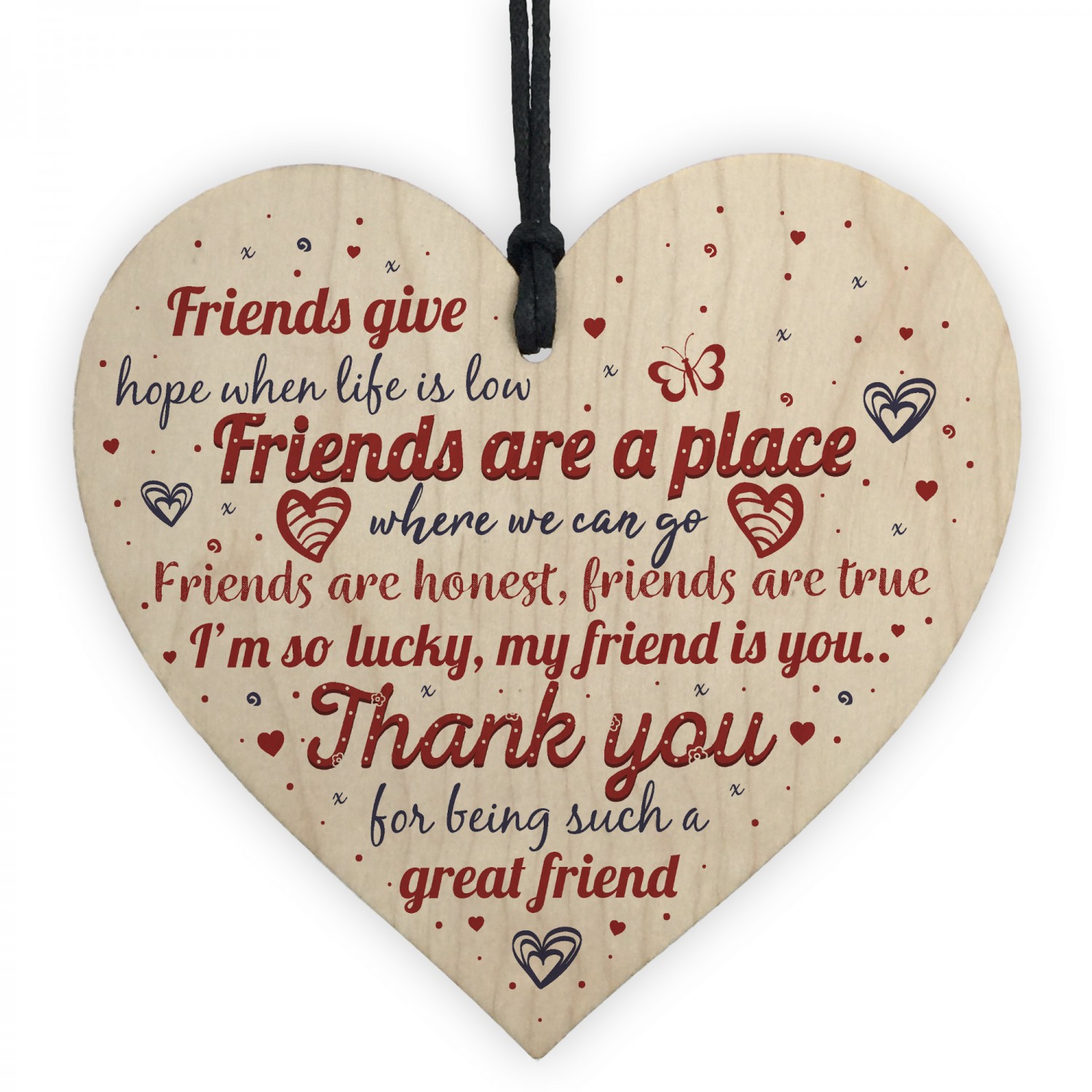 But that's not all - this set also includes a beautifully crafted wooden heart, printed with the message "Friends give hope when life is love friends are a place where we can go friends are honest, friends are true I'm so lucky, my friend is you..Thank you for being such a great friend". Measuring approximately 10cm x 10cm, this heart is the perfect size to display in your best friend's room as a reminder of your love and appreciation.