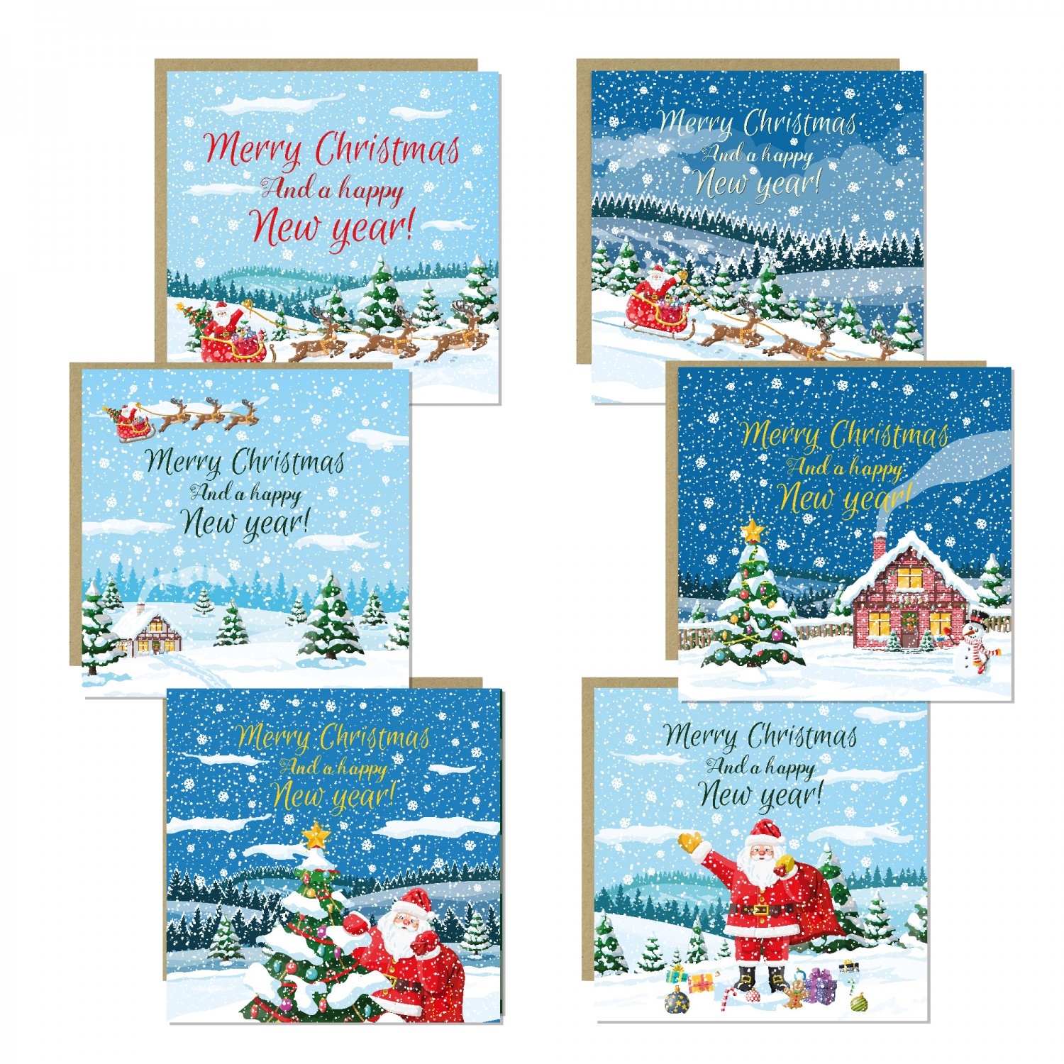 Christmas Cards Multipack of 6 Xmas Santa Cards For Family