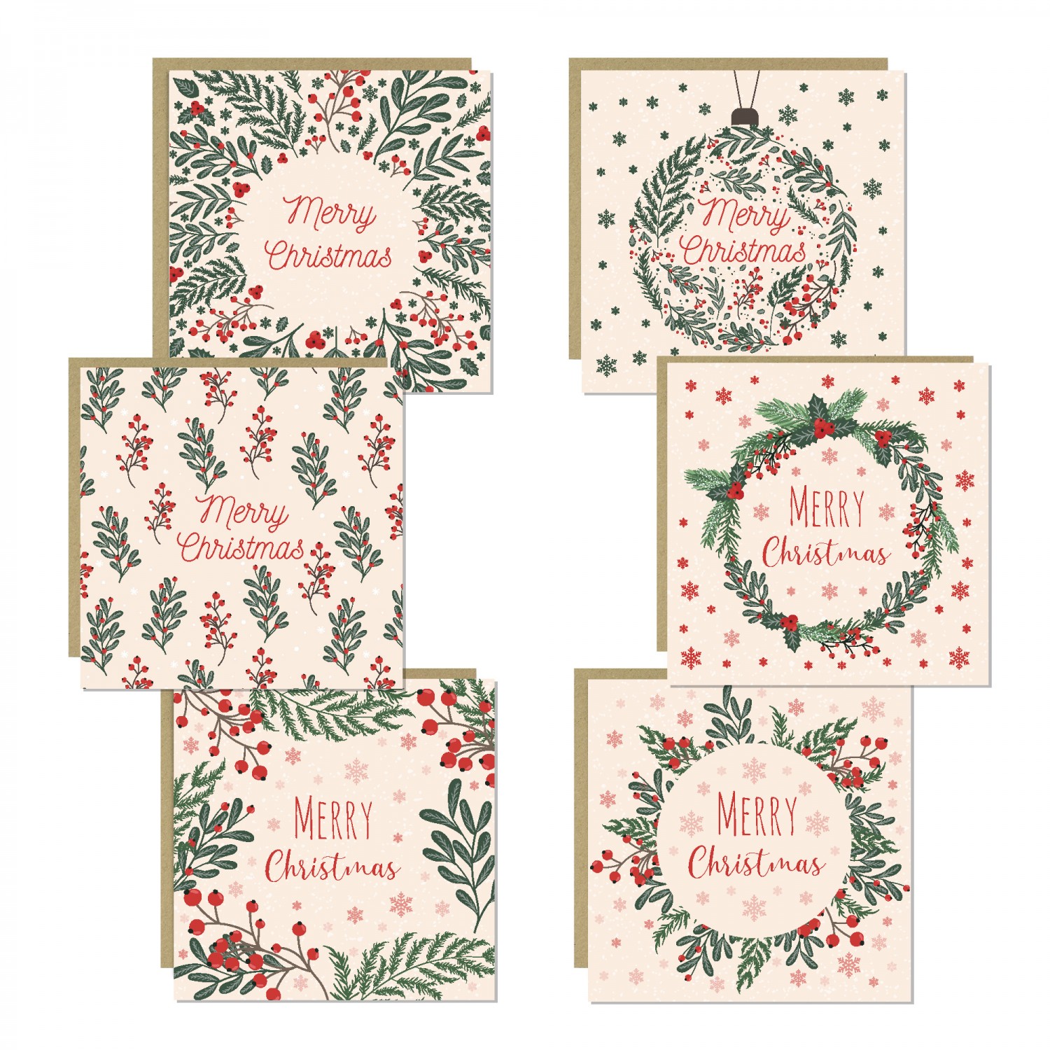 Christmas Cards Pack of 6 With Kraft Envelopes Merry Christmas