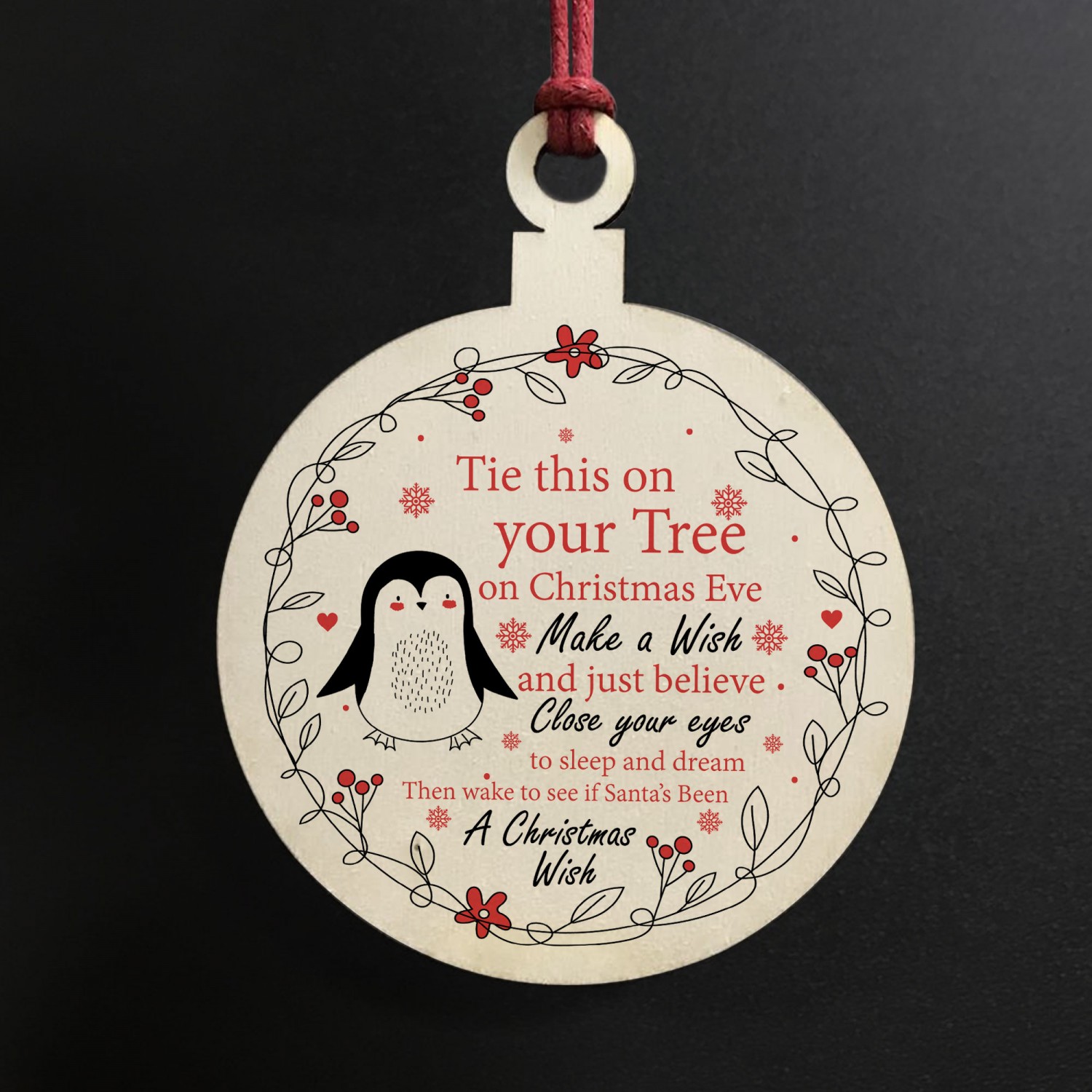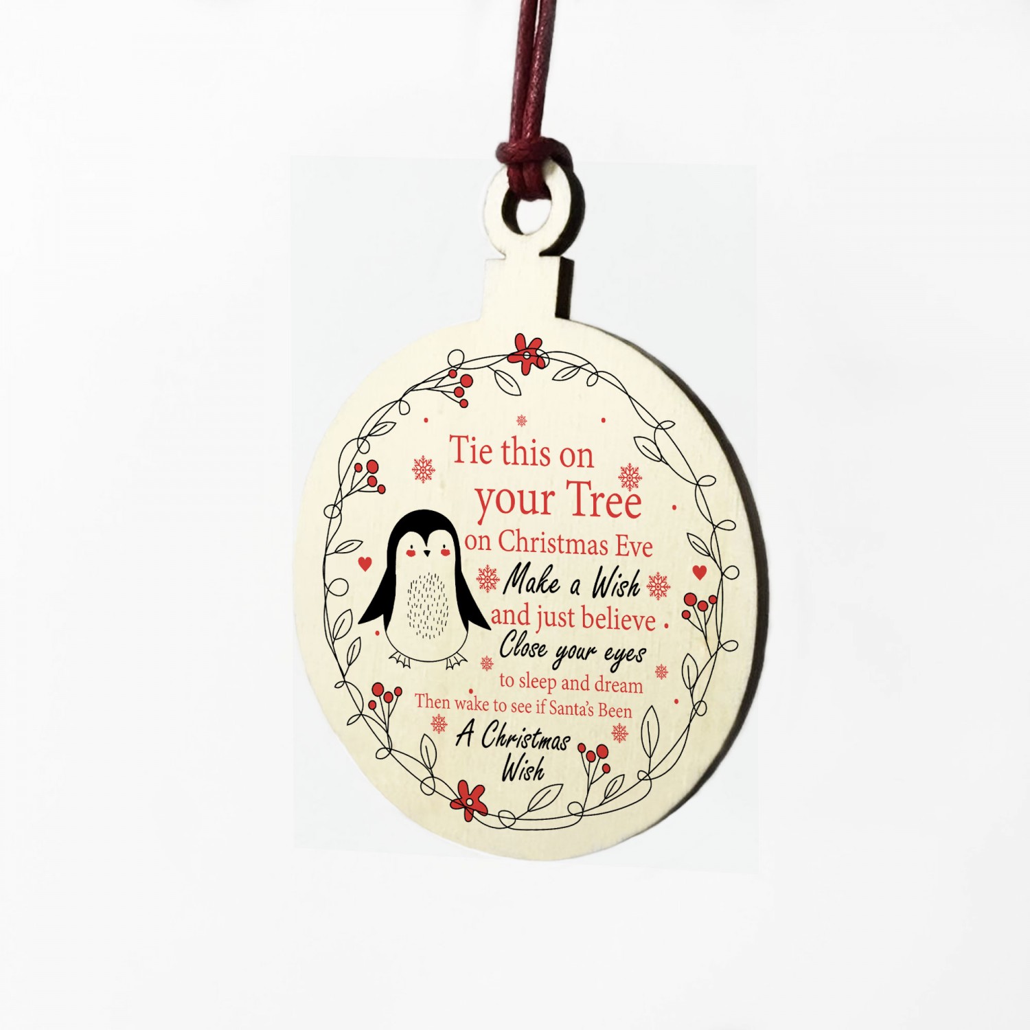 The bauble is made from real wood, and the design is permanently printed into the wood. The wooden bauble is supplied with waxed cotton rope in both black and red colours to allow easy hanging and looks great in any room of the house.