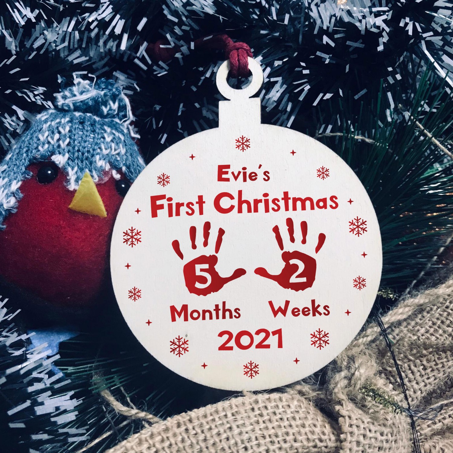 First Christmas Bauble For New Baby Personalised Tree Decoration