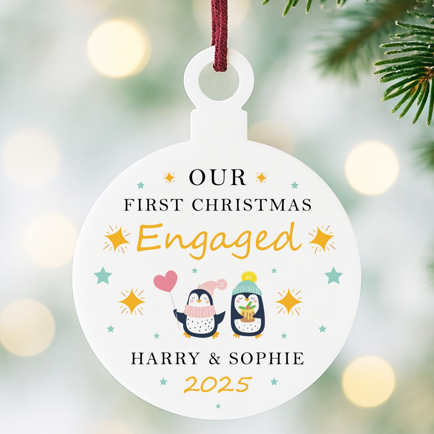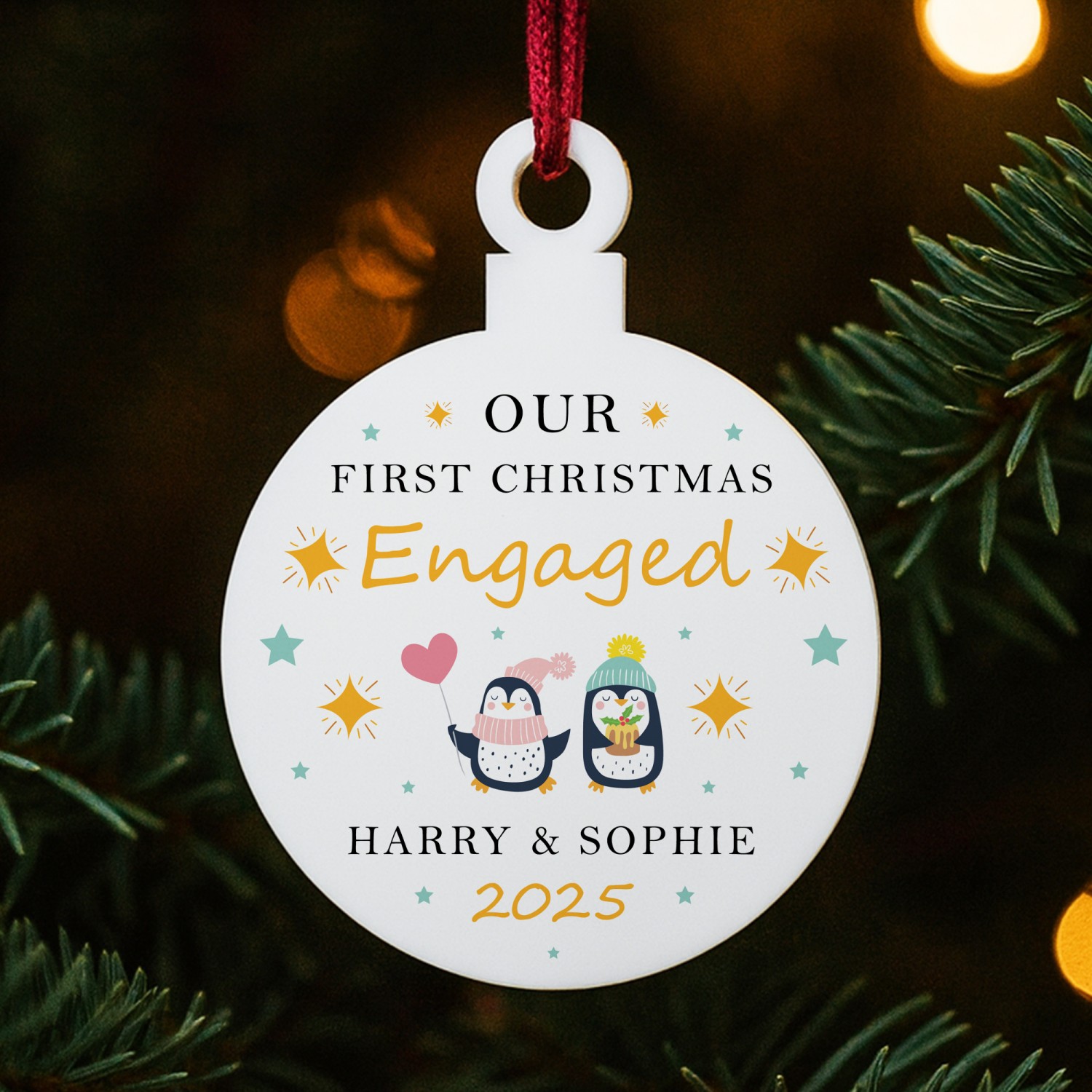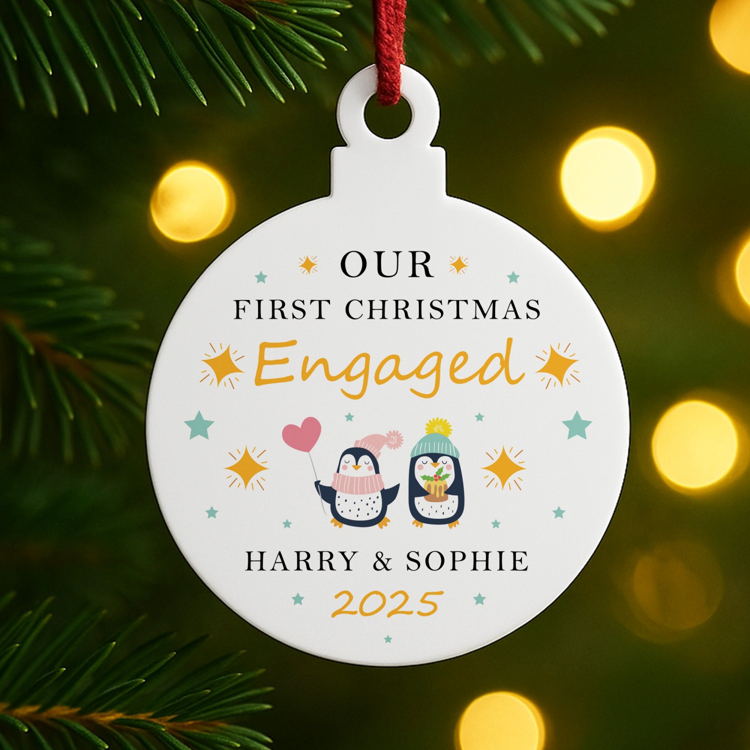 First Christmas Engaged Personalised Tree Decoration For Couple