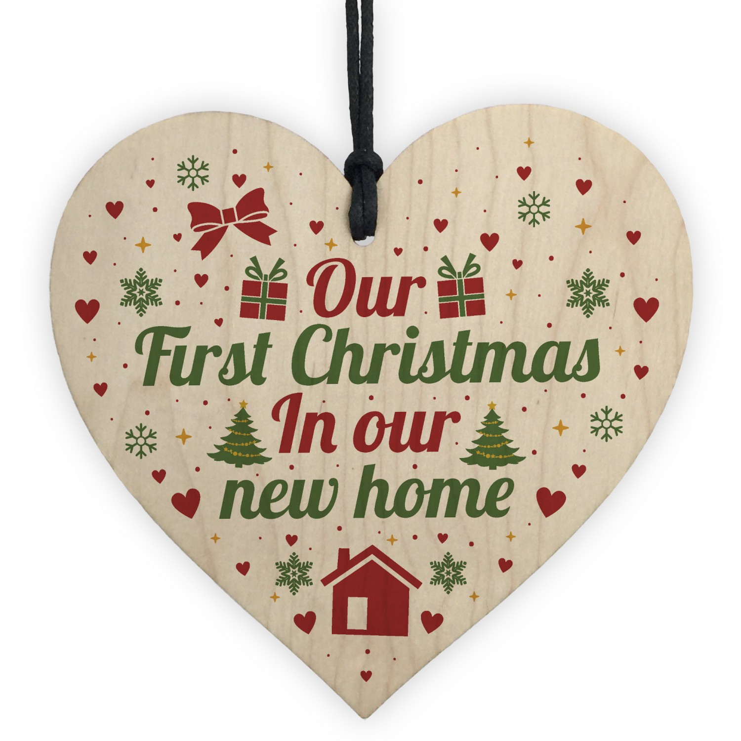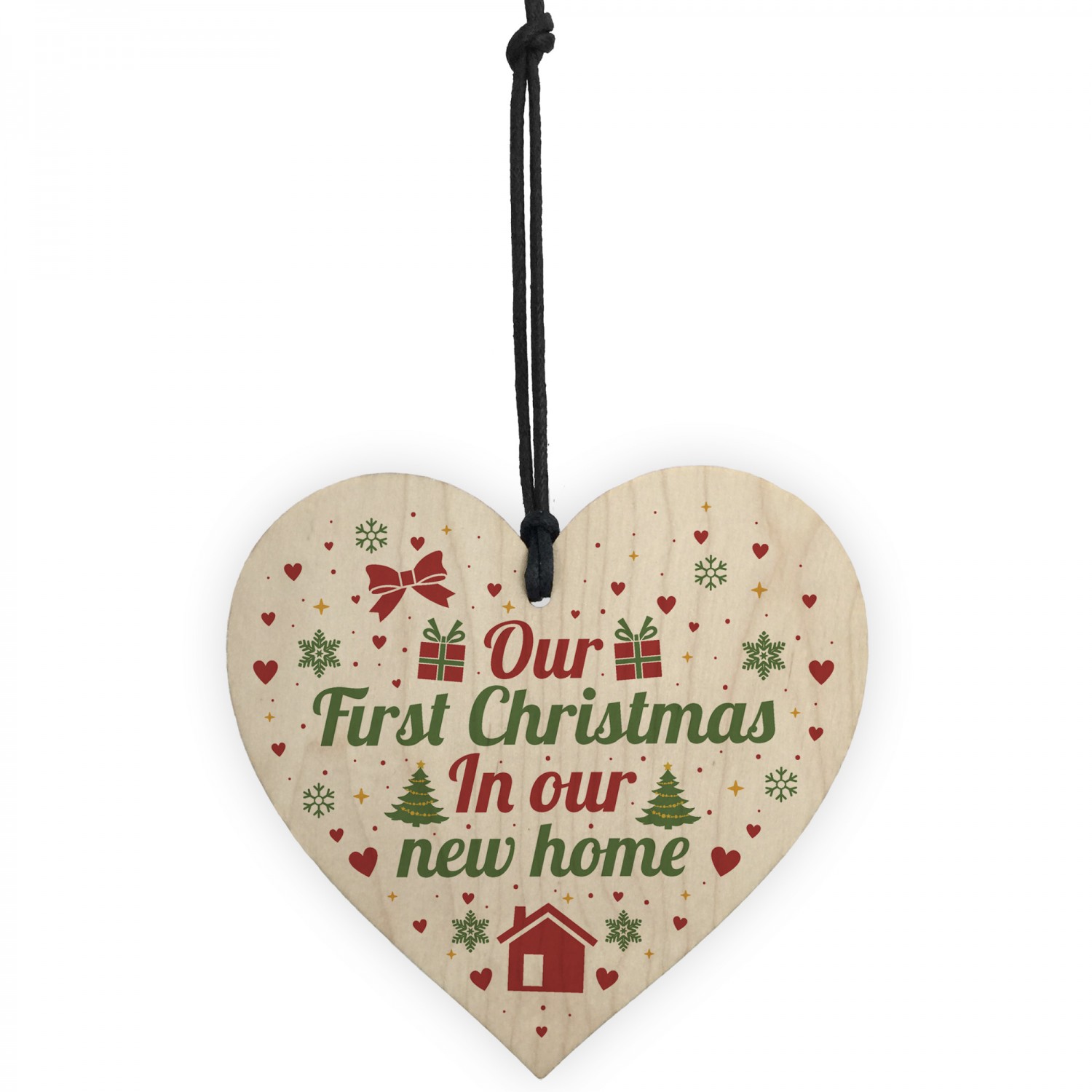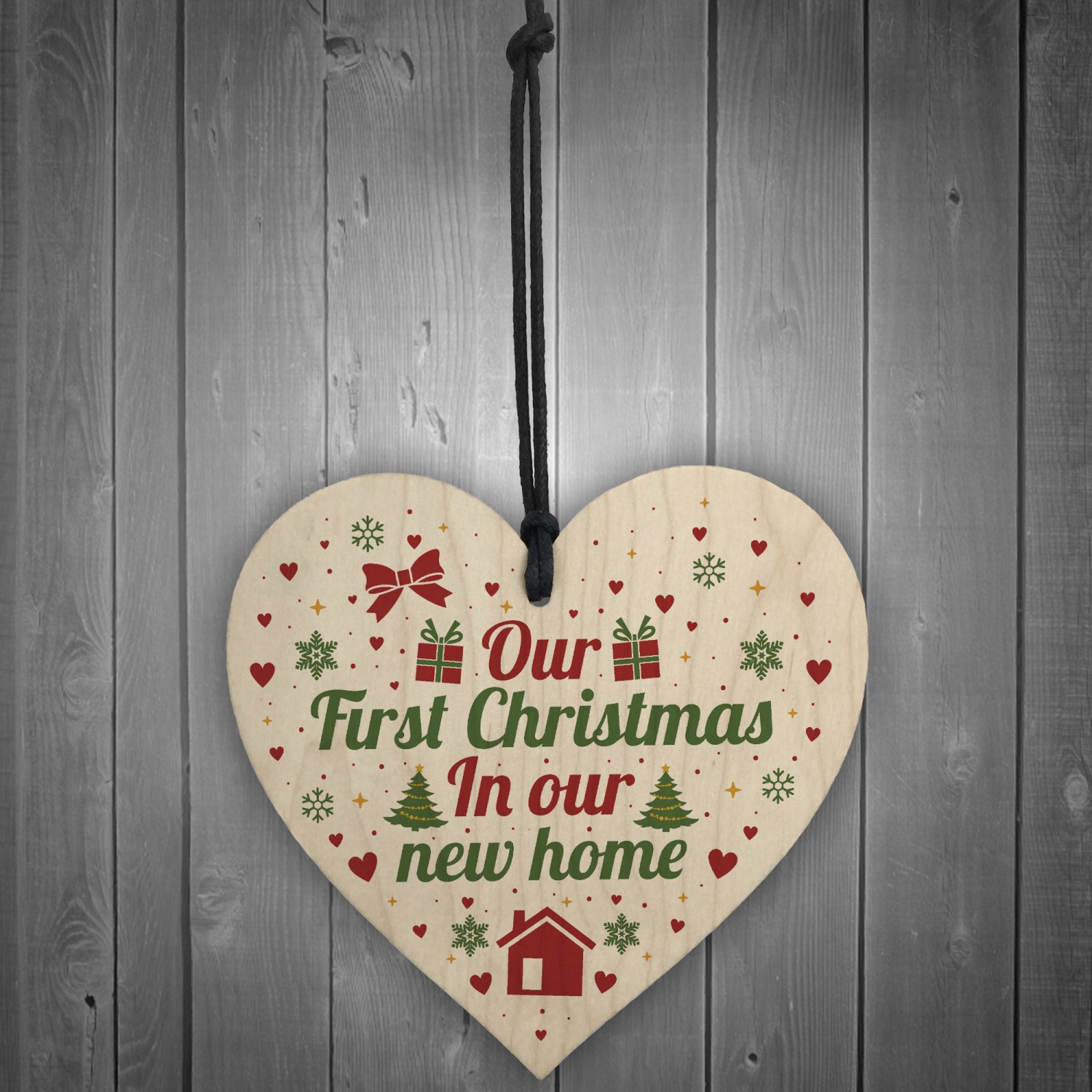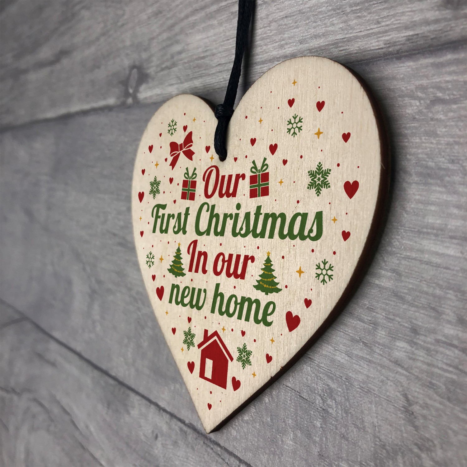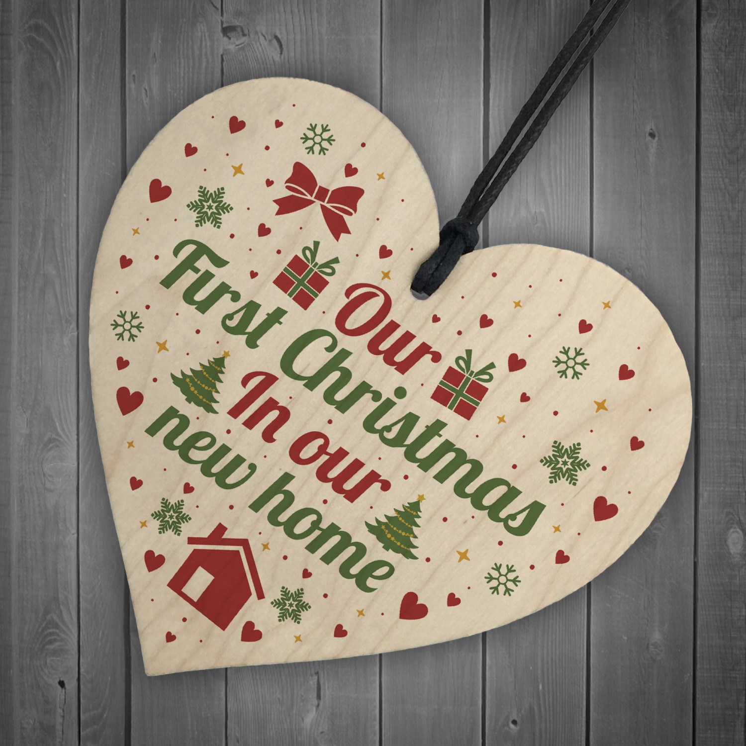 First Christmas New Home Wood Heart Tree Decoration Bauble Gift