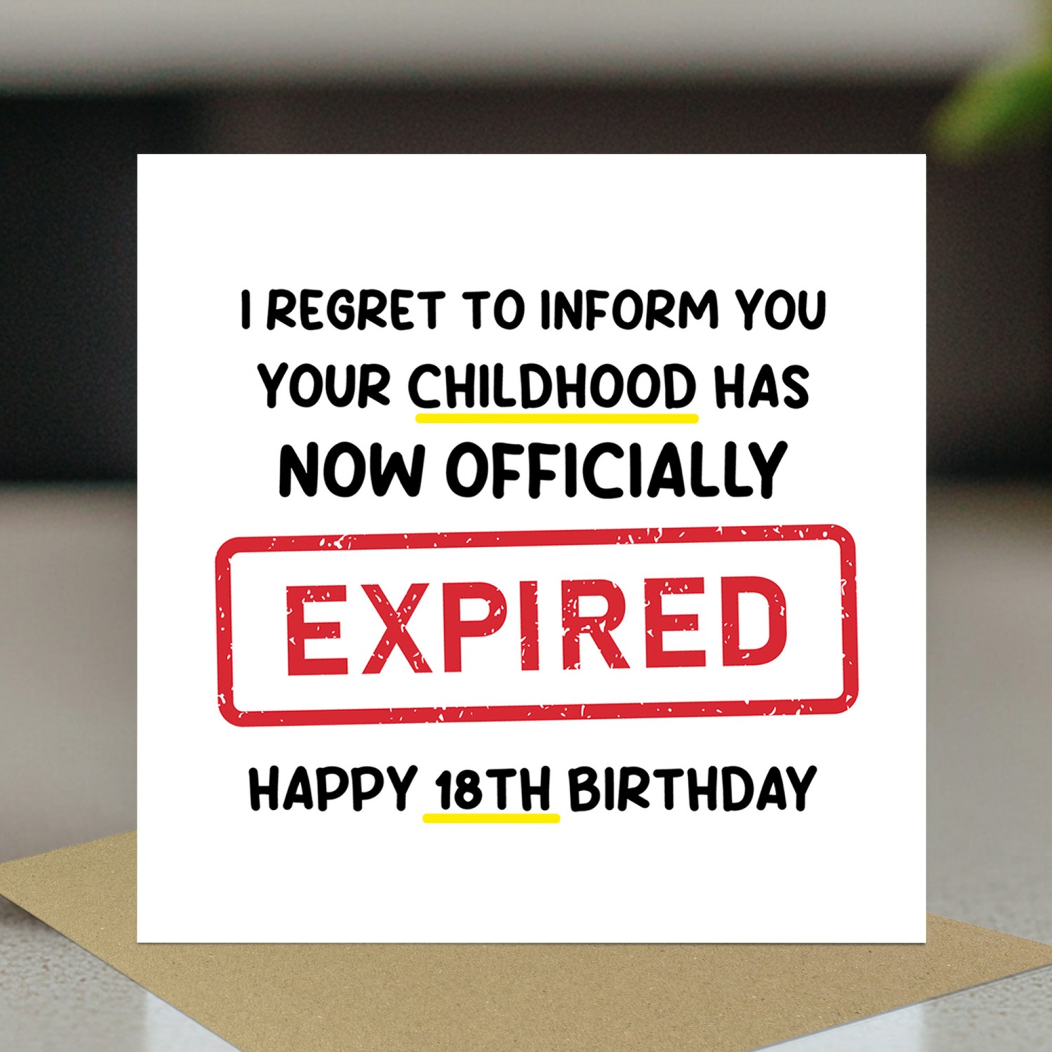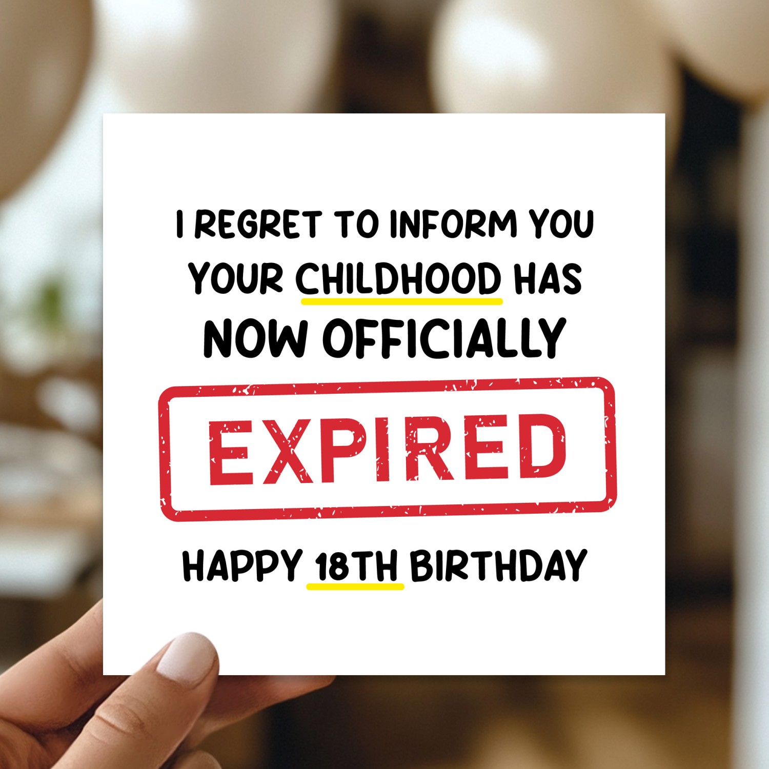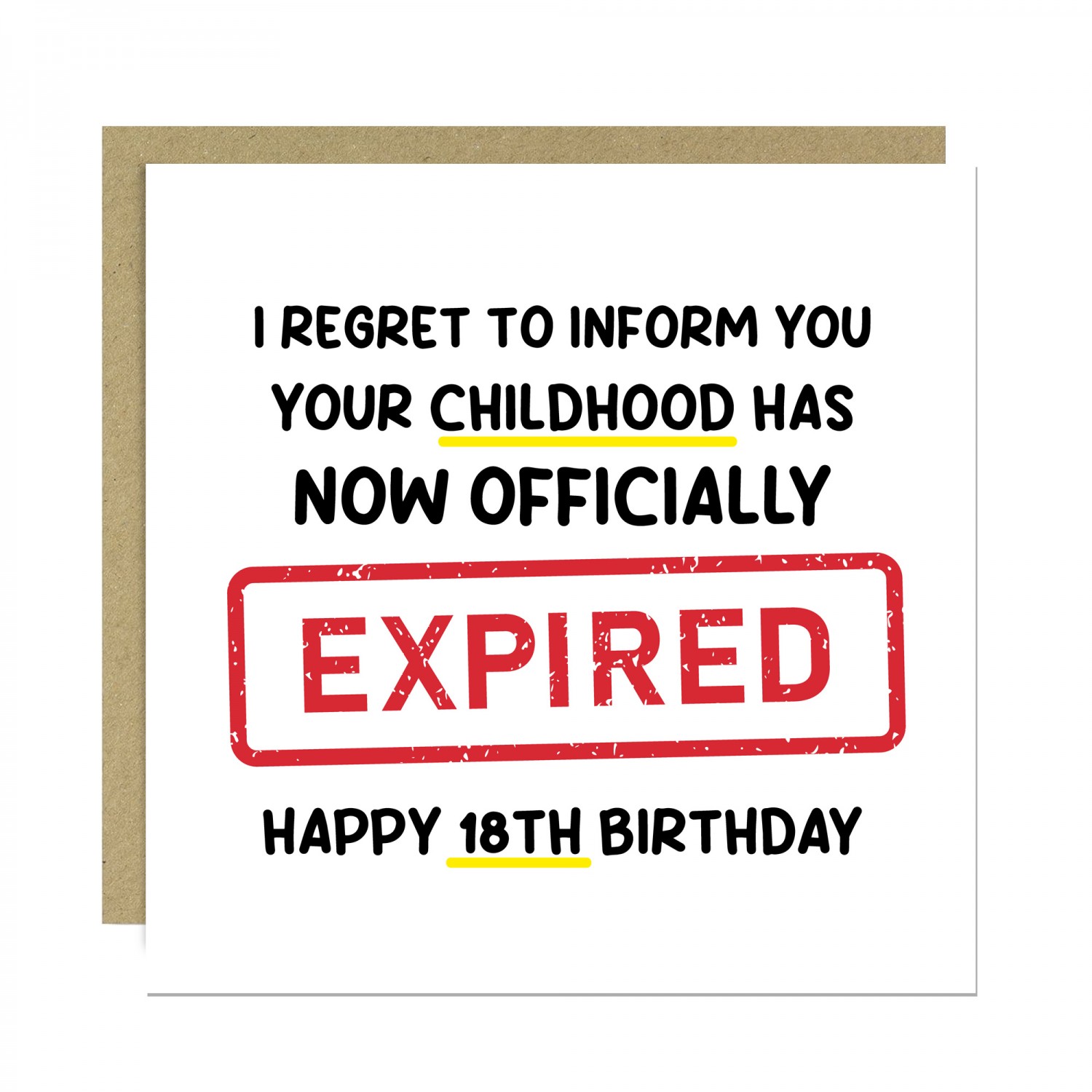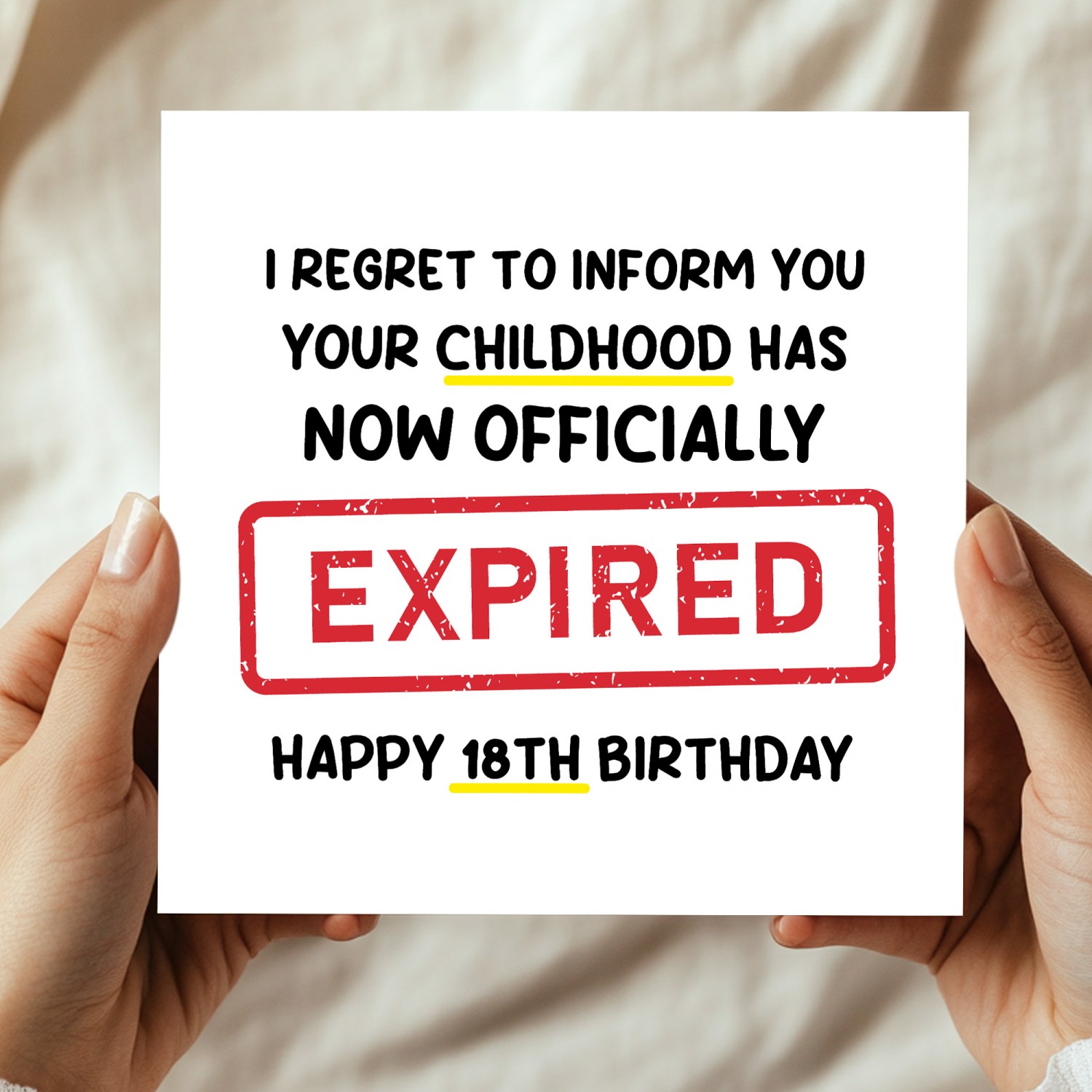 Funny 18th Birthday Card for Him Her Expired Childhood Funny