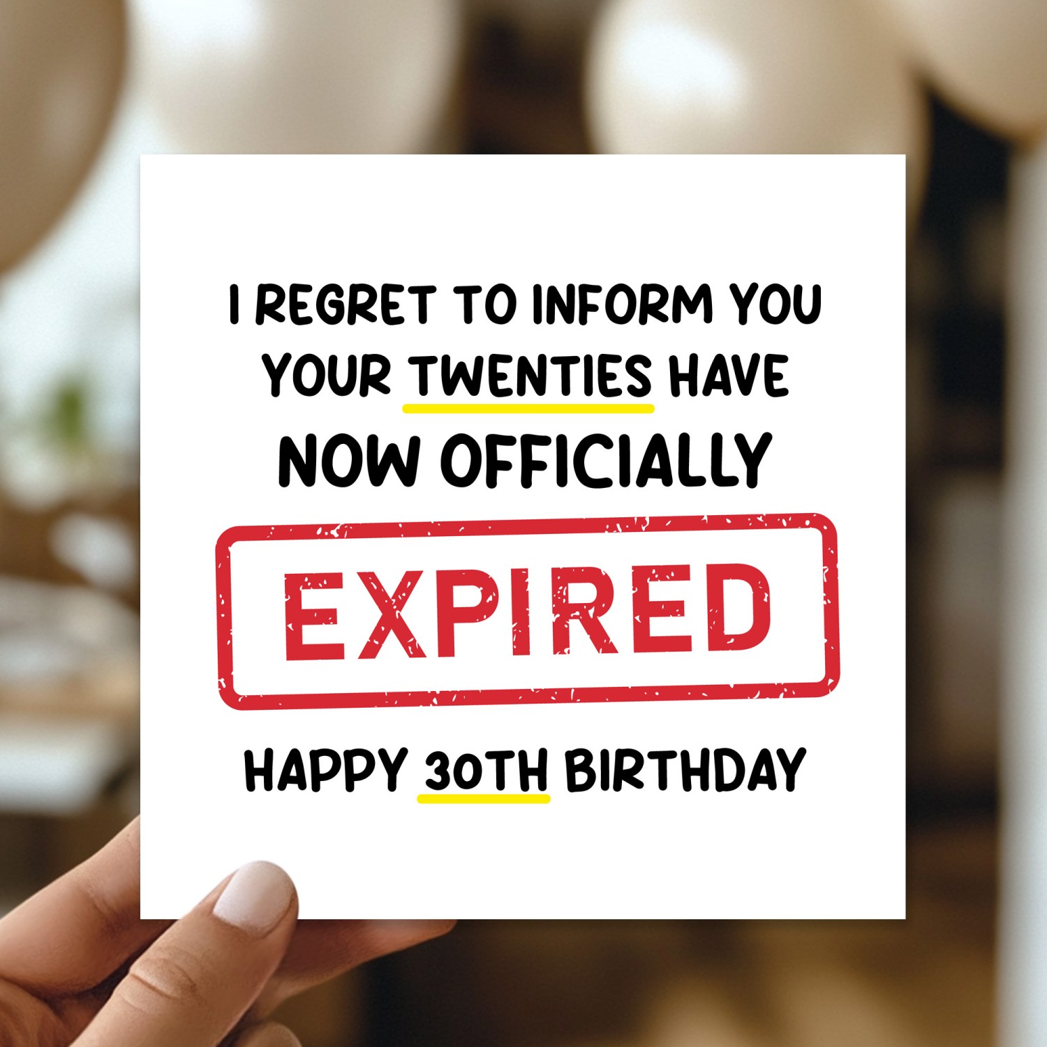 Funny 30th Birthday Card for Him Her Expired Birthday Card