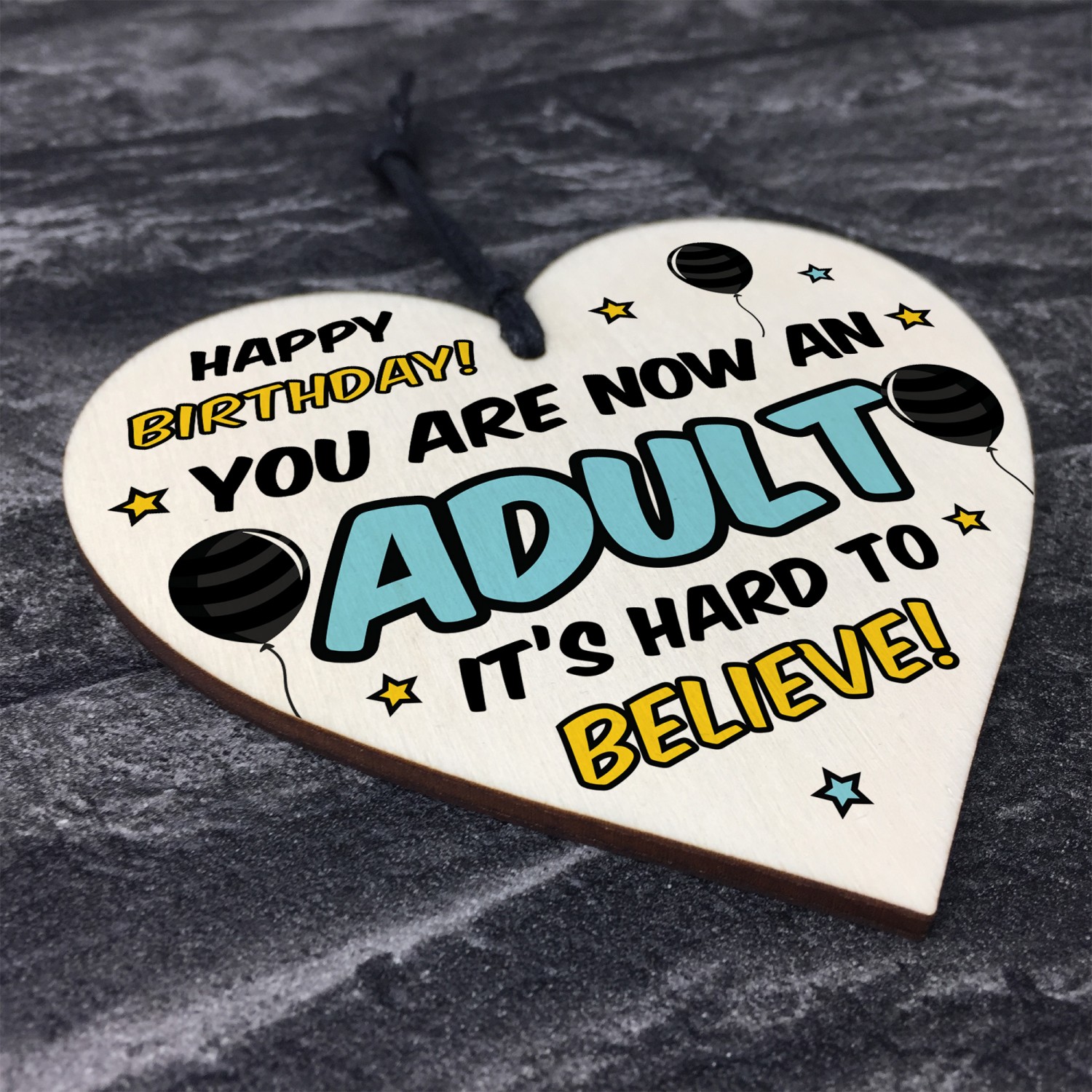 The sign is made from high quality, and the design is permanently printed into the heart. The wooden heart is supplied with waxed cotton rope in both black and red colours to allow easy hanging and looks great in any room of the house.