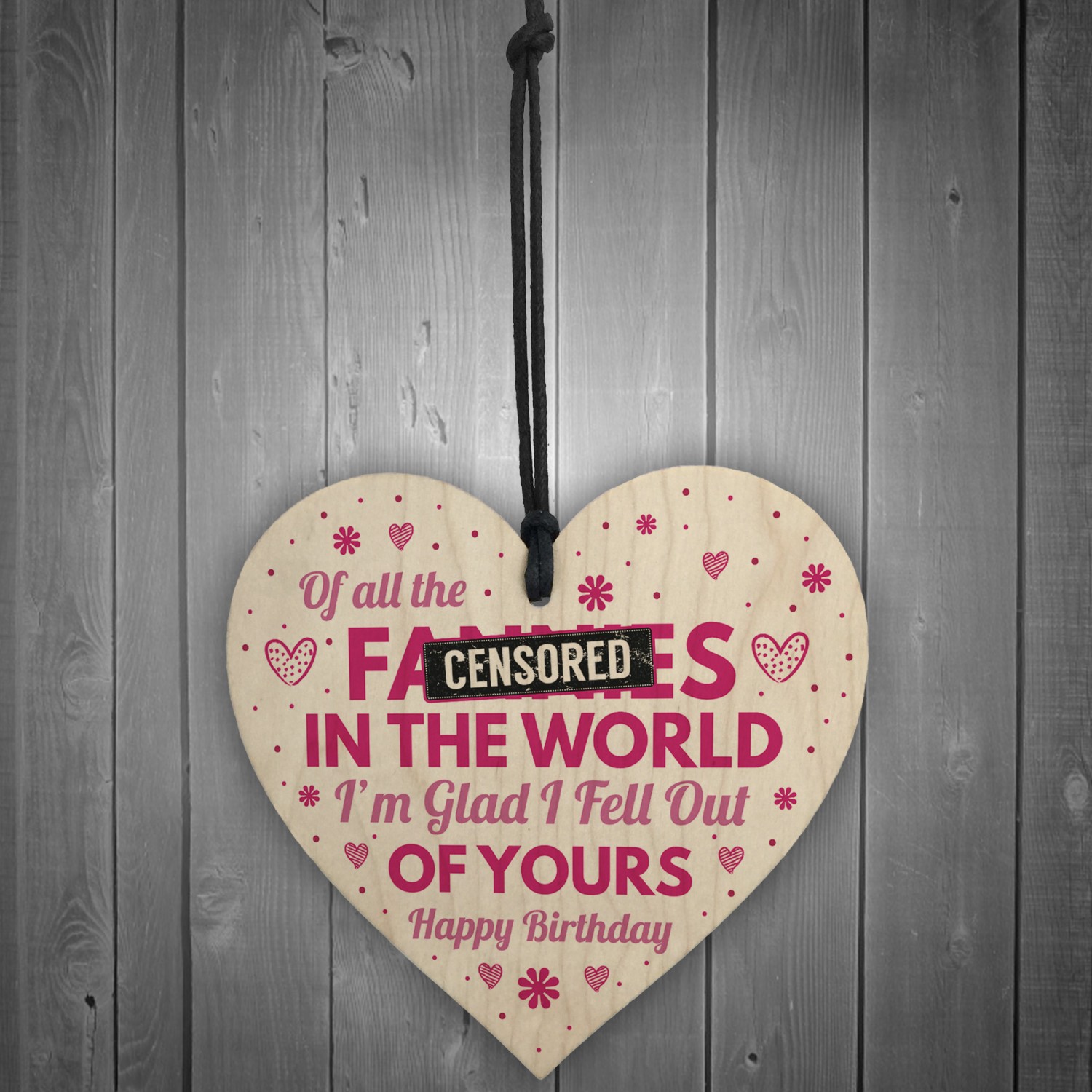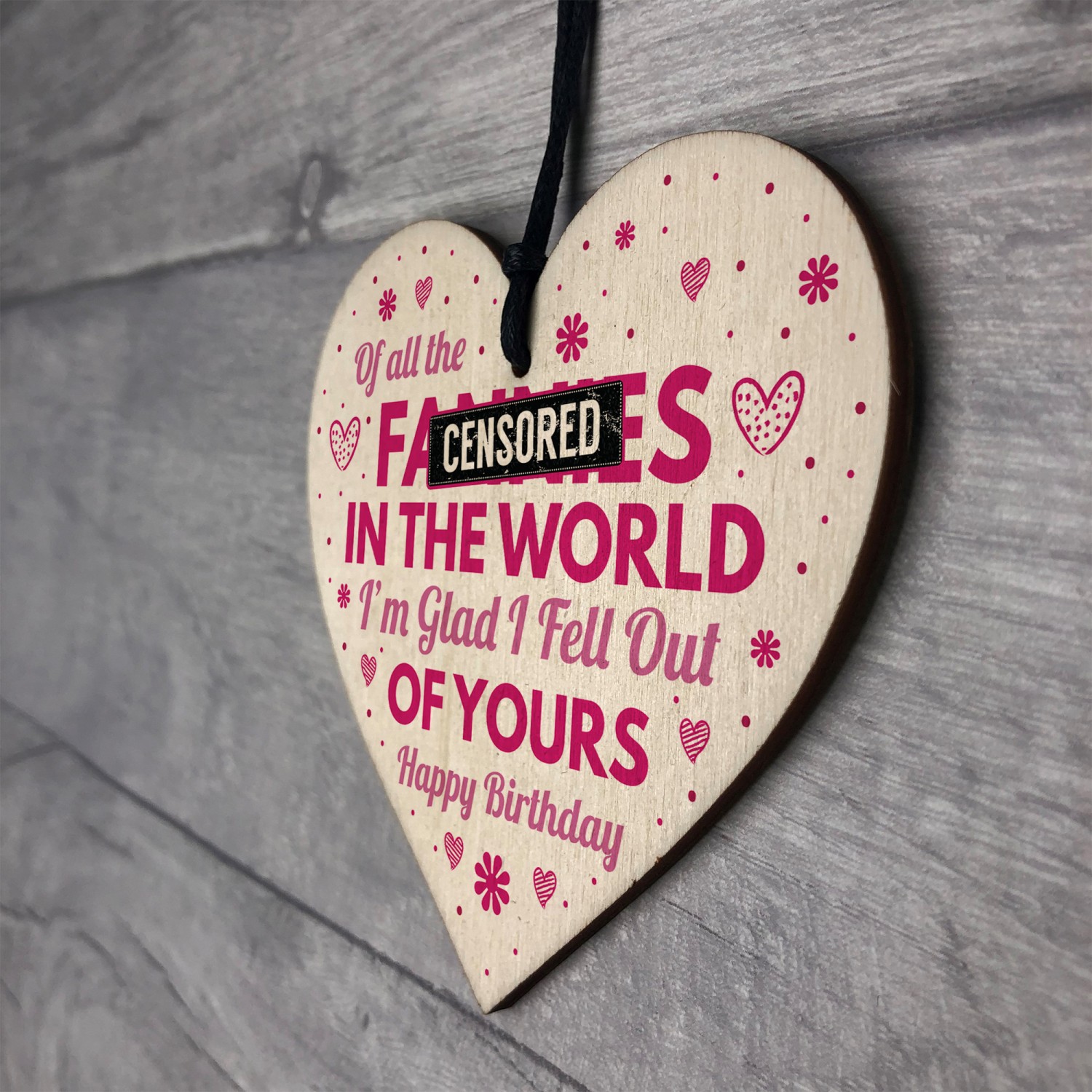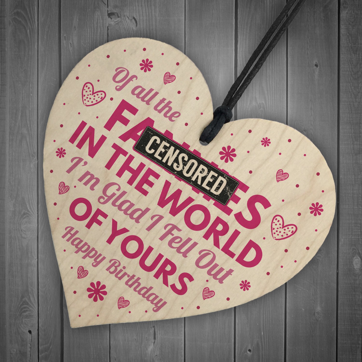A gorgeous wooden heart plaque printed with a funny / cheeky message! A unique and quirky alternative to a birthday card that your mum can hang up and keep as a memory for years to come. Give this gift with love and put a smile on your mum's face every time they read it.