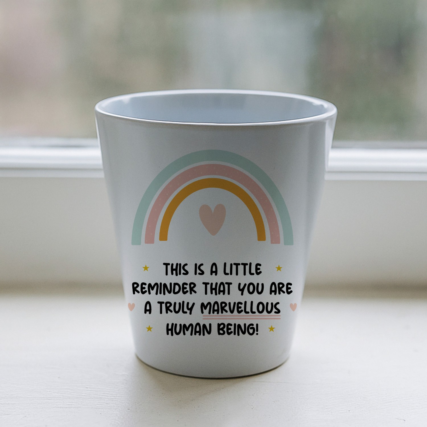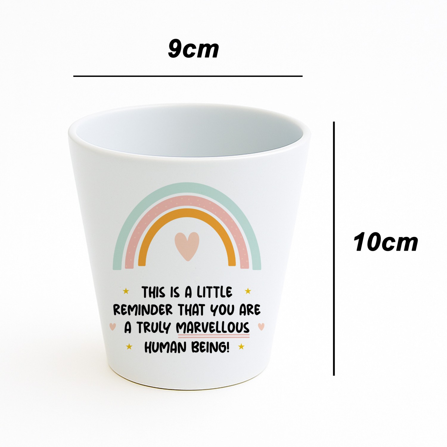 Measuring 10cm x 9cm, this premium ceramic pot features a built in drainage hole, making it perfect for planting a cheerful flower, a low maintenance succulent, or even a mini herb garden. With its sleek, glossy finish and touching message: