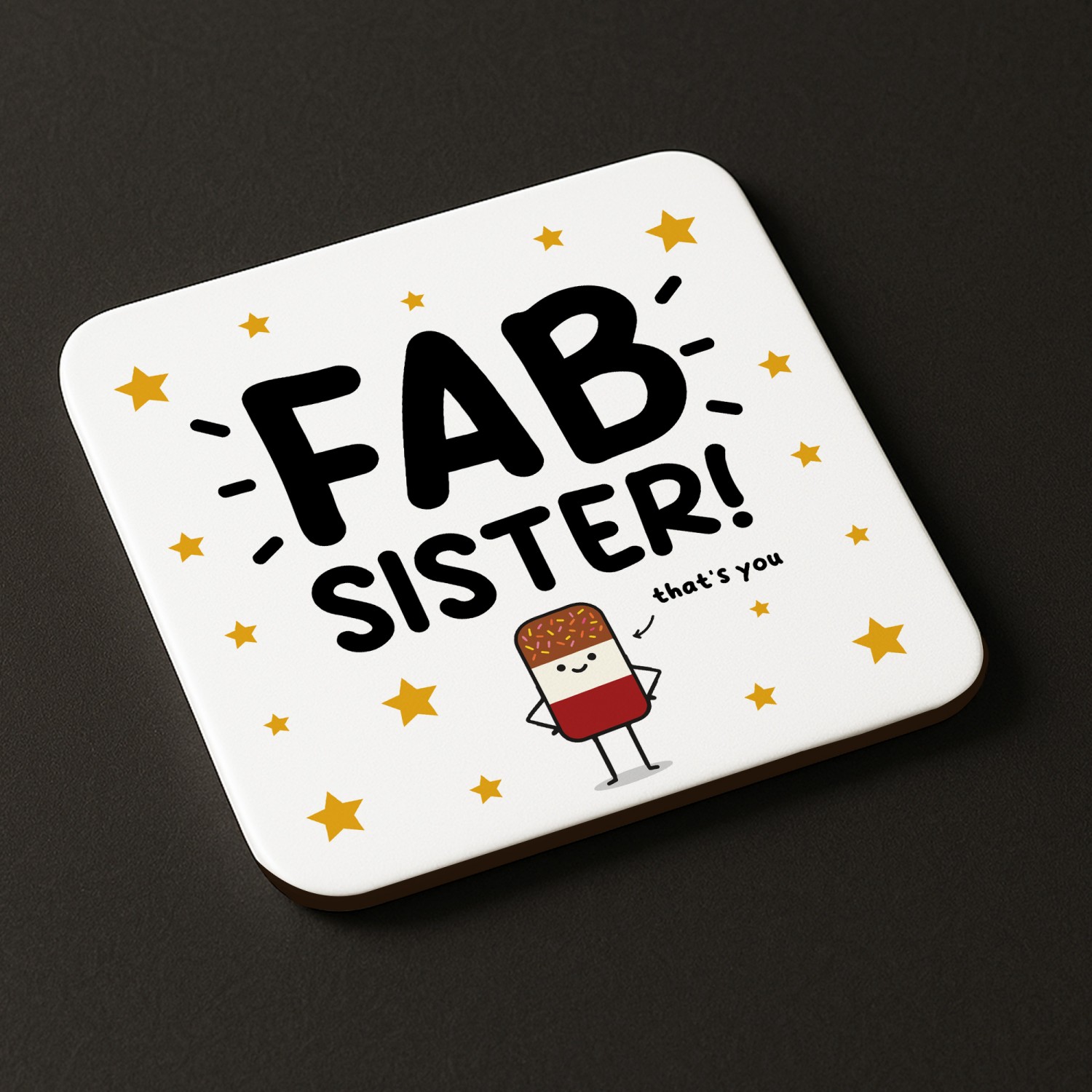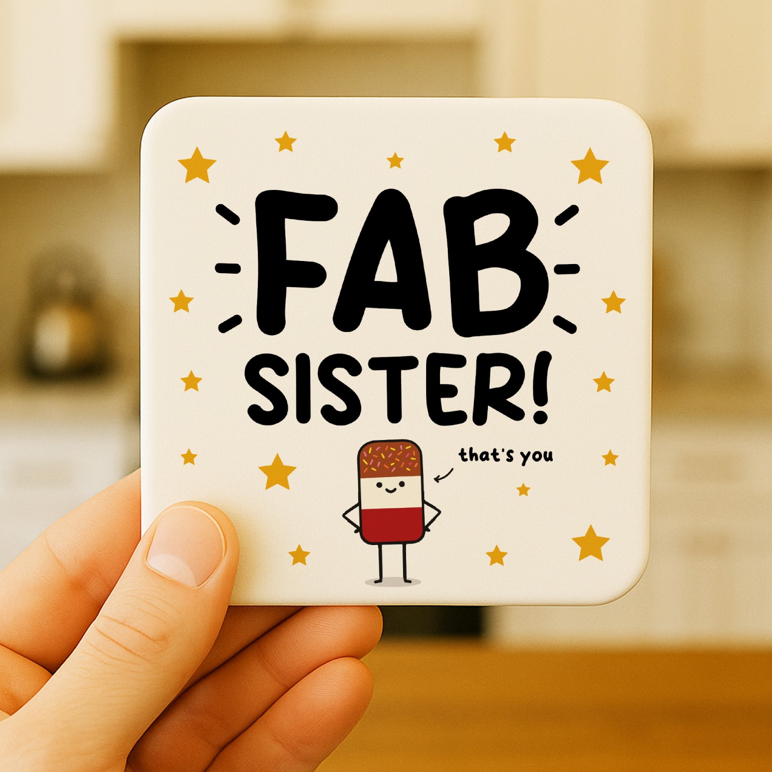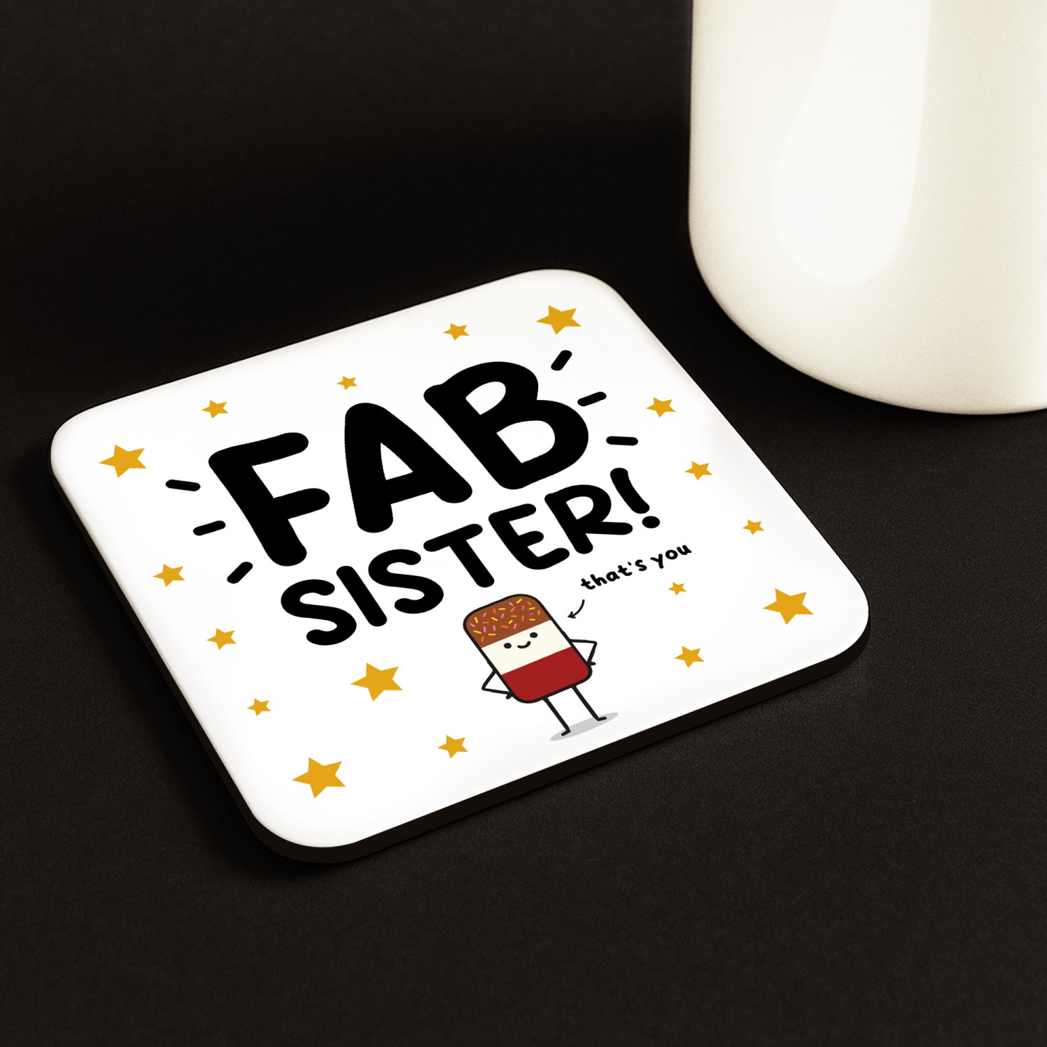 Gift For Sister FAB SISTER Coaster Funny Gift For Sister