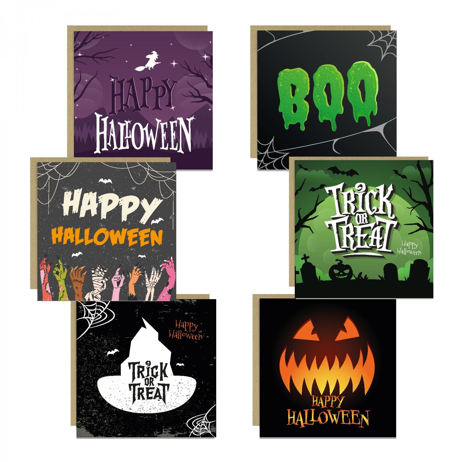 Share the spooky spirit this October with this set of 6 Halloween cards - perfect for sending to friends, family, classmates, or party guests. Each Halloween greeting card measures 14.5 x 14.5 cm and comes with a matching kraft envelope, making them ideal for posting or handing out.