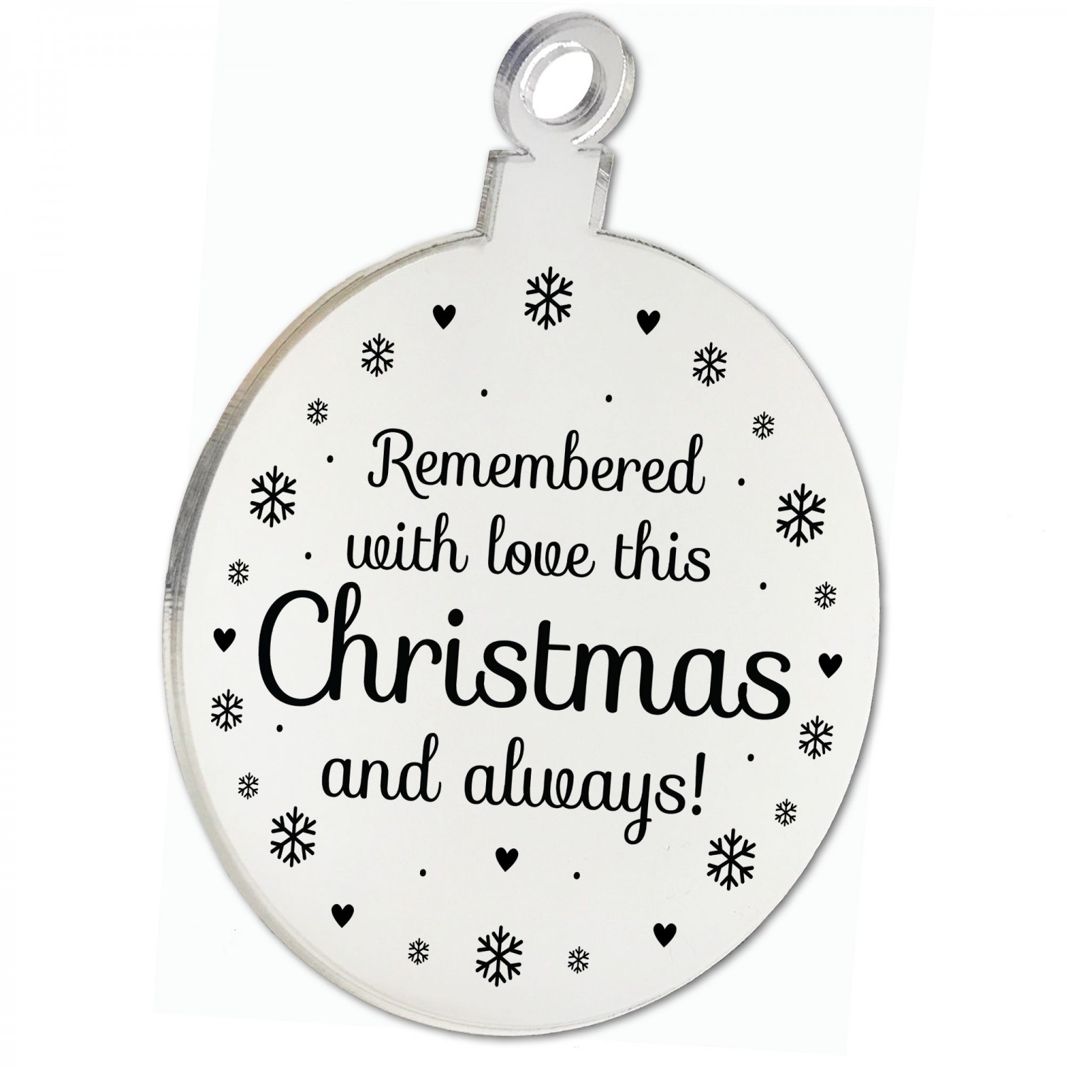 Crafted from acrylic, our Engraved Acrylic Bauble. Its crystal-clear surface captures the essence of the season, allowing the twinkling lights of your Christmas tree to dance and shimmer, creating a mesmerizing display of festive radiance.
