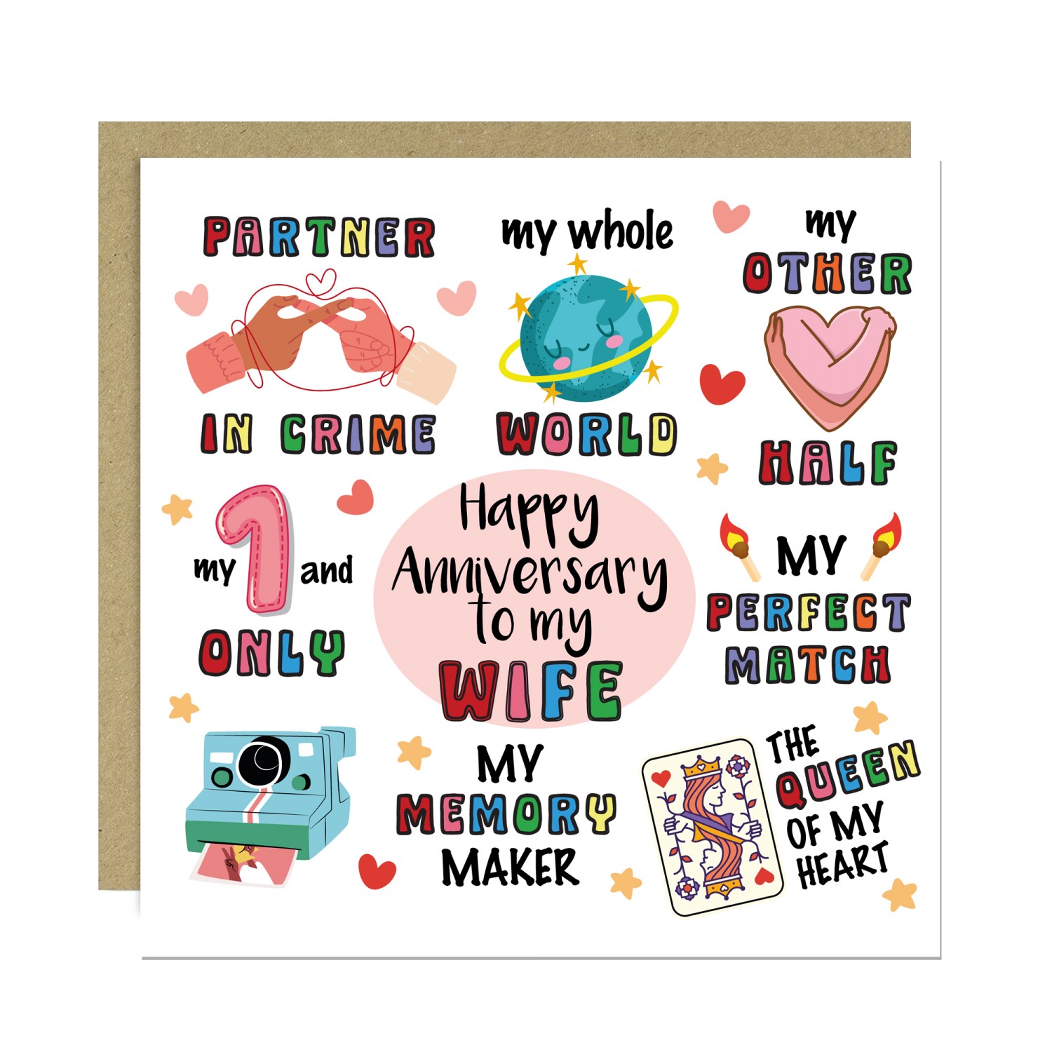 Happy Anniversary Card For Wife With Kraft Envelope
