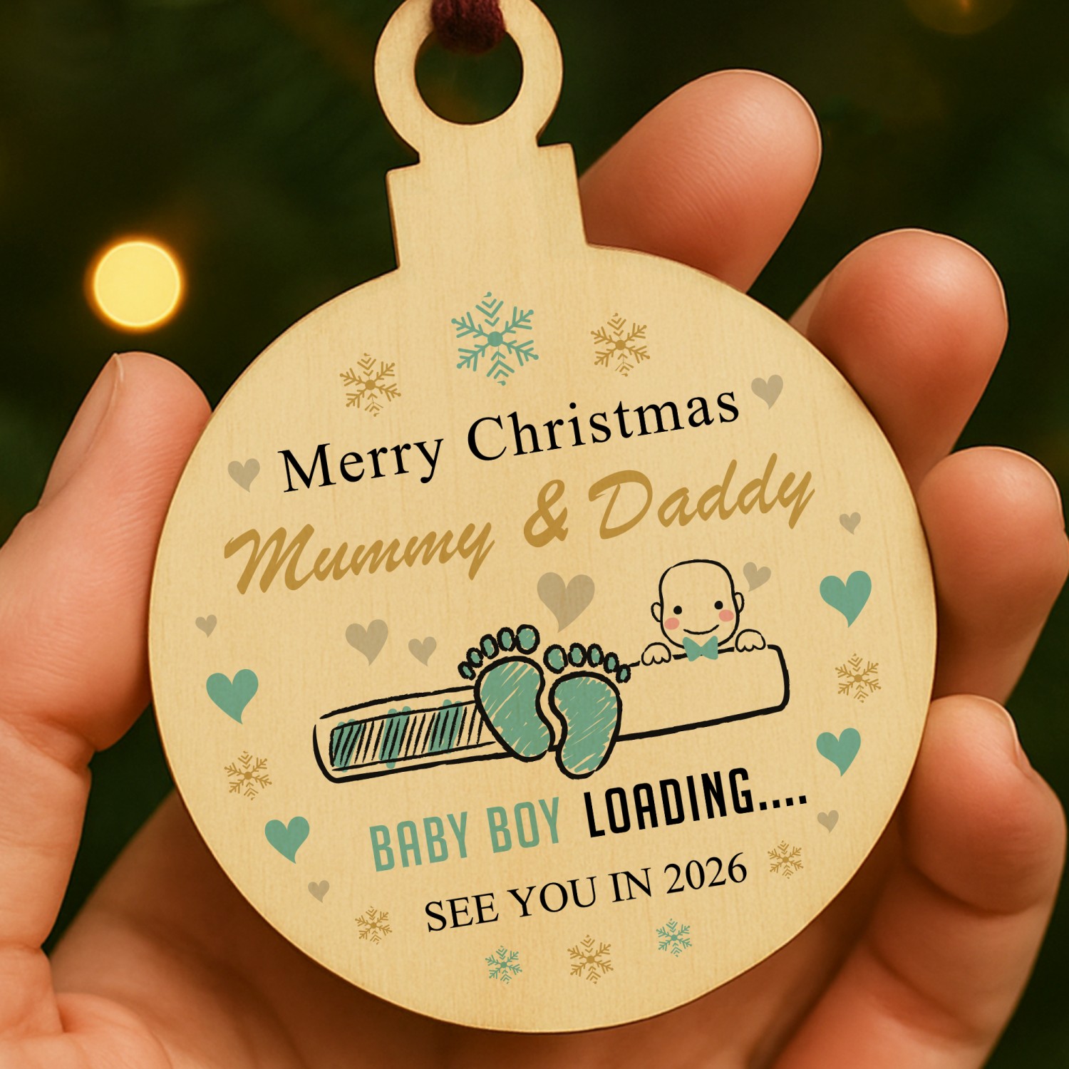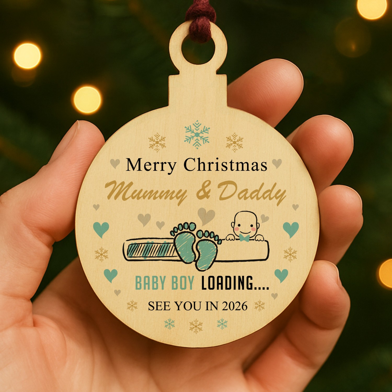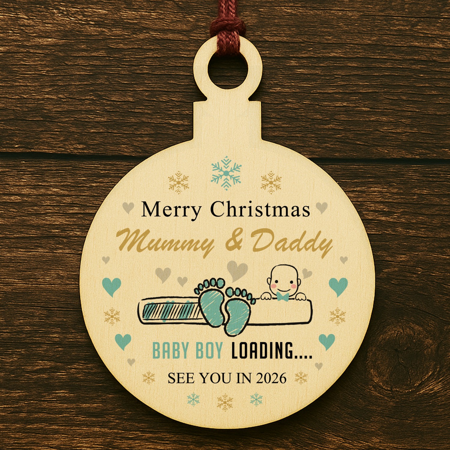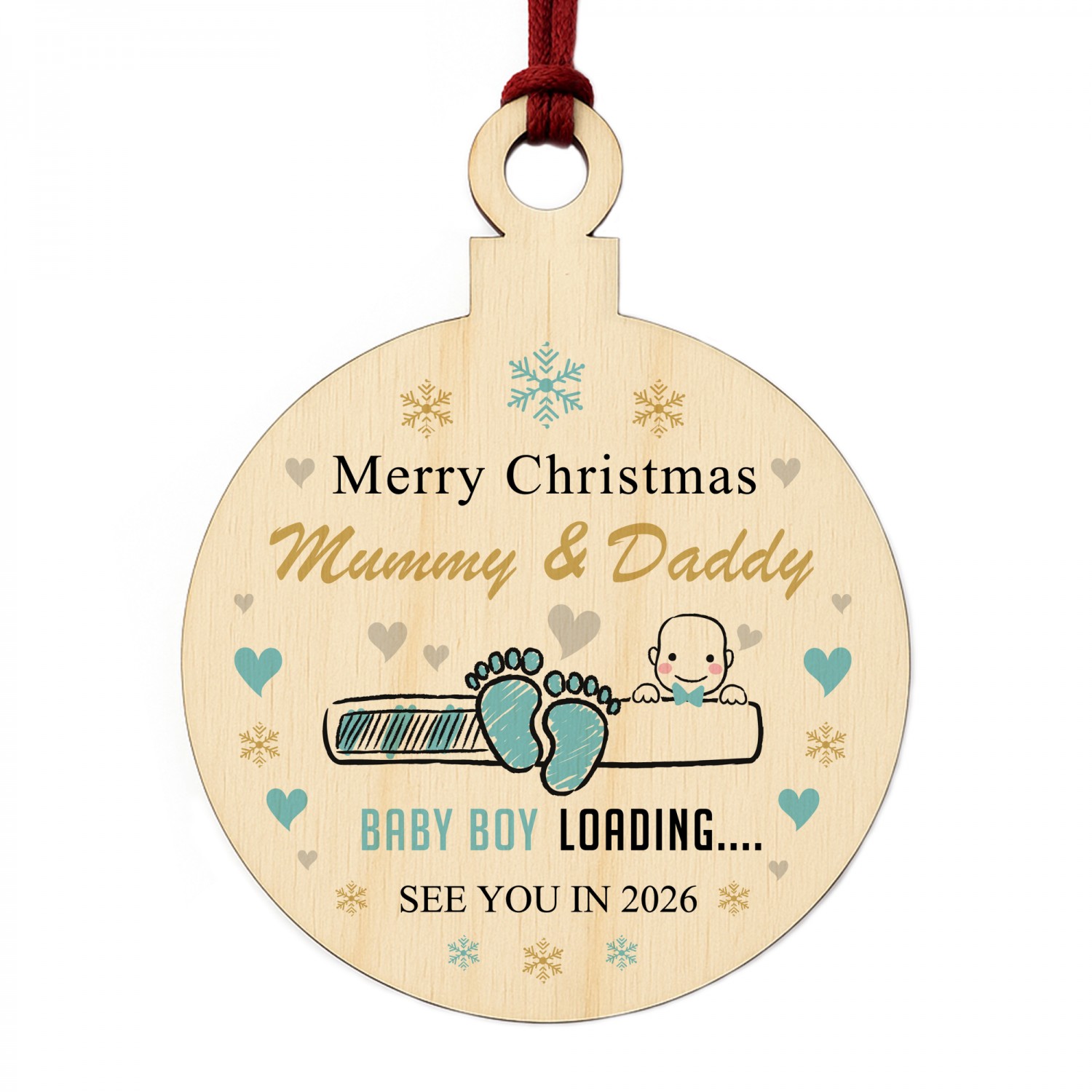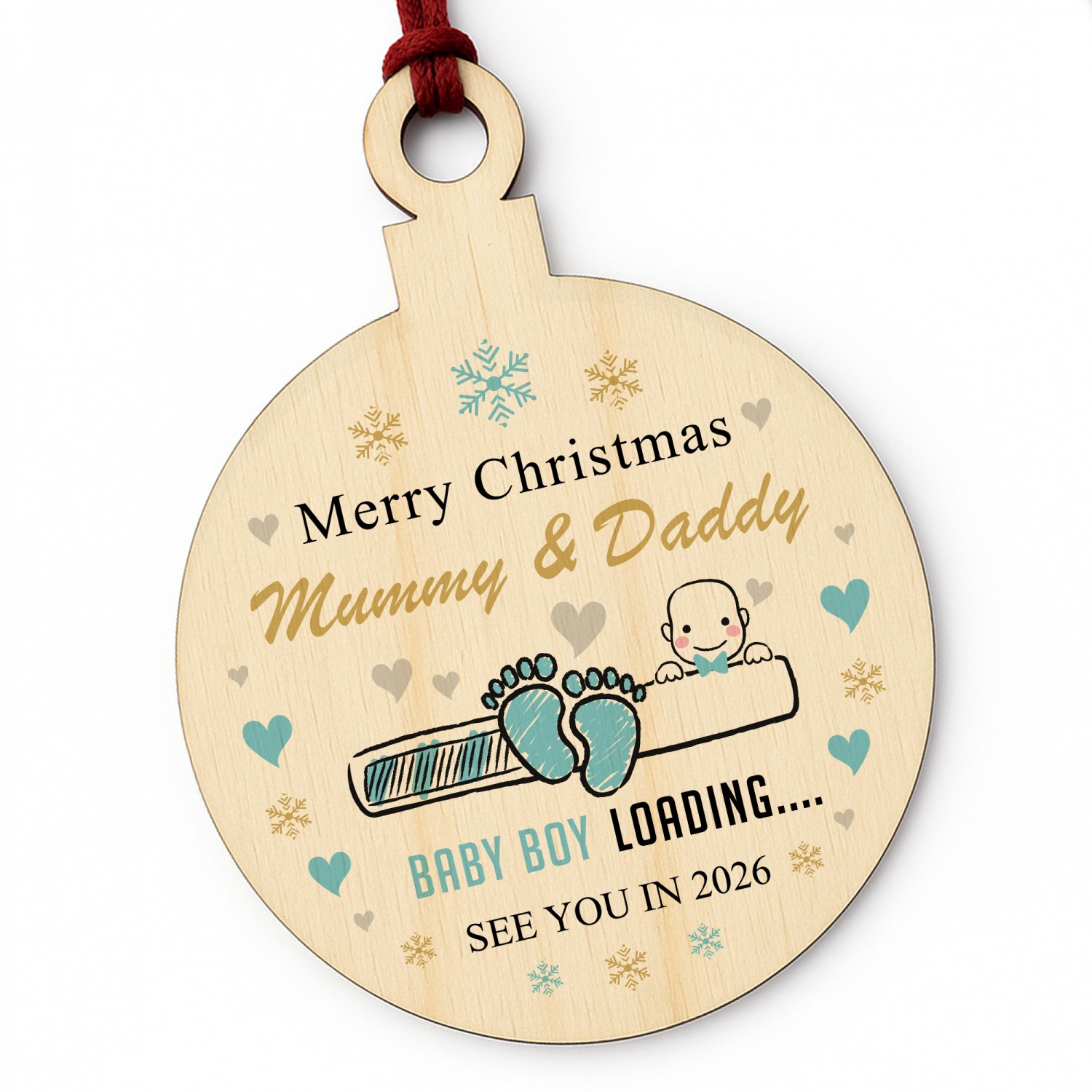 Merry Christmas Mummy And Daddy From Baby Boy Wood Bauble Gift