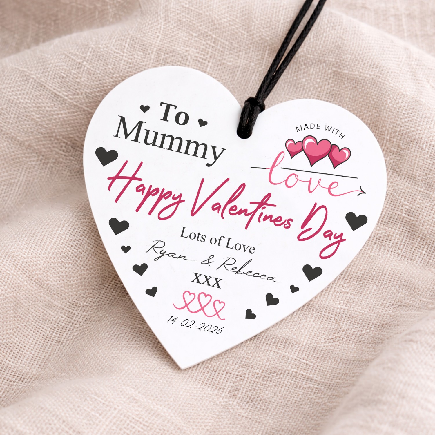 The heart plaque is designed to be hung with a simple black or red string, included with your order, making it easy to display on a wall, hook, or even as part of a decorative arrangement. Whether it's displayed in the living room, bedroom, hallway or office, it adds a meaningful personal touch wherever it's placed.