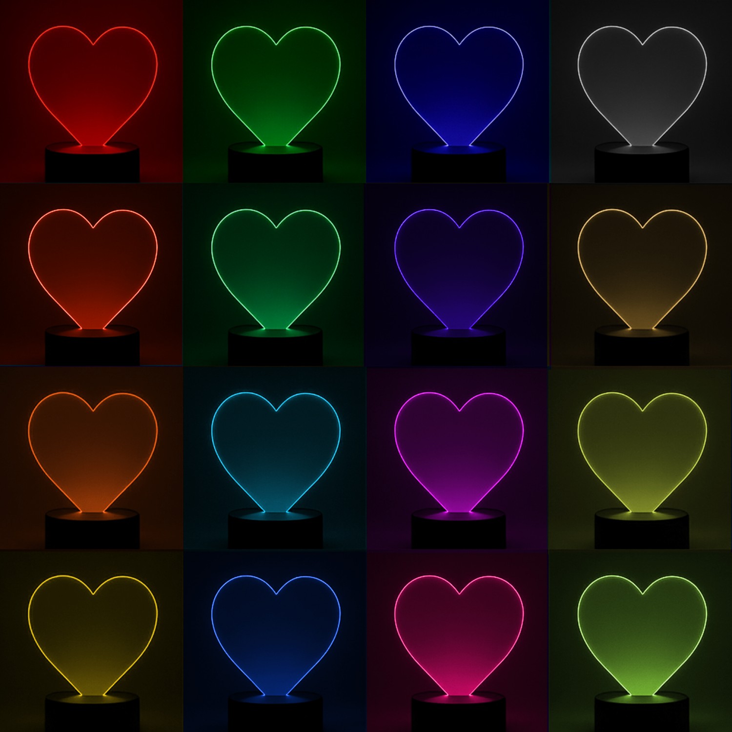 Crafted from premium clear acrylic, the plaque sits on a sleek LED base that glows in 16 colour-changing modes, including soft warm light, romantic pinks, cool blues, and vibrant multicolour effects. Adjust the lighting using the included remote control or USB colour control, making it ideal for bedroom decor, living rooms, nightstands, and cosy couple spaces.