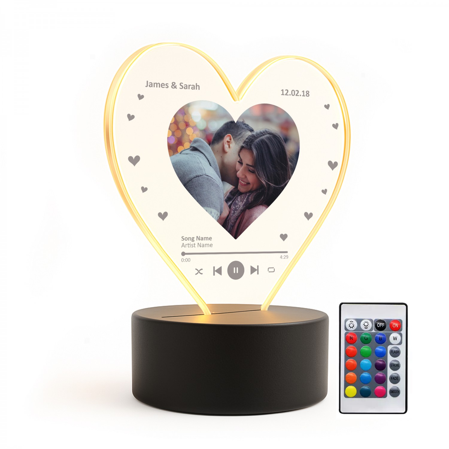 Custom LED Song Plaque - Personalised Heart-Shaped Music Display | 16-Colour Changing Light | Photo, Names, Date & Song Title