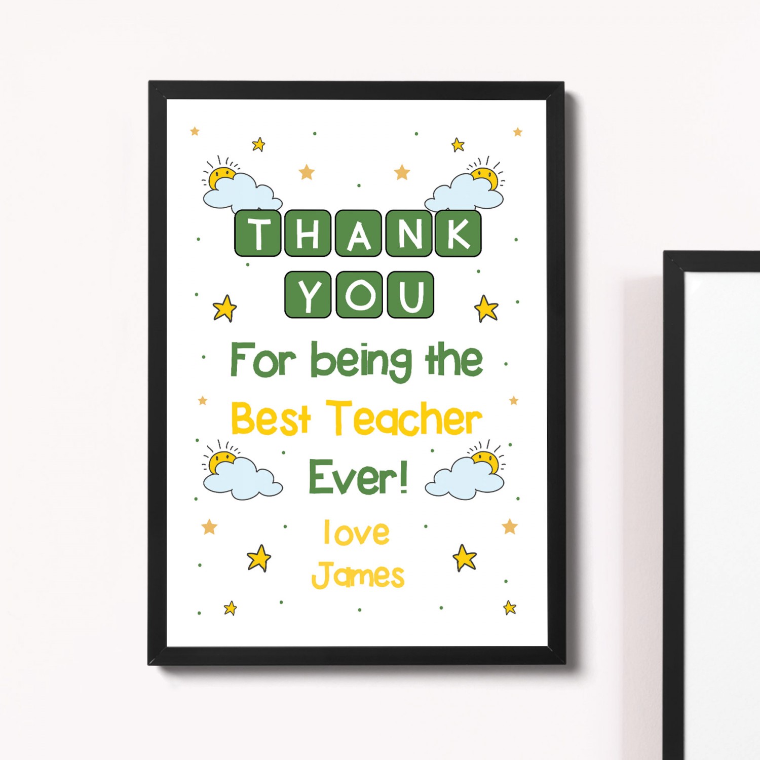 Are you searching for a heartfelt gift to say thank you to the Best Teacher ever? Look no further! Our A4 Print is a stunning work of art that doubles as a sentimental keepsake.