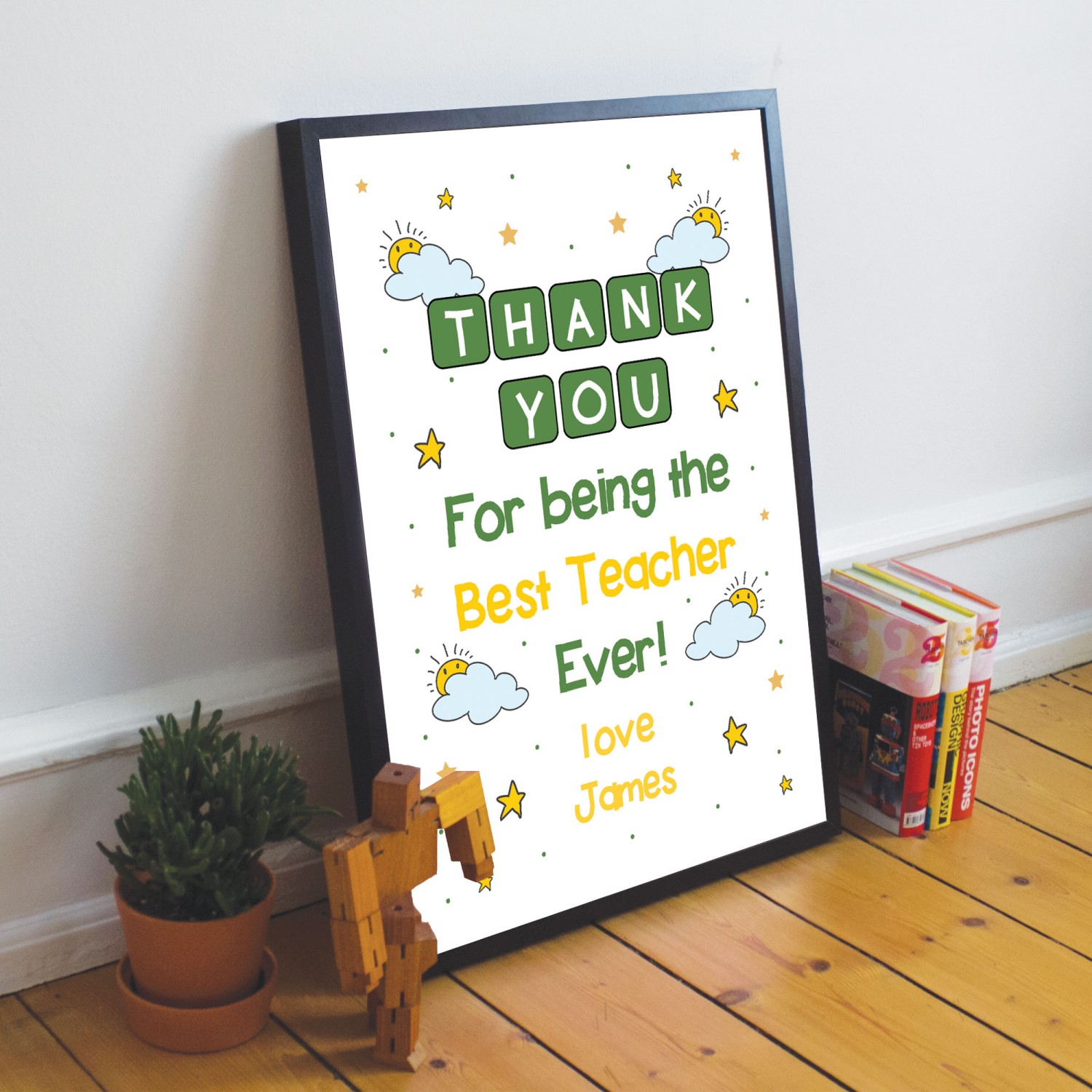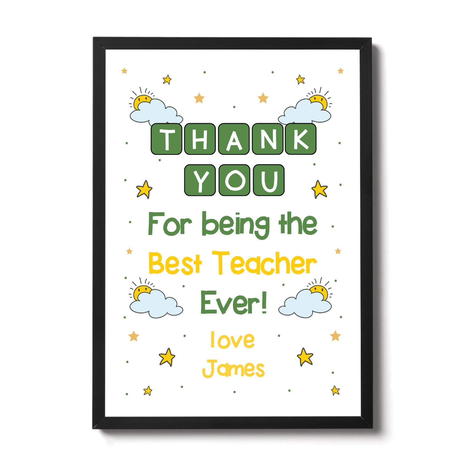Thank You Gift For Best Teacher Ever Personalised Framed Print