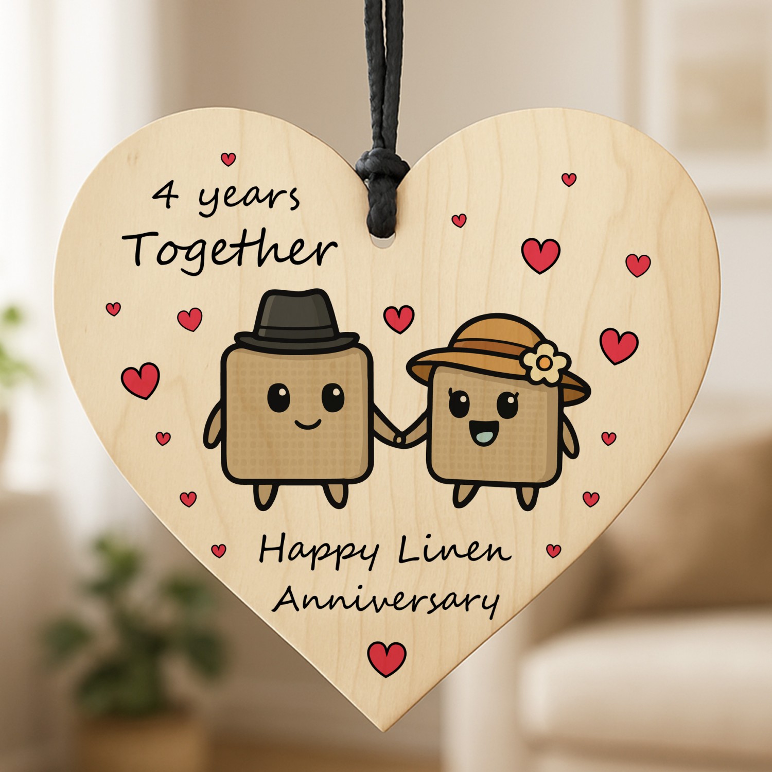 The sign is made from high quality, and the design is permanently printed into the heart. The wooden heart is supplied with waxed cotton rope in both black and red colours to allow easy hanging and looks great in any room of the house.