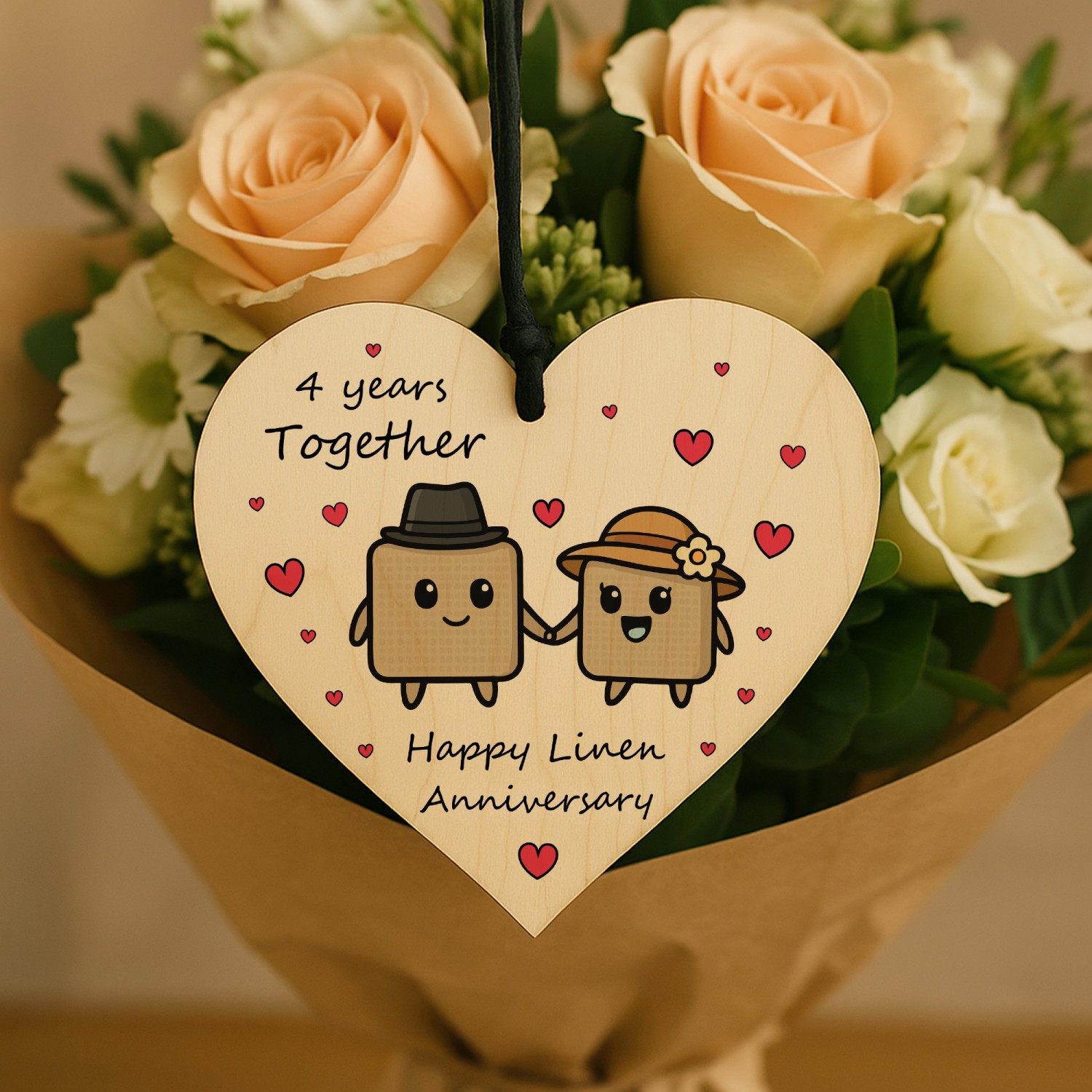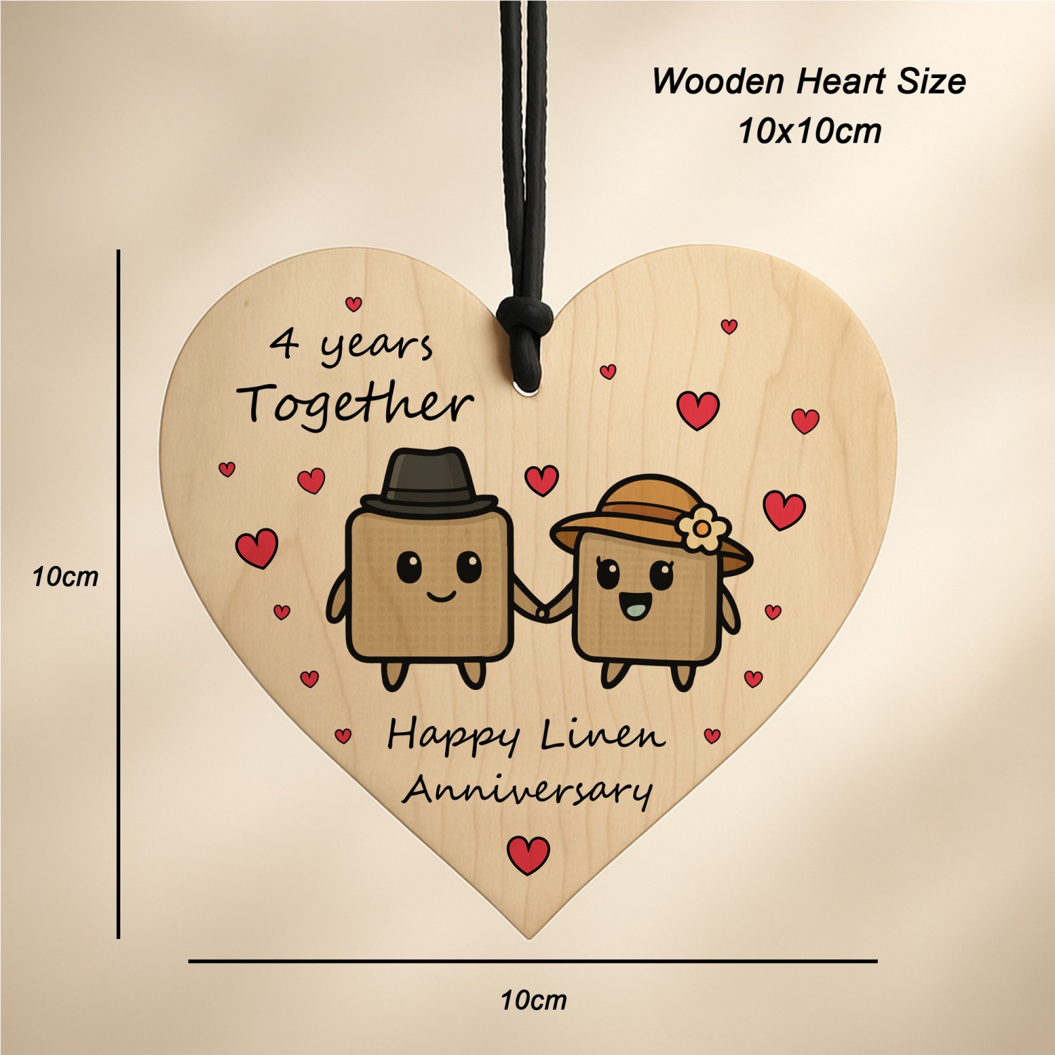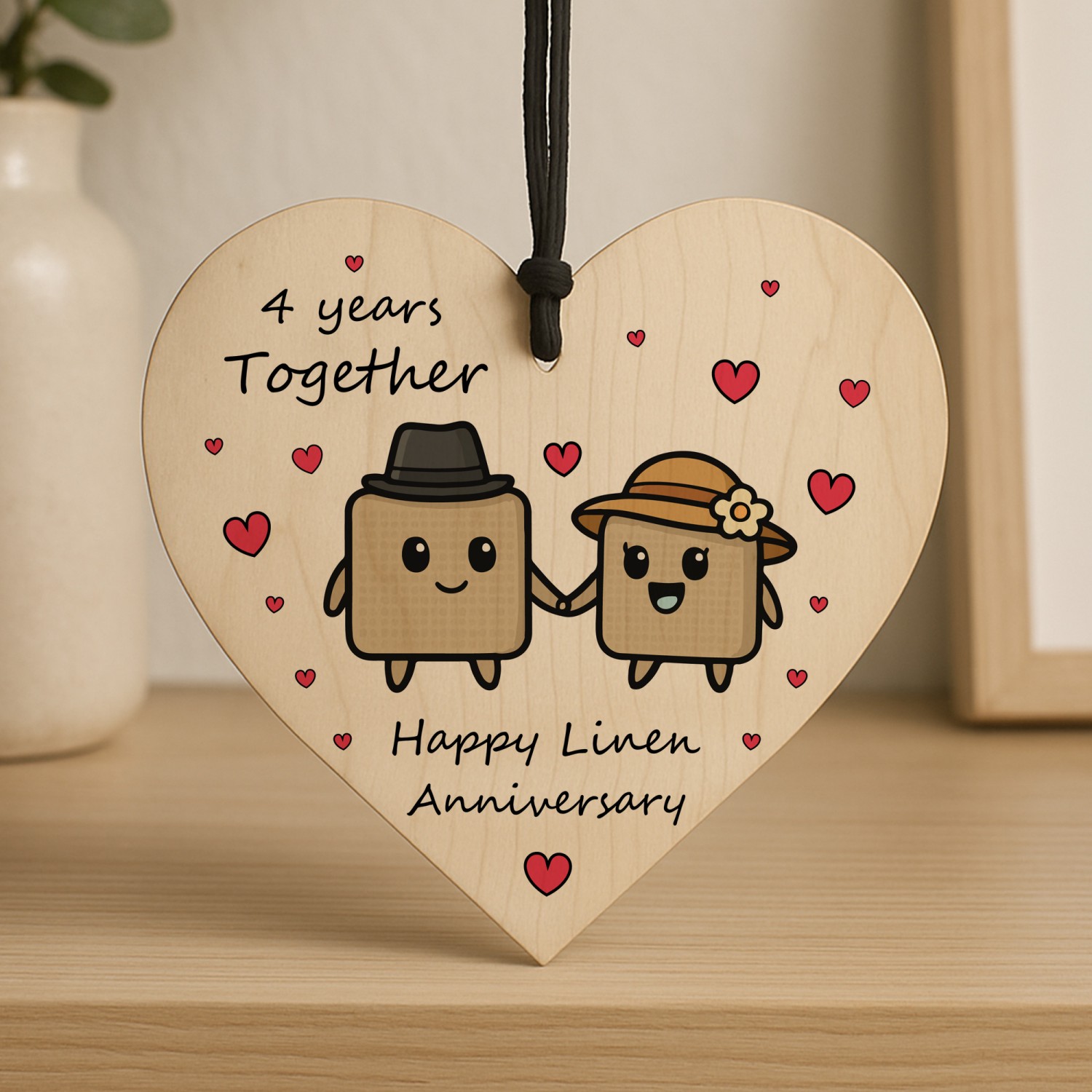 4th Anniversary Plaque Gifts For Wife Husband Wooden Heart