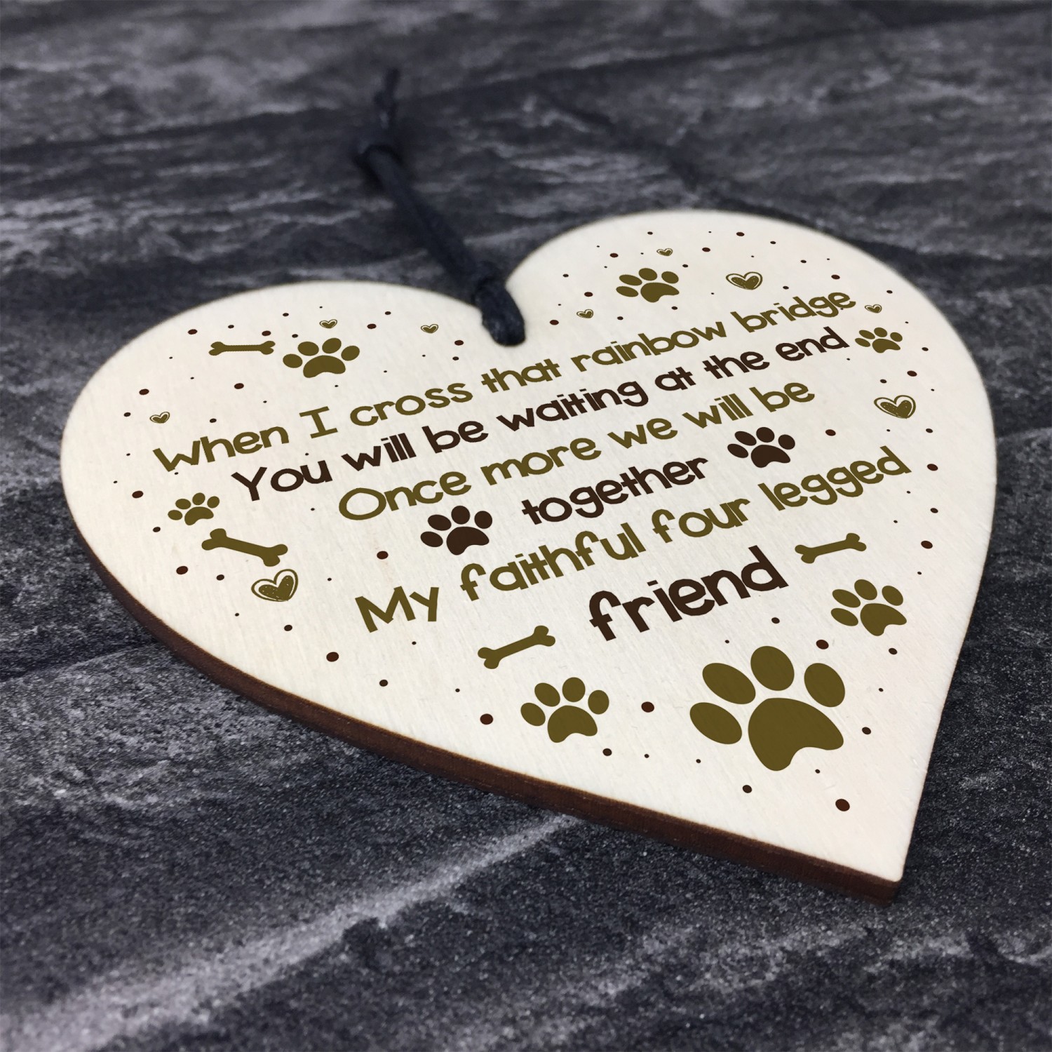A gorgeous wooden heart plaque printed with a beautiful messagewould be a lovely gift for a friend who has just lost their pet. Give this gift with love and put a smile on your friend's face every time they read it.Pet Memorial Gift! Pet Memorial Sign! Dog Memorial Gift! Cat Memorial Gift! Memorial Bauble! Pet Christmas Tree Decoration!
