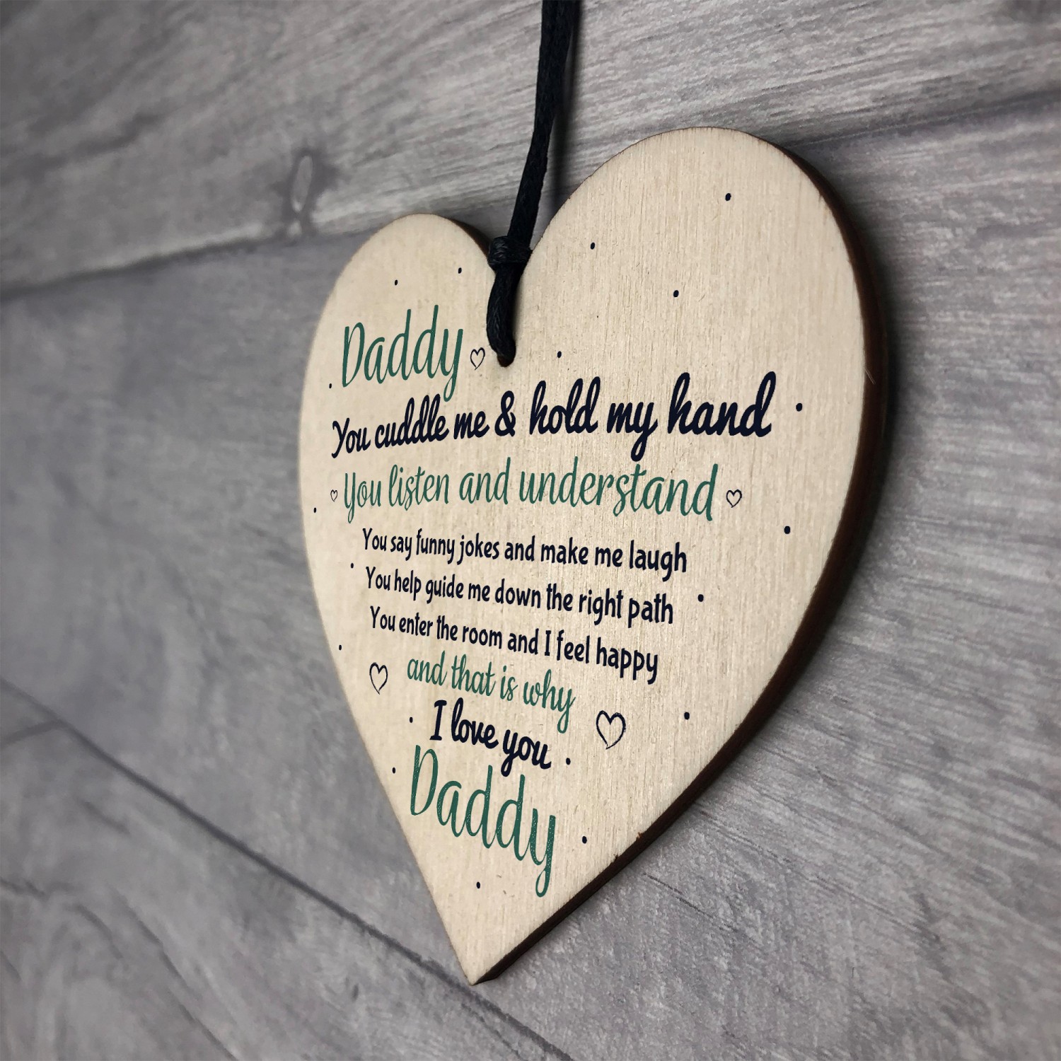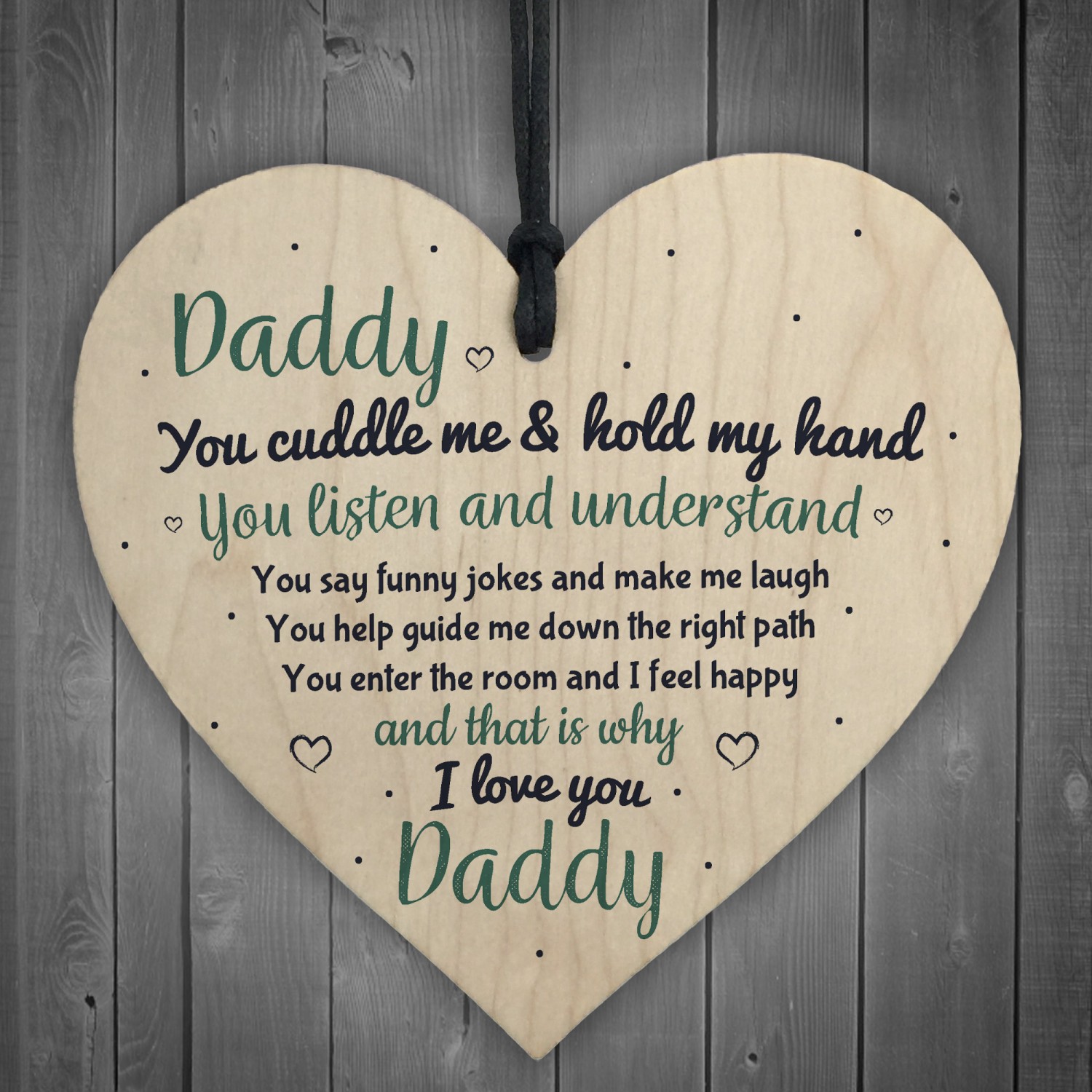 This gorgeous wooden heart plaque printed with this sweet, heartfelt message would be the best gift for your children to give to their Dad on his Birthday or on Fathers Day this year. Give this gift with love and put a smile on his face as soon as he sees it! A wonderful keepsake which he can treasure forever.