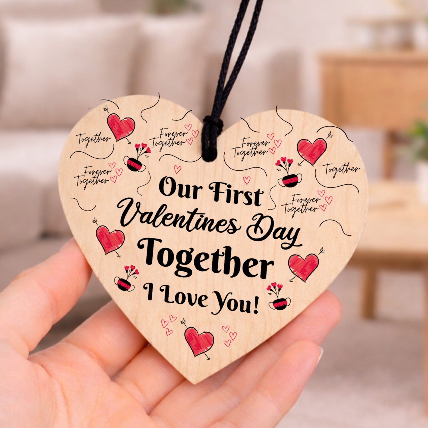 The sign is made from high quality, and the design is permanently printed into the heart. The wooden heart is supplied with waxed cotton rope in both black and red colours to allow easy hanging and looks great in any room of the house.