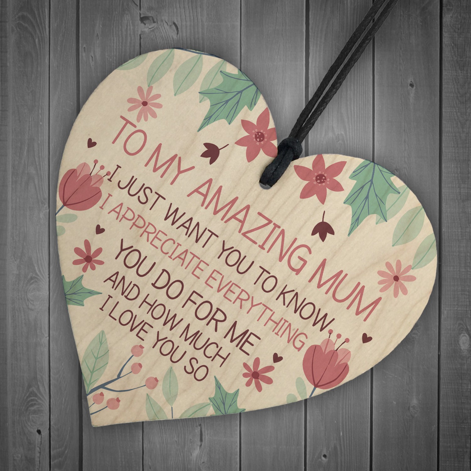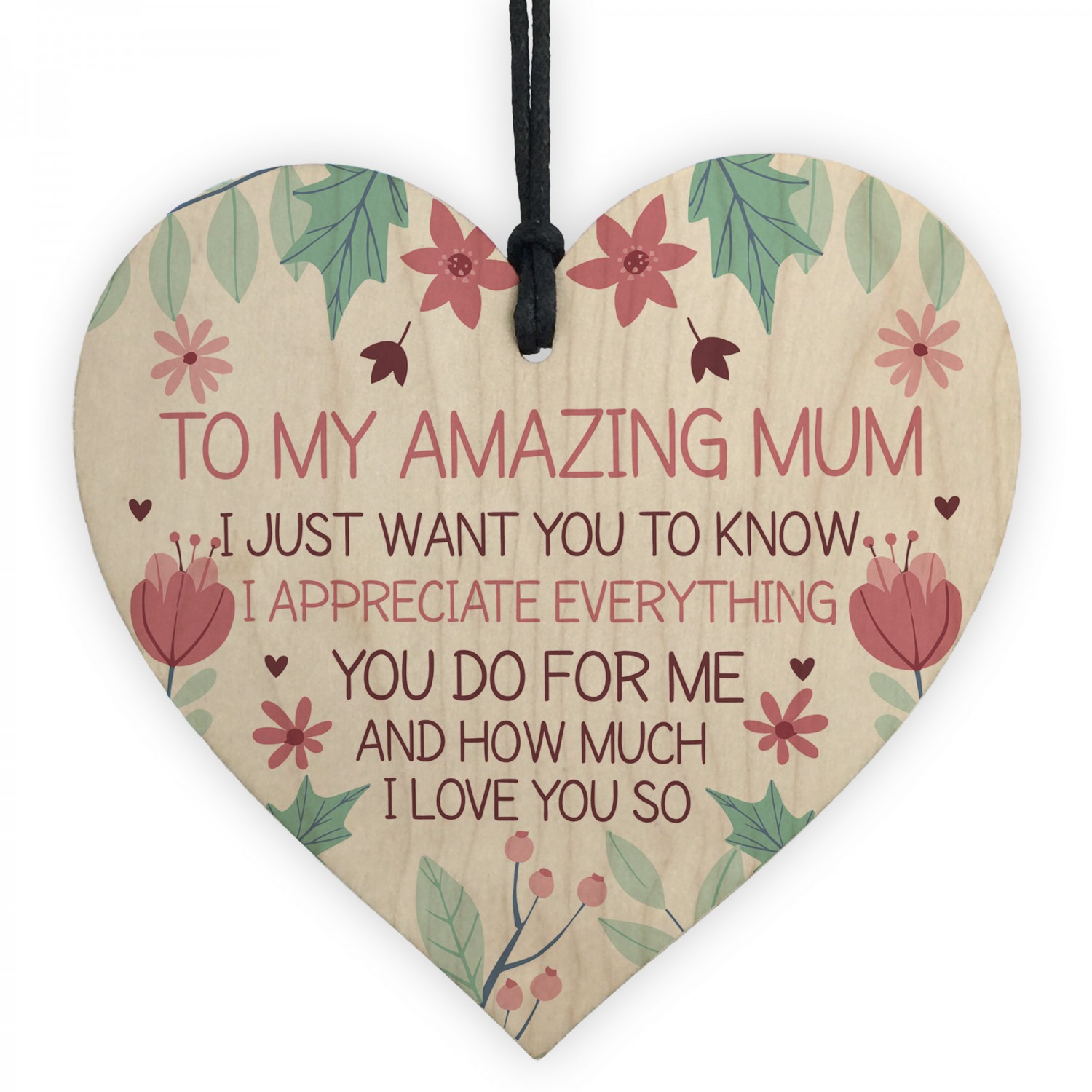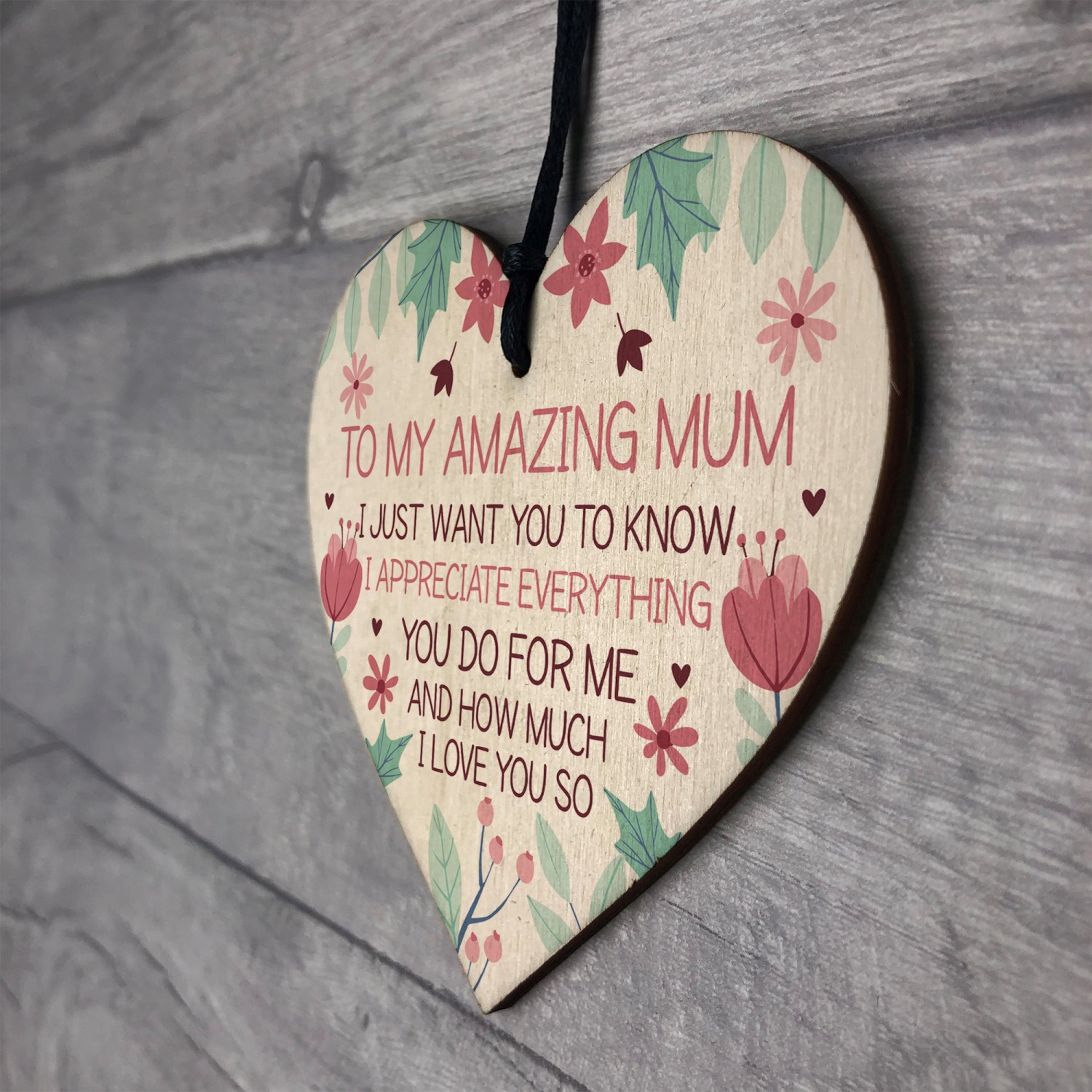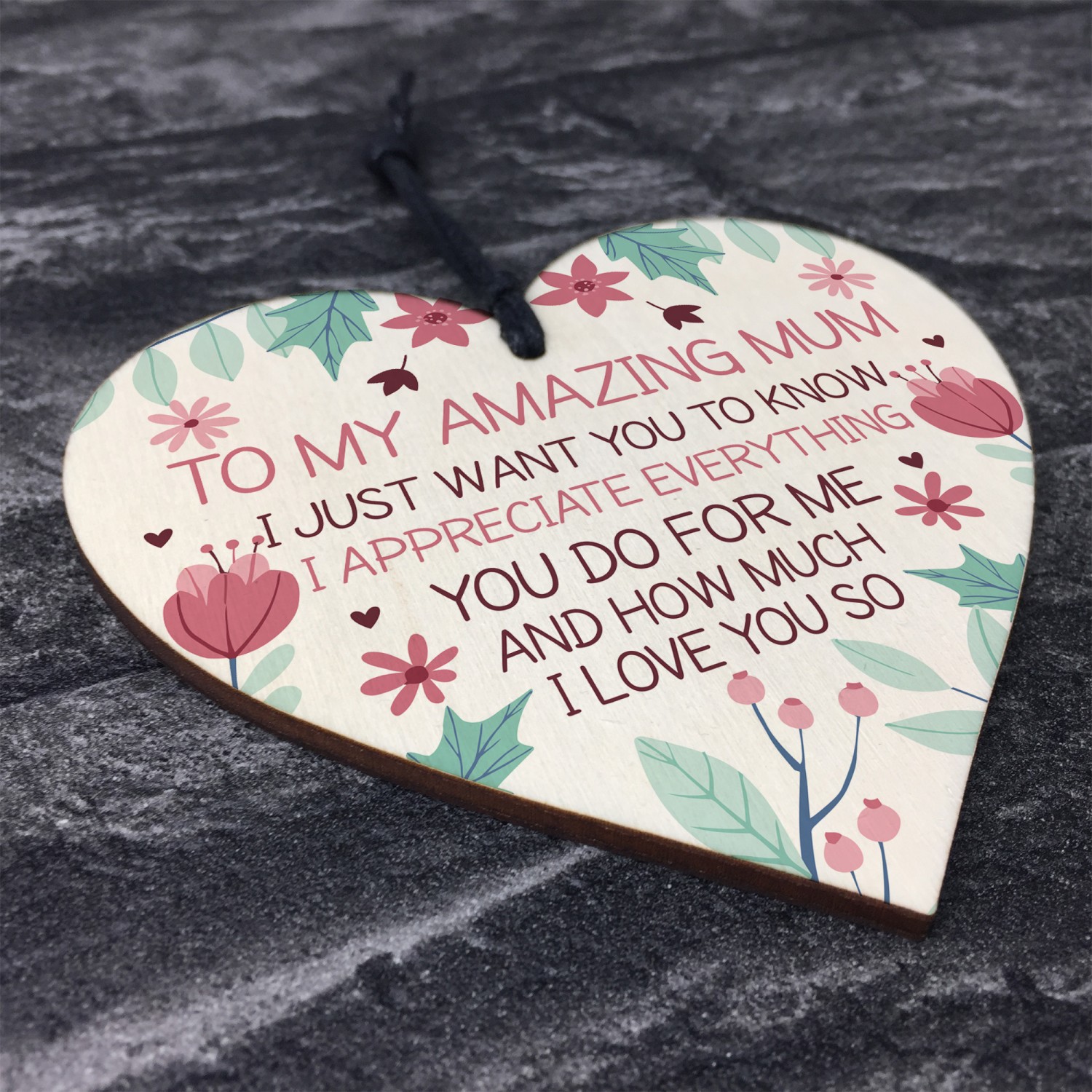 Thank You Gift For Mum Wood Heart Amazing Mum Gift For Birthday