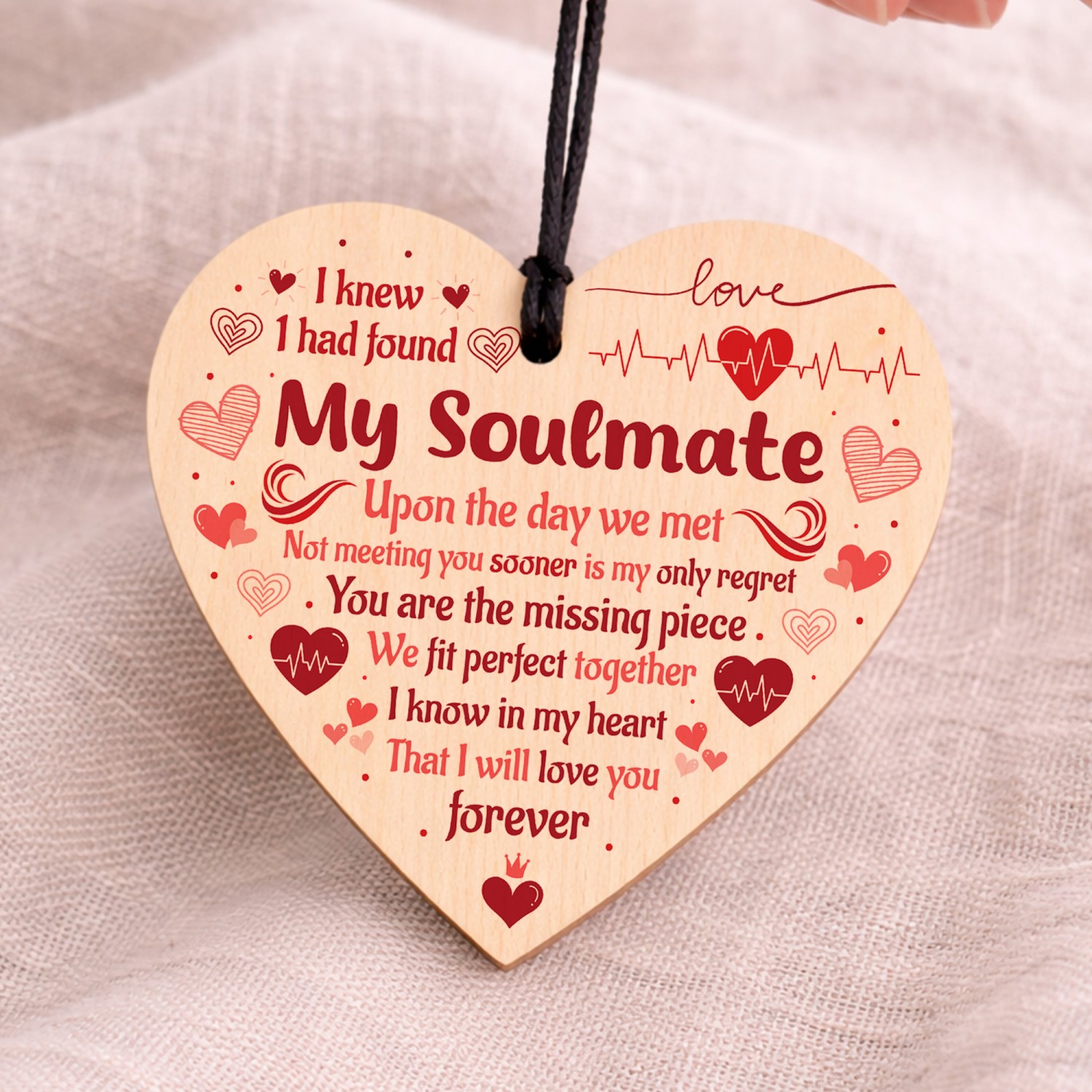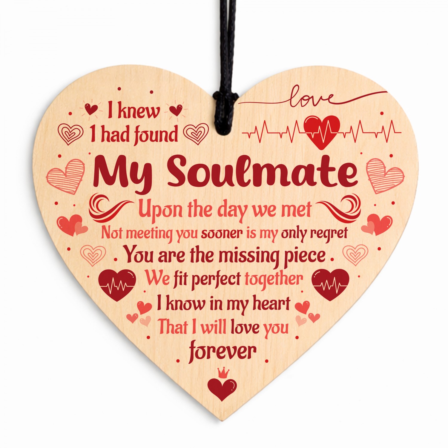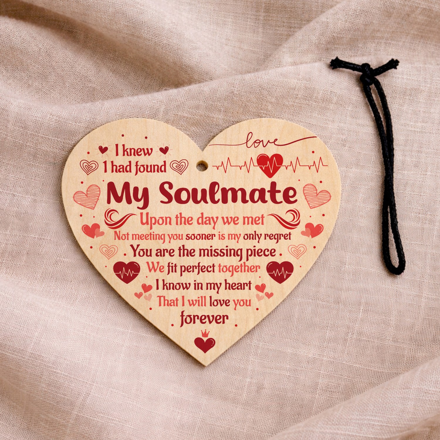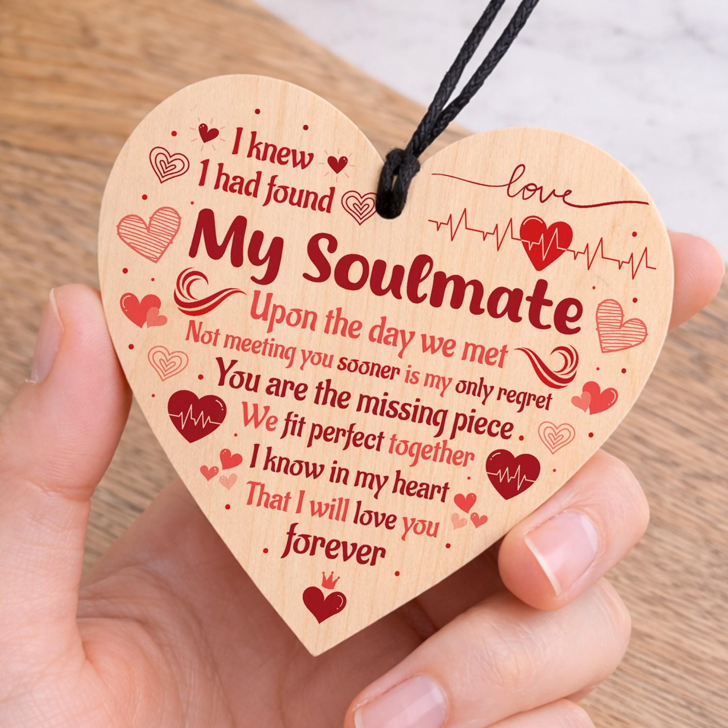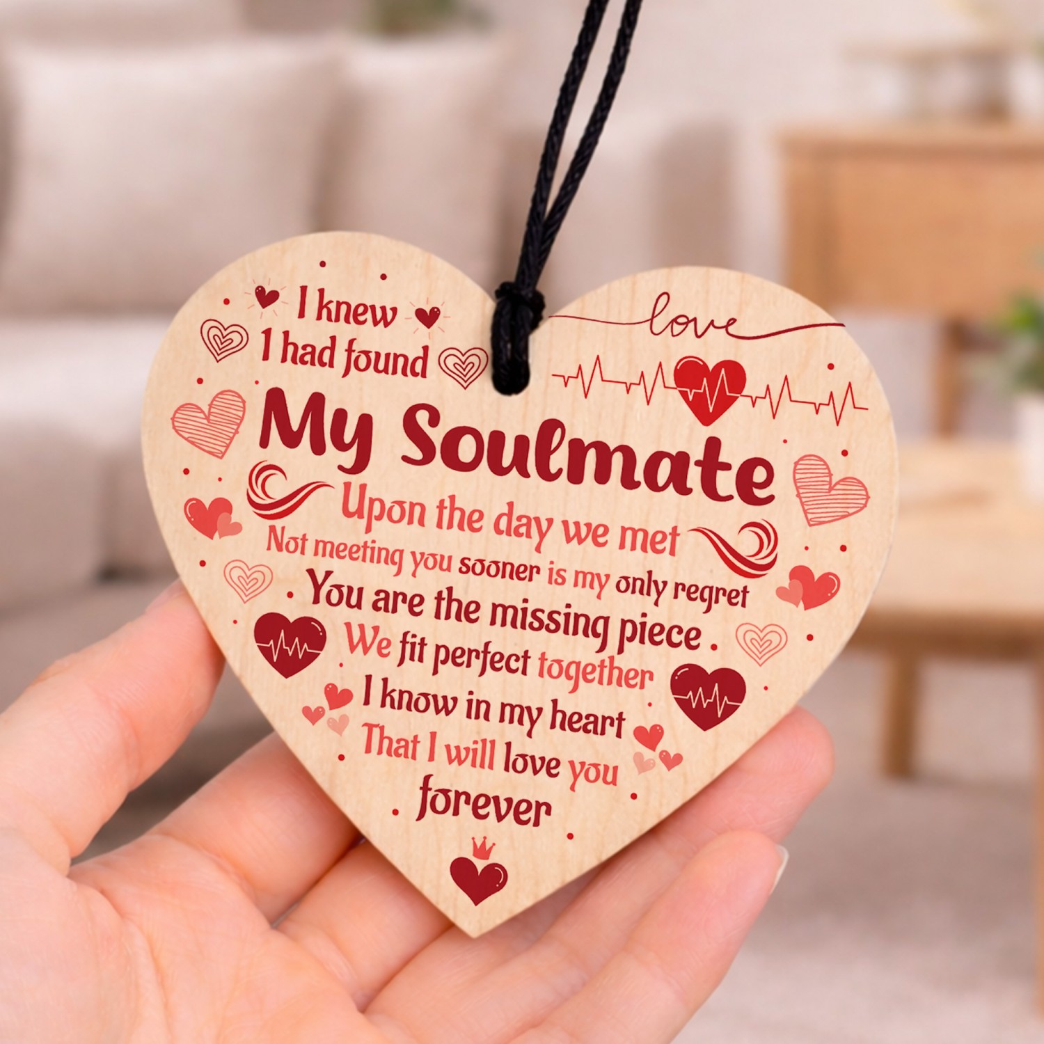 The sign is made from high quality, and the design is permanently printed into the heart. The wooden heart is supplied with waxed cotton rope in both black and red colours to allow easy hanging and looks great in any room of the house.