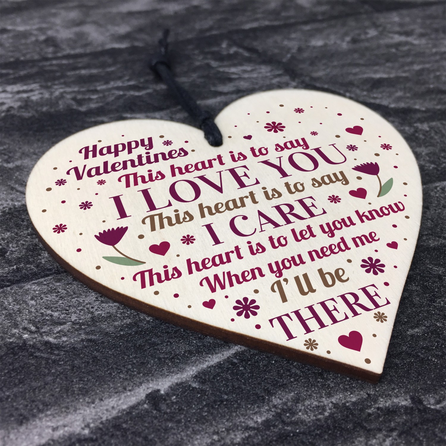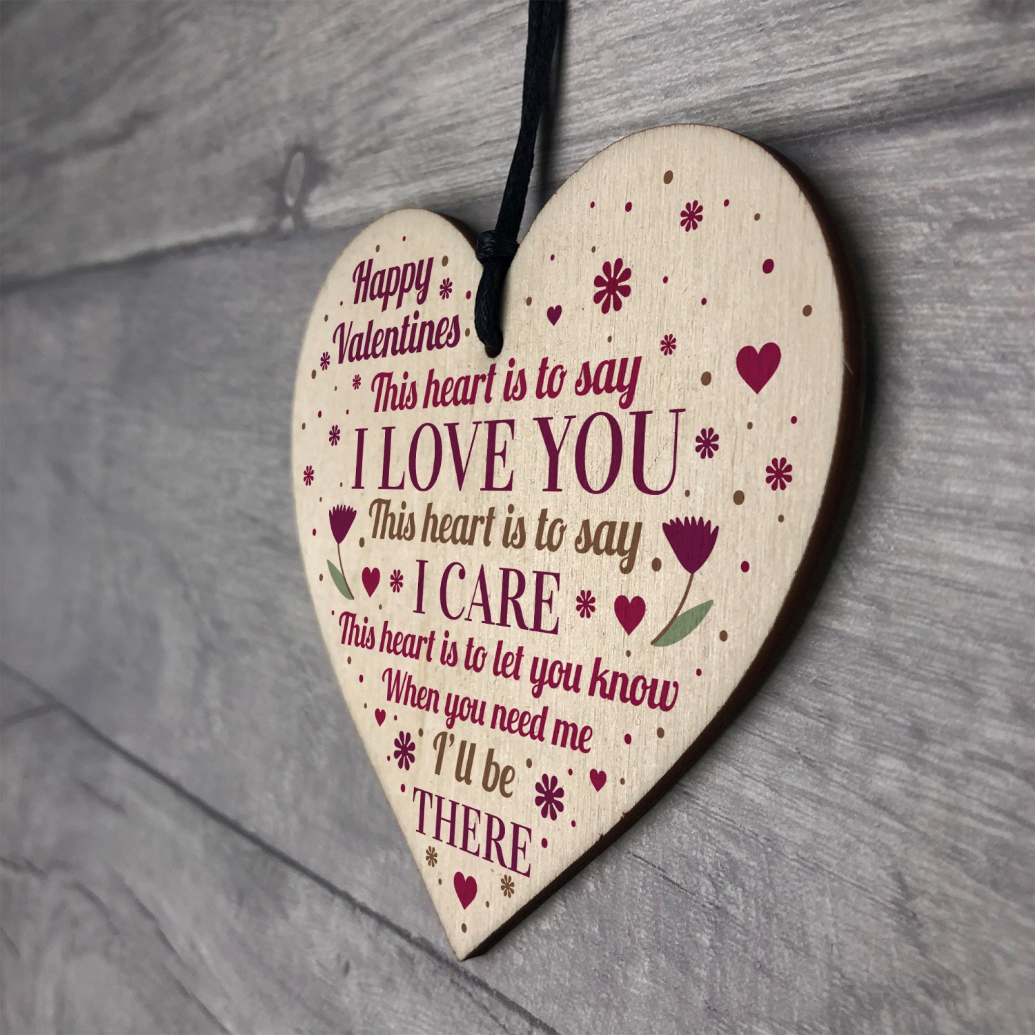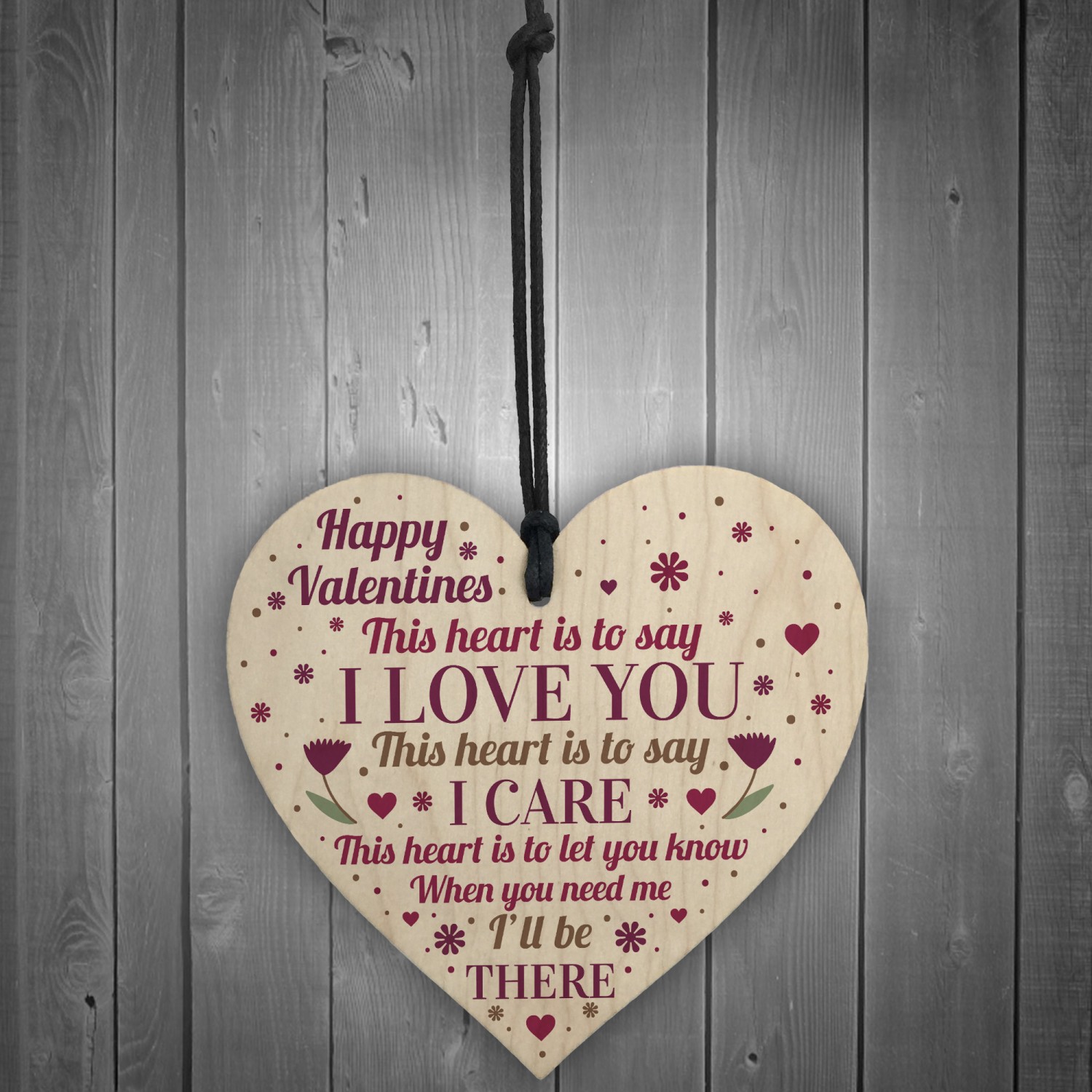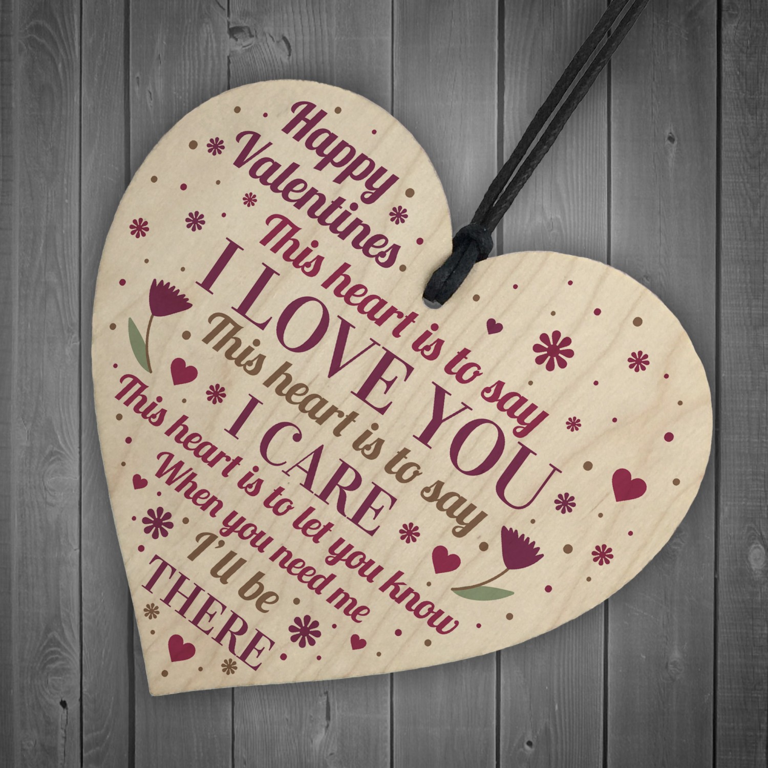 The sign is made from FSC Certified wood, and the design is permanently printed into the wood. The wooden heart is supplied with waxed cotton rope to allow easy hanging and looks great in any room of the house.