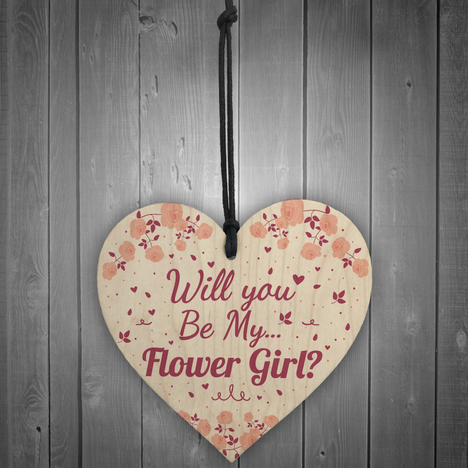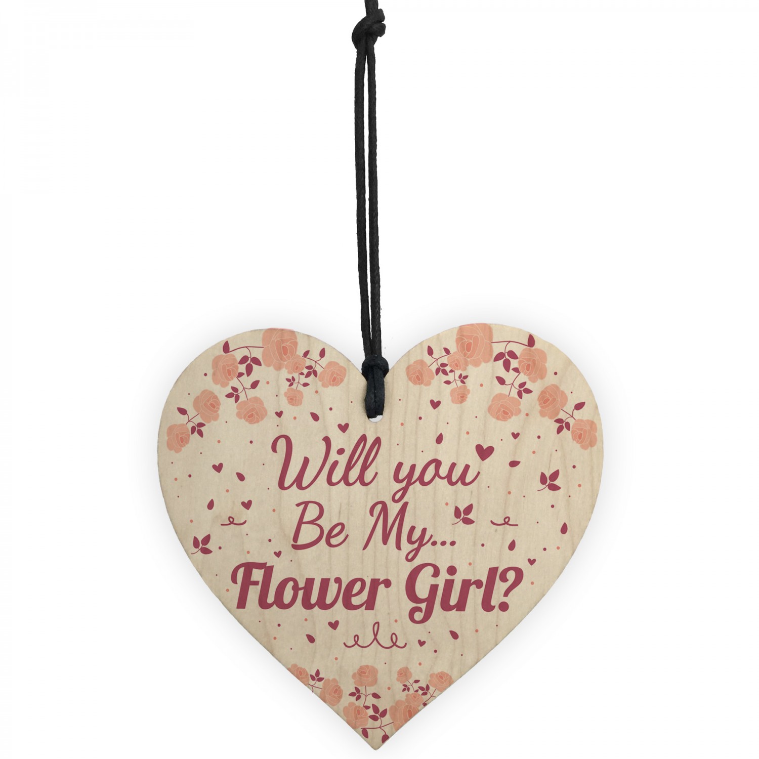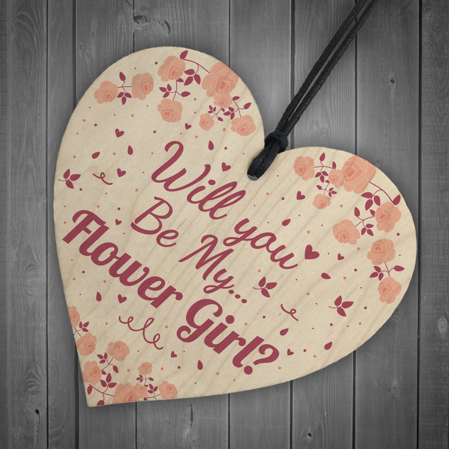 Will You Be My Flower Girl Wooden Heart Wedding Invitation Gift