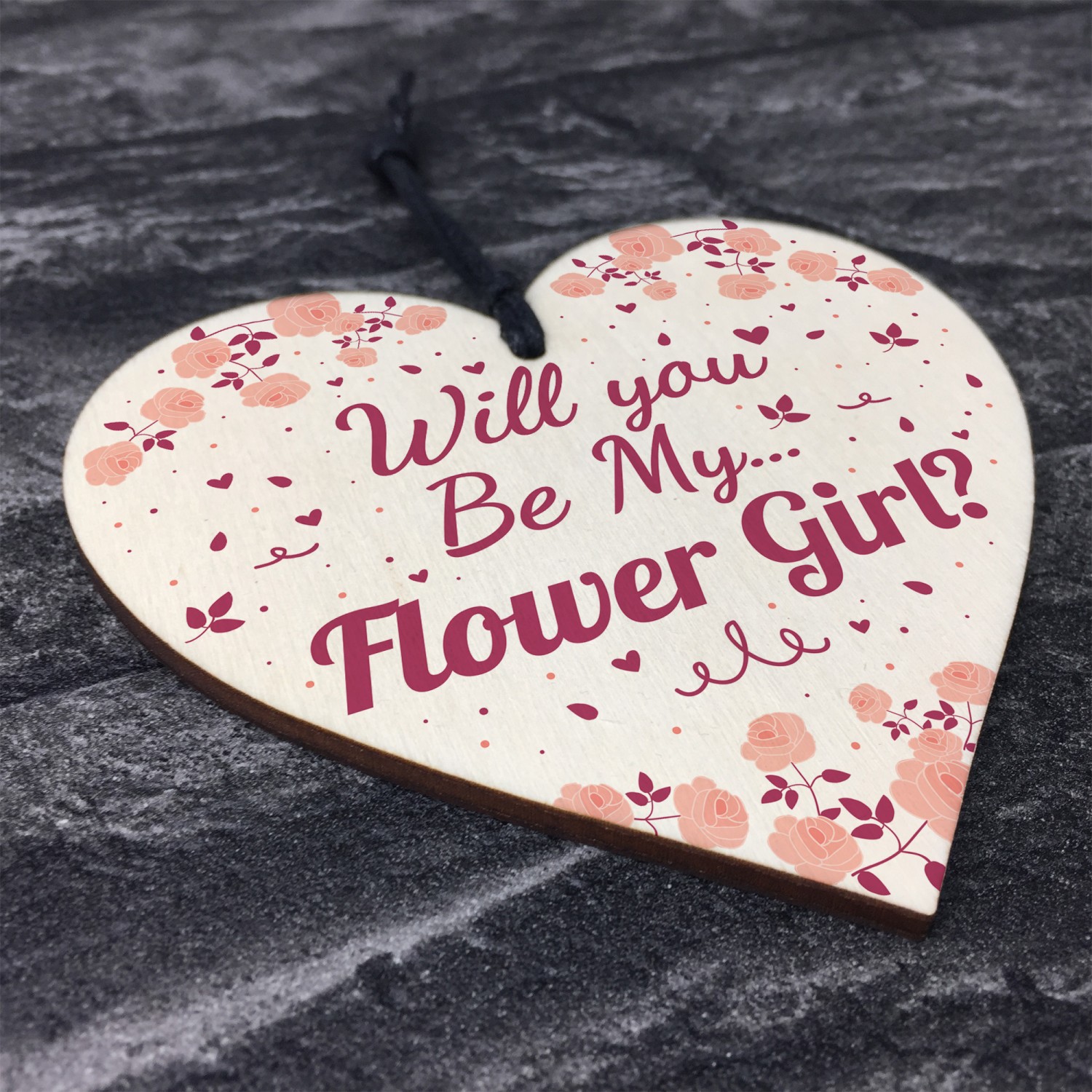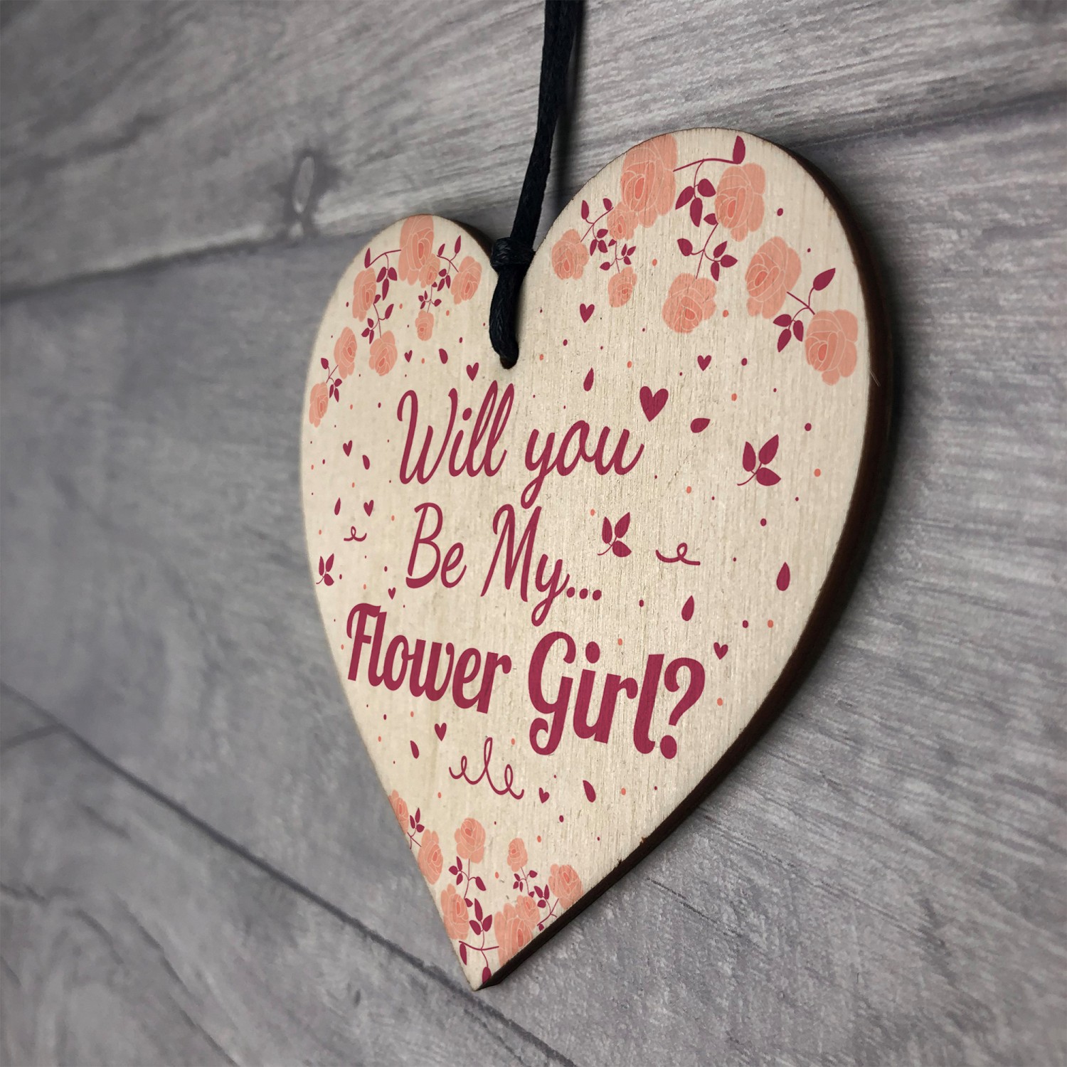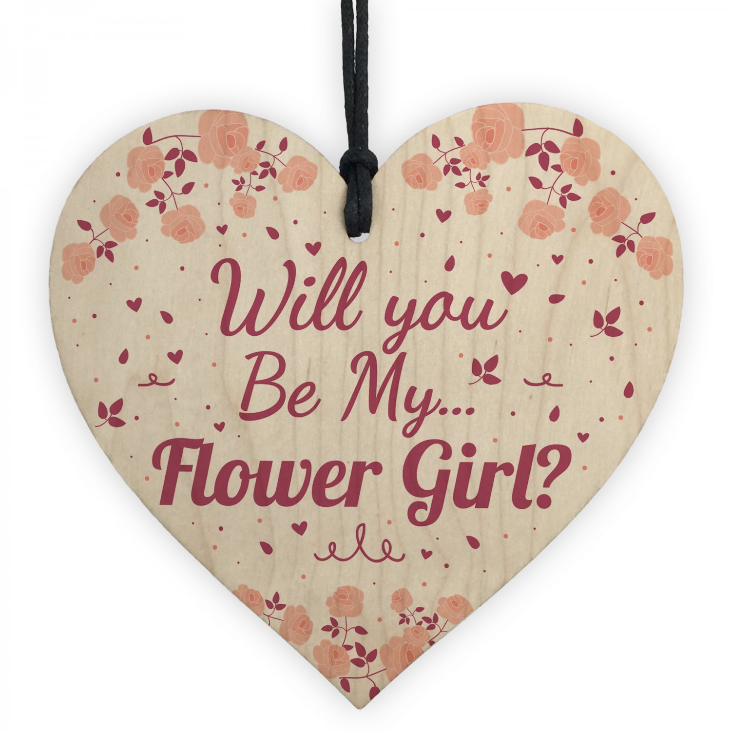 Will You Be My Flower Girl Wooden Heart Wedding Invitation Gift