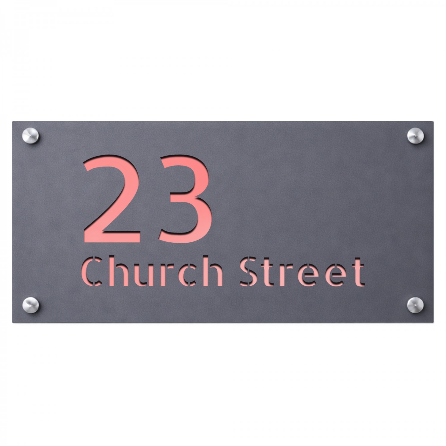Address Plaque Personalised Grey With Rose Gold House Number