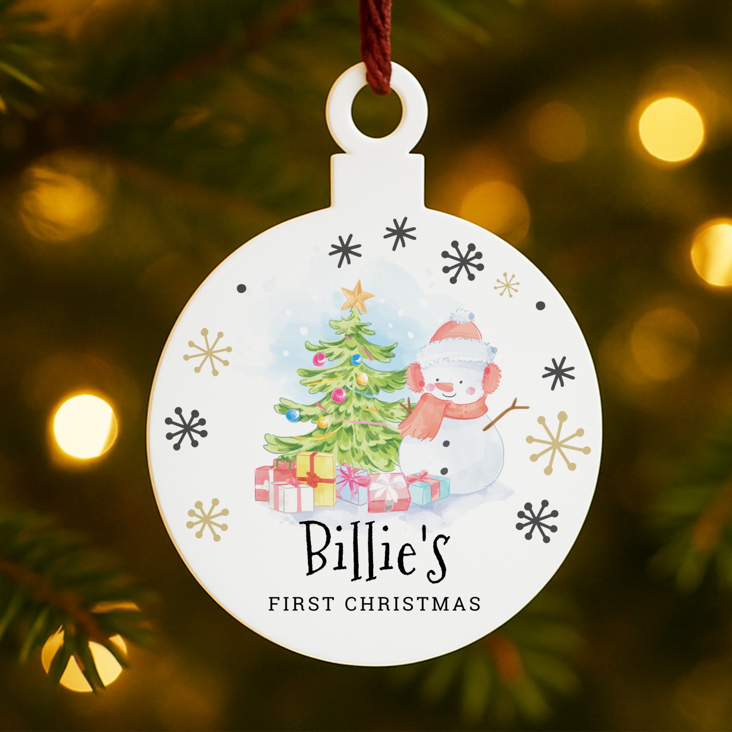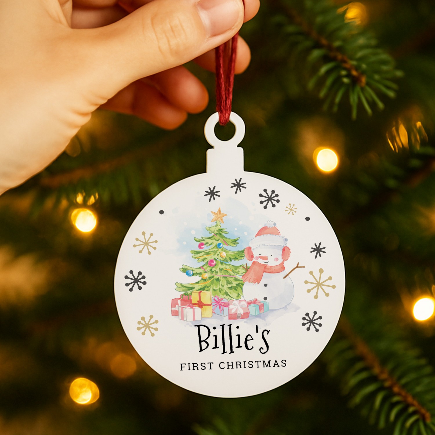 Each bauble is supplied with both a red string and a black string, giving you the choice of how to display it. Whether it hangs proudly on the Christmas tree, decorates a fireplace garland, or is kept as a nursery ornament, this personalised Christmas decoration makes a charming addition to any festive display.