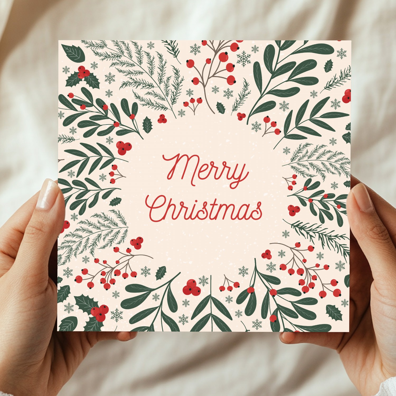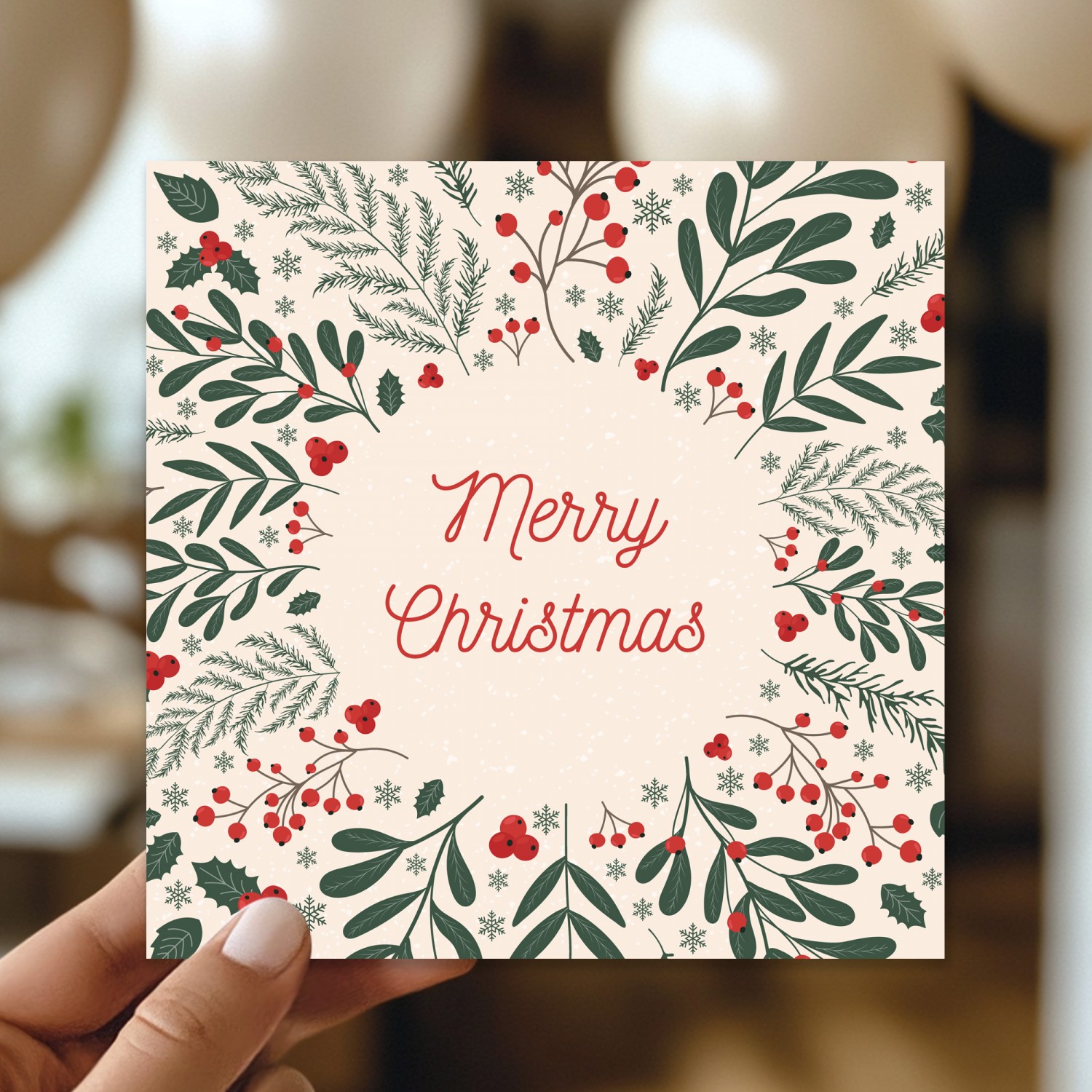 Christmas Greetings Card For Friends and Family Floral Card