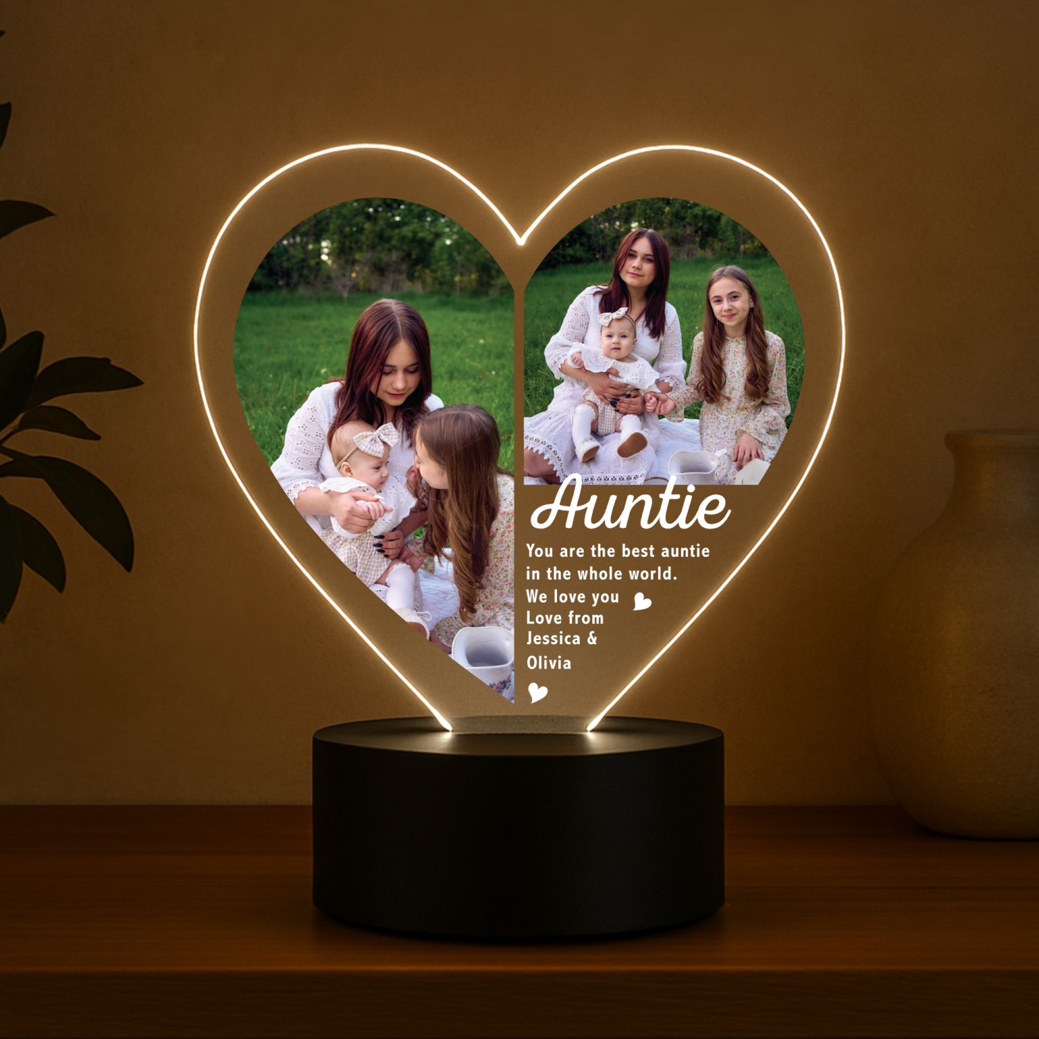 An Awesome LED sign! The light is made from Acrylic and is attached to the LED base. The acrylic creates an Amazing GLOW which illuminates the design, making it a perfect feature in their home as a decorative light. Give this as a gift to your Auntie and put a smile their face when they receive this and can put it up in their room! This Novelty Gift makes an amazing Birthday Gift, Christmas Gift or a gift for any time of year! Supplied with a LED base, a beautiful keepsake that will be treasured for years to come.