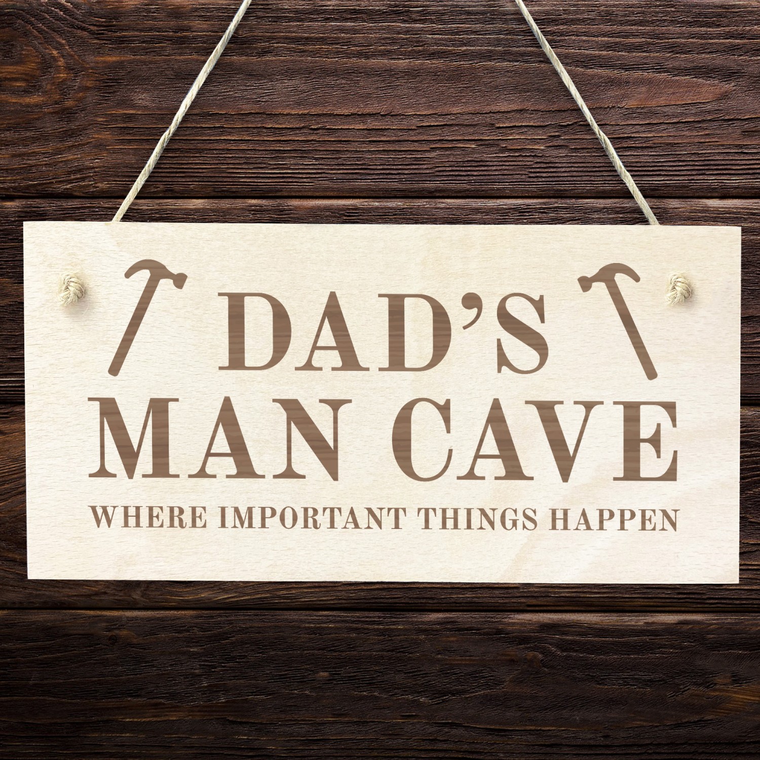 Dads Man Cave Sign Hanging Wood Plaque Gift For Dad Birthday