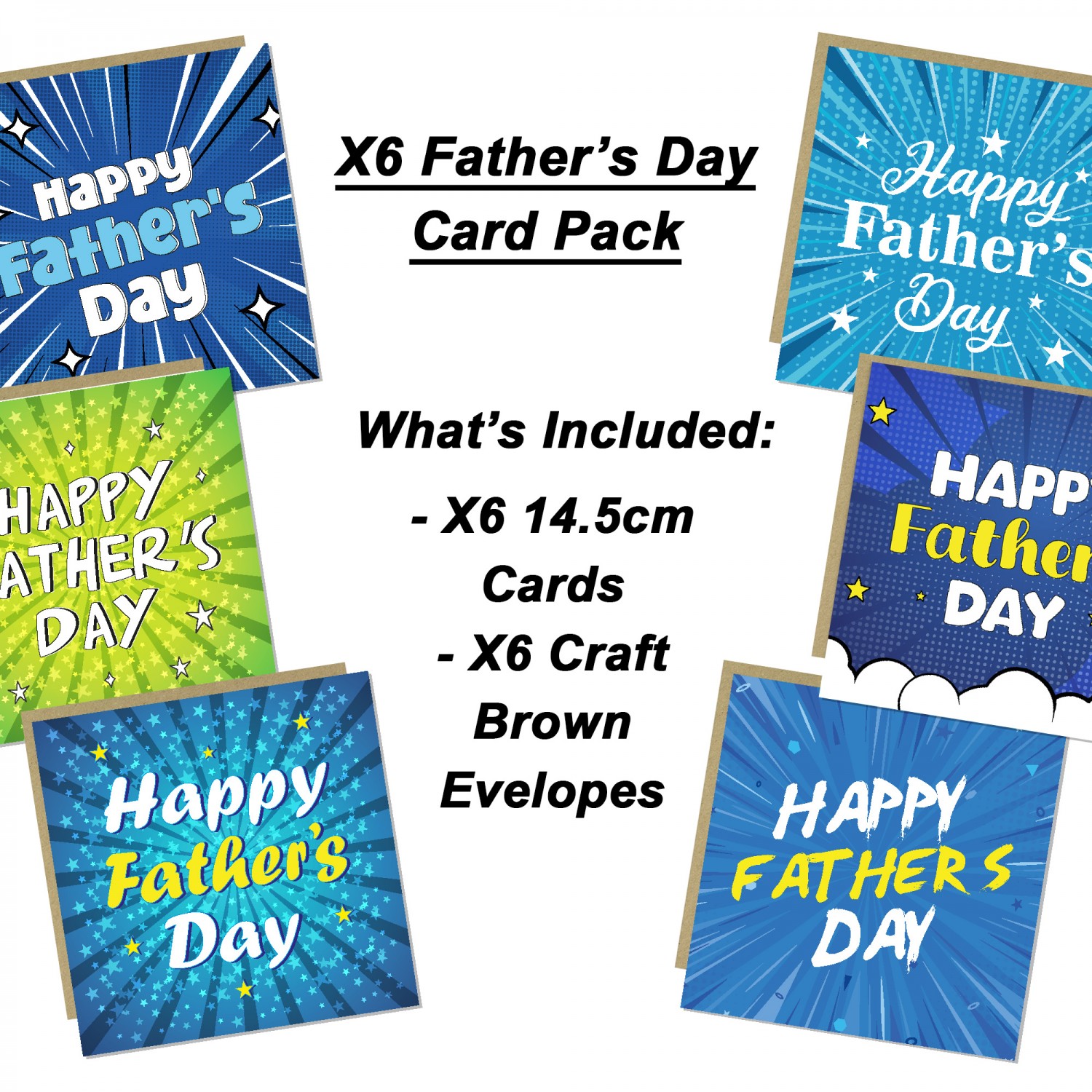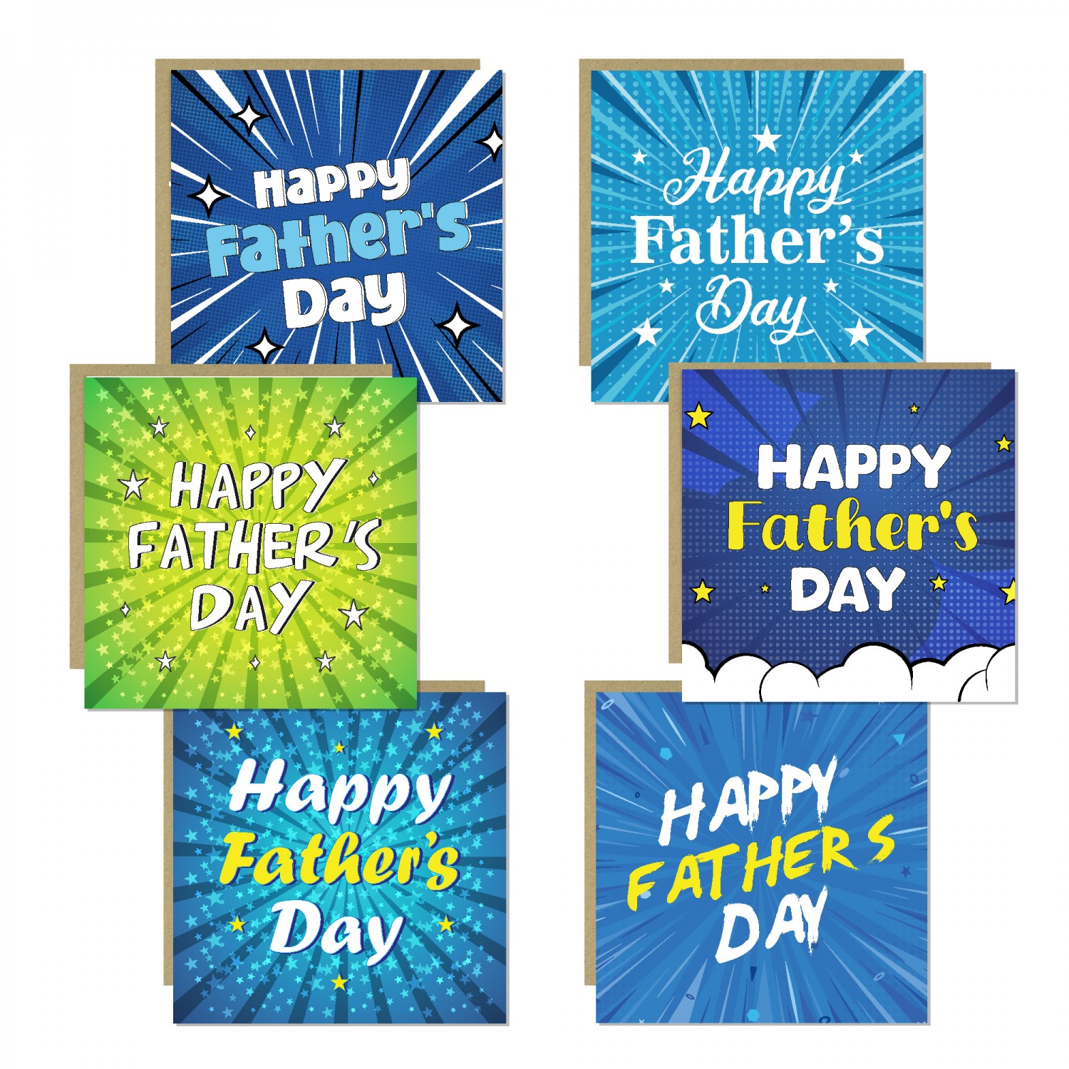 Fathers Day Multipack of 6 Greetings Cards 145 x 145mm For Dad
