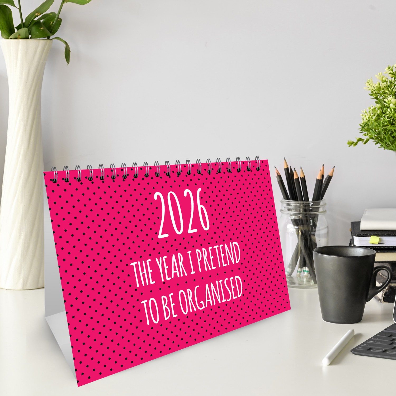 Its durable spiral binding and sturdy stand up design make it easy to flip through each month, while the compact A5 size makes it ideal for desks, shelves and small workspaces. Whether you are planning meetings, deadlines, birthdays or simply counting down to the weekend, this calendar is both funny and functional.